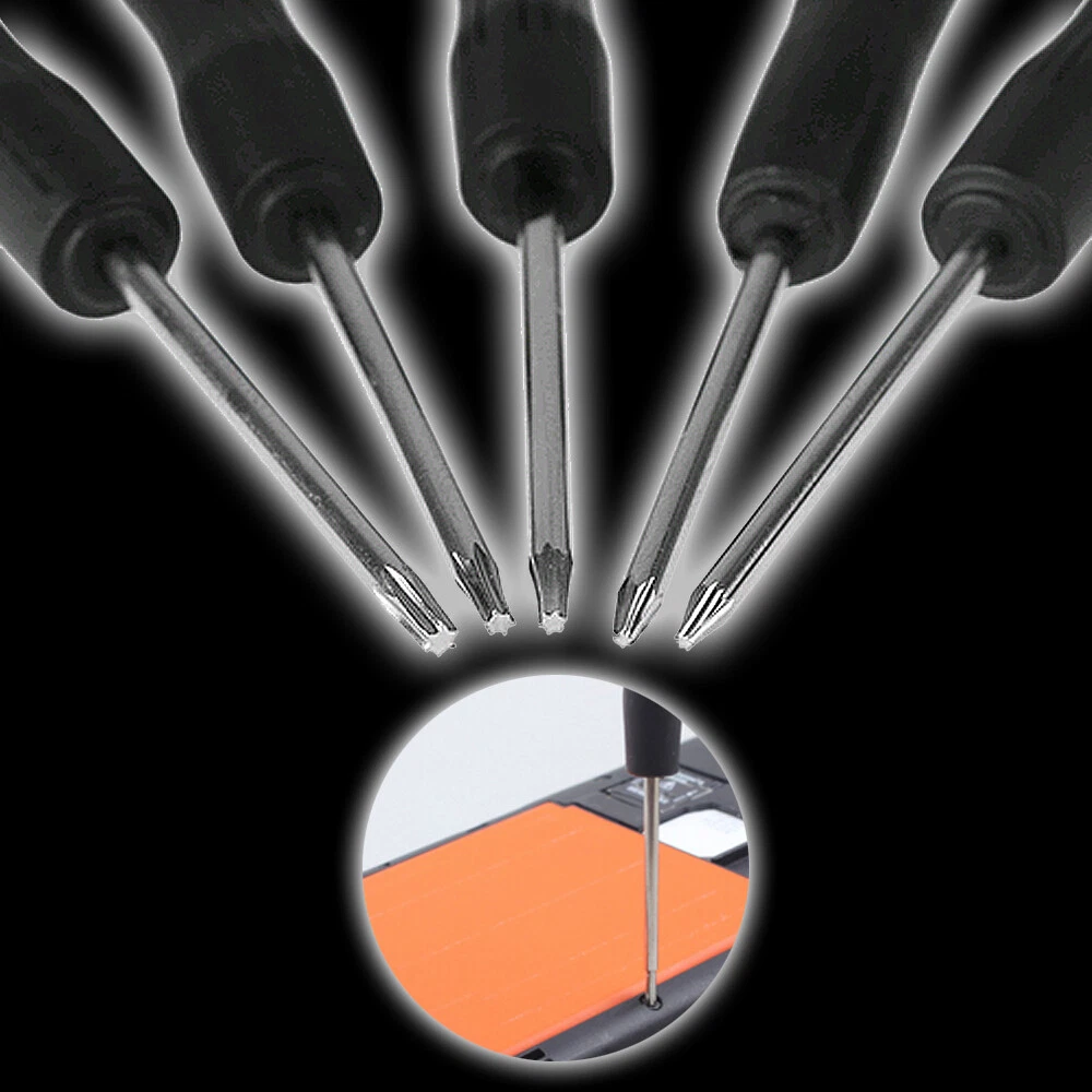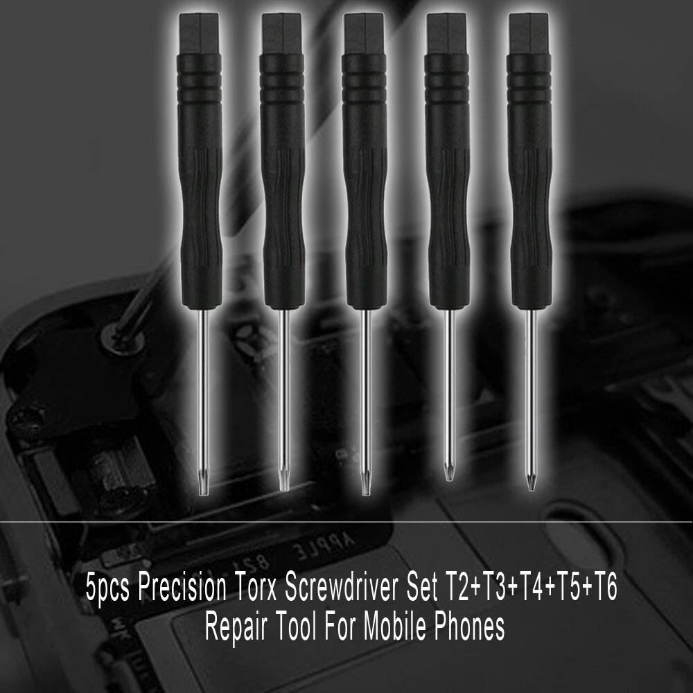 5X Precision Torx Screwdriver Set T2+T3+T4+T5+T6 Repair Tool For Mobile Phone Features: 100% Brand New & High Quality Type: T2 T3 T4 T5 T6 Screwdriver use for repair/open cell phone Length: about 8.7cm QTY: 5pcs Package included: 1 x T2 Trox Screwdriver 1 x T3 Trox Screwdriver 1 x T4 Trox Screwdriver 1 x T5 Trox Screwdriver 1 x T6 Trox Screwdriver