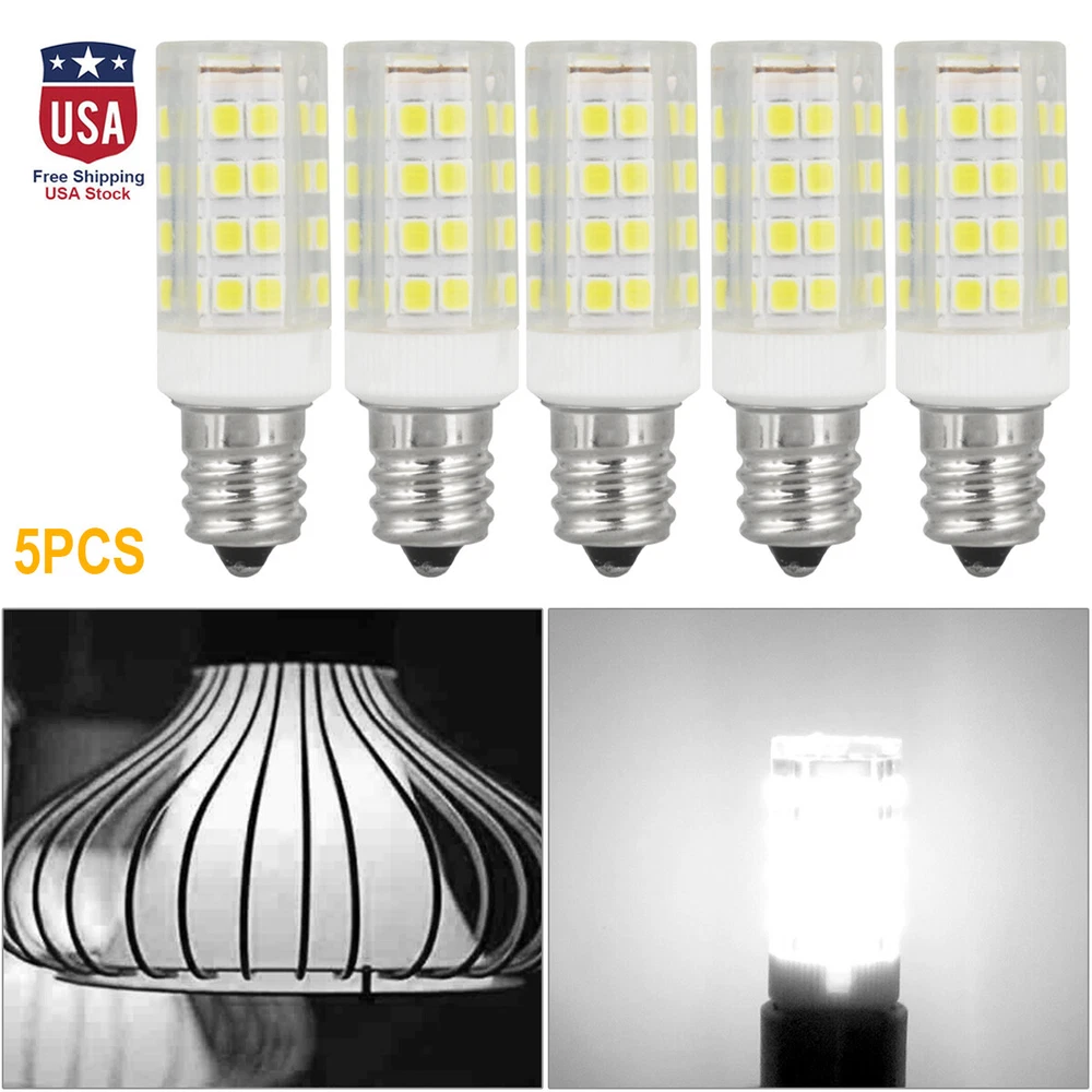 Product Description ⚡US Stock, the estimated delivery time is about 2-5 business days. ⭐100% Brand New and High Quality Features: -This one is good because it has 51smd LED's in the end. More light is emitted from this bulbs. -Equivalent to 50W-70W Halongen light bulb, using only 7Watt. -Ceramic base for fast heat dissipation -Instant-on to full brightness. -No more maintenance, long lifespan. Specification: Base: E12 Candelabra Base Part Number: 51 SMD 2835 Power: 7W Voltage: AC110V~120V Brighrenss: 240lm Beam Degree: 360 degree Material: Ceramics+PC Color: Cool White(5500K-6500K)/ Warm White(2700K-3500K) Size: Total length: 49mm Maximum width: 16mm Note: -Please confirm the lamp bead voltage before buying: 1). Traditional halogen lamp beads are divided into 12V and 110-220V, 12V is divided into AC and DC, DC12V is smart for DC power supply 2). The lamp with transformer is 12V, see the original Whether there is a voltage logo printed on the lamp beads. -Confirm the lamp holder model: The number at the beginning of G is the pin base, the value at the back is the 2-pin center spacing, the value at the beginning of E is the screw base, and the value at the back is the diameter of the cap. - Energy-saving lamps cannot be replaced directly. Package including: 5pcs Cool white/ Warm white LED Light Bulbs (Your choice) Payment We accept PayPal only. If buyer want to delay the payment because of financial problem, please contact me by the ebay message within 3 days Payment via PayPal (PayPal accepts all major credits/debit cards and eCheque) ECheque payment will tak e 3-10 days to get clear, thus DELAYing the shipment. Shipping Handling time: 1 business day (Orders are not processed on weekends & holidays) Tracking information will be sent once item is shipped. Local pick-up is unavailable at the moment. For international shipping and shipping to Guam, Hawaii and Alaska, Please contact us before placing the order. Item is shipped to ebay address. Leaving correct address can minimize delay. Terms For any issues with Defects, Return, Item Exchange request, please contact us first and send us a message first before opening any type of case or request. We devote ourselves making EVERY CUSTOMER in 100% Satisfactory and resolve any problem. We highly value and appreciate your business. Thank you. No returns will be accepted without an RMA number. Please contact us for the RMA number. Return is acceptable within 30 days of delivery. Return for replacement or money back is optional. Returned items must be in the brand new, unaltered and resalable condition. Seller is not responsible for any labor cost, expense in a dealer store, or damage due to wrong installation. Returns Return is accepted within 14 days after the buyer's receiving the item. (Excluding contrived damagement or misusage).100% money-back Guaranteed! All product will be tested in 100% before delivery.If the item is defected by the processing of postage,Buyer has up to 14 days from date of receipt for exchange of a new one.All shipping charges for returned products are to be paid by the buyer,Please contact us for the return address Contact Us All messages will be answered within 24 office hours. Please contact us either by clicking "contact seller" in the "purchase history" section or simply click "ask a question" at the bottom of this page. If you are unsatisfied with our item or service, please contact us before leaving any feedback. We are committed to resolve all issues in a friendly and satisfactory manner. We always reply to messages within 2 business days (off-duty at weekend). If you do not get a response from us, then please check your junk or spam mailbox. powered by