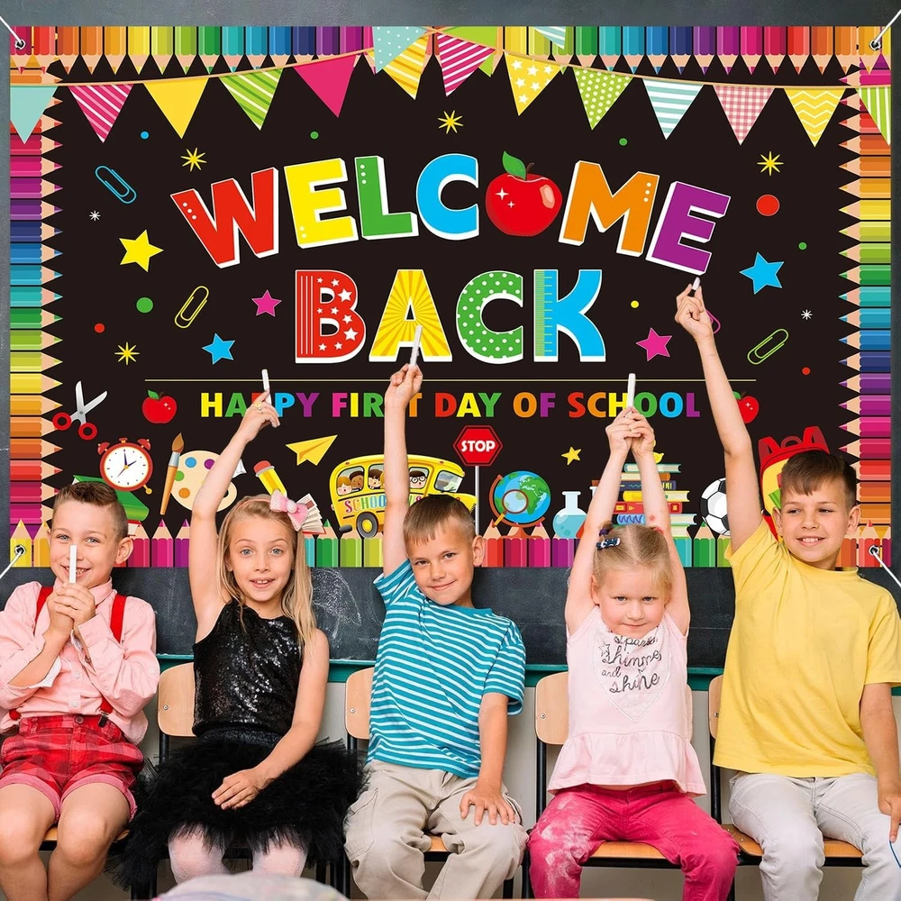 5X3Ft Welcome Back to School Banner Backdrop Decorations for Classroom