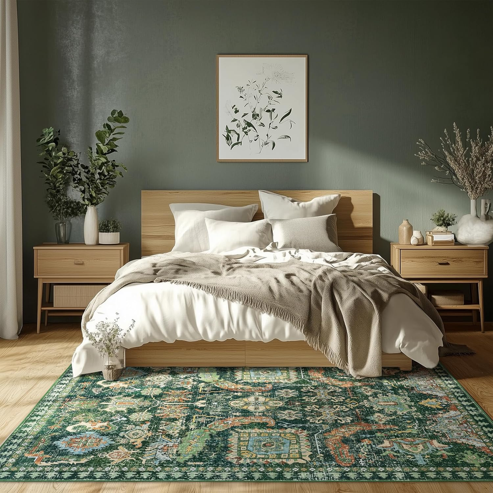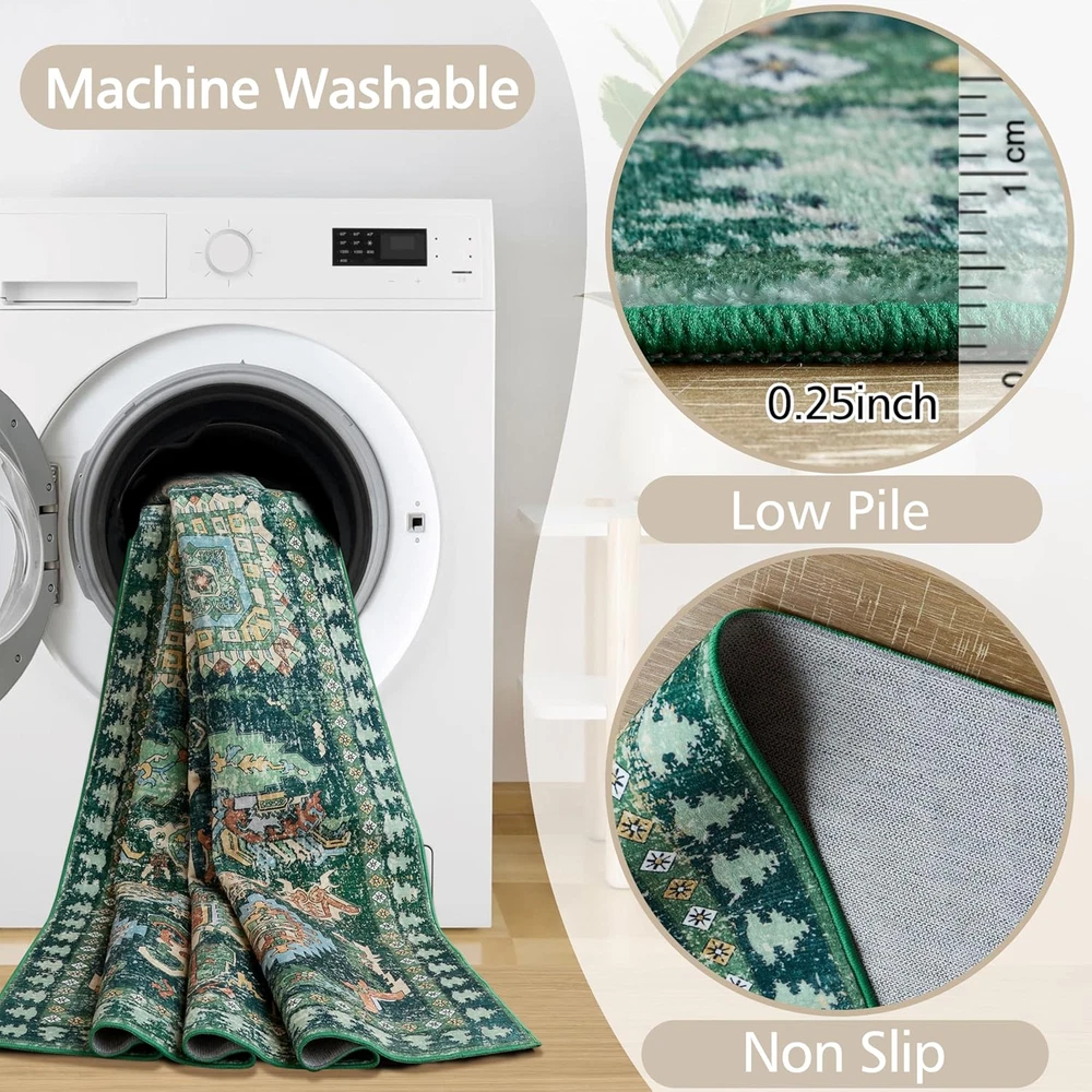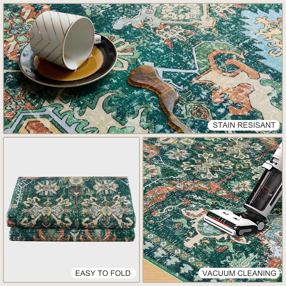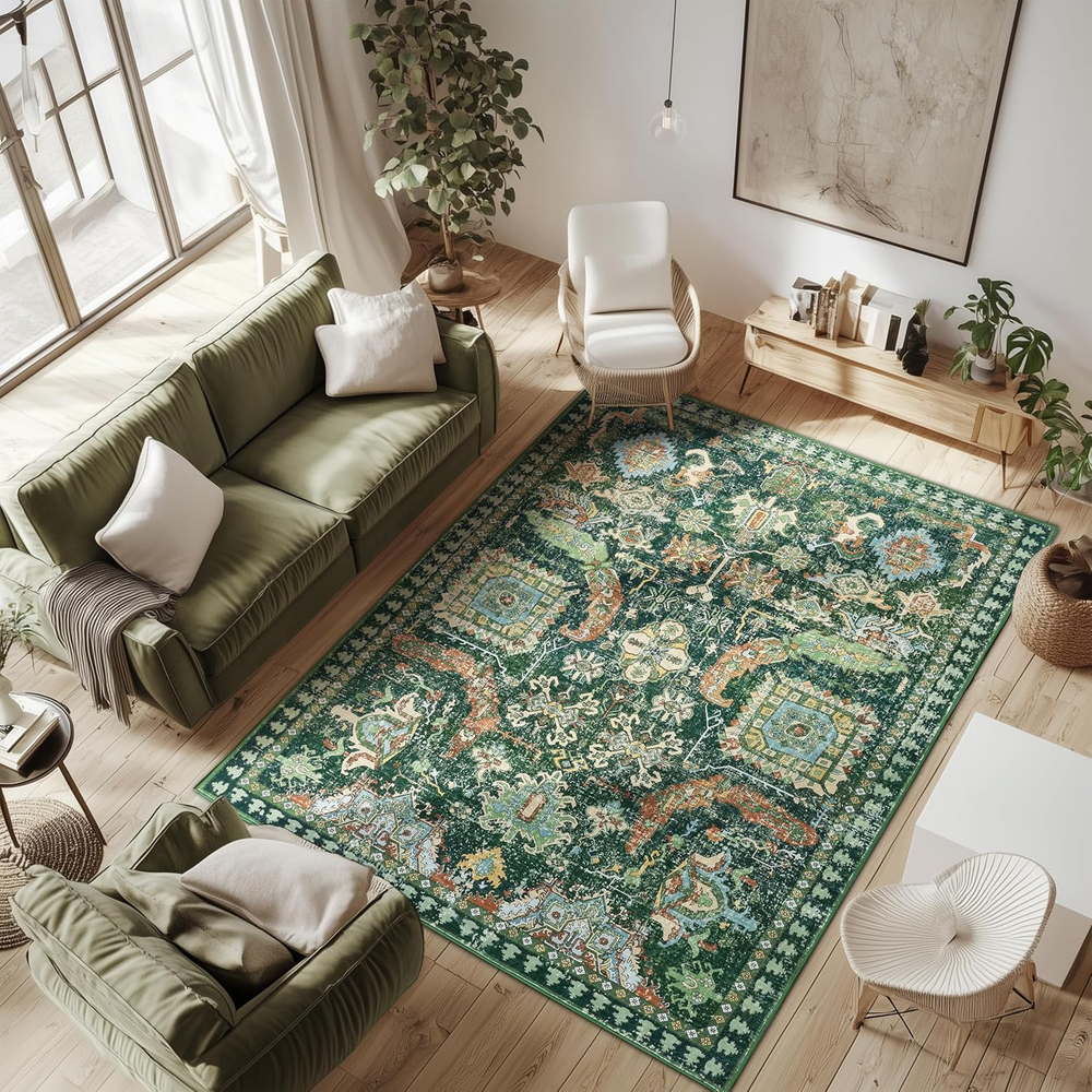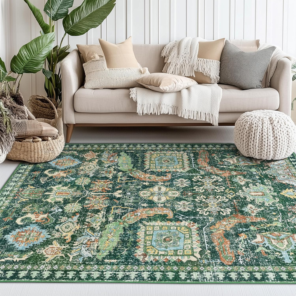 Store New Arrivals Add to Favorite View Feedback Contact 5X7 Green Rugs for Living Room Rugs for Bedroom Low Pile Shag Rug Soft Non-Slip Description Weave Type Machine Made Pattern Floral Is Stain Resistant Yes Theme Tribal Retro Cartoon Is Autographed No Brand LAISE Material Faux Cashmere Age Range (Description) Toddlers to 8 years Rug Form Type Area Rug Manufacturer LAISE Indoor/Outdoor Usage Indoor Water Resistance Level Not Water Resistant Room Type Bedroom, Living Room, Playroom, Dining Room Item Weight 3.04 Pounds Pile Height Low Pile Construction Type Machine Made Occasion High Traffic Areas, Home Decor Special Feature Lightweight, Foldable, Stain Resistant, Non Slip, Washable Color Green Shape Rectangular Back Material Type Thermoplastic Rubber (TPR) Recommended Uses For Product Living Room, Bedroom, Hallway, Kitchen, Dining Room, Playroom, Office, High Traffic Areas, Pet-Friendly Spaces Product Dimensions 83.86"L x 59.84"W Product Care Instructions Machine Wash, Machine Dryable Size 5x7 【Family & Pets Friendly】:This 5x7 area rug is made of comfortable and soft fabric,and esigned with the well-being of your family and pets in mind, the vintage rug is soft, comfortable, and safe for everyday use. This carpet is very durable and easy to clean, making it perfect for families with children and pets, making it a practical choice for living rooms, bedrooms, and hallways. 【Low Pile Design】: We use functional low pile that is soft and durable and can be easily placed in high traffic areas of your home such as living room, kitchen, bedroom, etc. without blocking the doorway. Soft 5x7 area rugs for bedroom keep you warm and cozy while walking on cold floors. 【Non-Slip and Safe】: The back of the 5x7 area rug has a textured TPR backing that enhances the grip of the carpet, keeping it stable and preventing slips. In addition, the rug is made of ultra-soft faux cashmere fibers that are fluffy, low-pile and soft enough to be safely used. It won't shed fibers and won't be inhaled, safe and odorless, perfect for children and pets to play on the carpet. 【Exclusive Design Vintage Rug】:This 5x7 area rug features a unique tribal retro design that is suitable for placing anywhere in the home. Special pattern design brings a different sense of fashion and adds mystery to the home.Seamlessly complements various living spaces such as the entryway, hallway, living room, bedroom, dining room, laundry room, playroom, dormitory, kitchen and office 【Machine Washable and Easy Clean】: Washable 5x7 area rug can be cleaned daily using a washing machine.When only a small area is dirty, it can be cleaned with a vacuum cleaner or cloth. The carpet is made of durable materials to ensure that it remains beautiful after each cleaning.When you first receive the carpet, there may be creases. In this case, you can roll the carpet in the opposite direction of the creases and let it sit for a few hours Product Description ABOUT US We offer the best prices around on high quality products. Our E-store includes media such as books, movies, music and games while offering electronics, toys, sporting apparel, clothing, tools, general home, garden items and more. SHIPPING We are always working hard to ensure your package arrives as soon as possible. Please understand that some factors like weather, high postal traffic, and the performance of shipping companies are outside of our control. We offer free shipping to the lower 48 states and ship within 2 business days of payment, usually sooner. We do not accept P.O. Boxes. Please provide a physical address. RETURNS We offer a 30-Day Return Policy on items which you are not completely satisfied with. You have the option for a full-refund or an exchange of the item. No returns are available on items shipped outside of the USA. PAYMENT We accept PayPal. CONTACT US This page content is yet to come Please ad us to your favorite seller and visit again later Thank You CUSTOMER SATISFACTION We try our very best to make sure every customer is completely satisfied. If there's a problem, message us! We're happy to help.