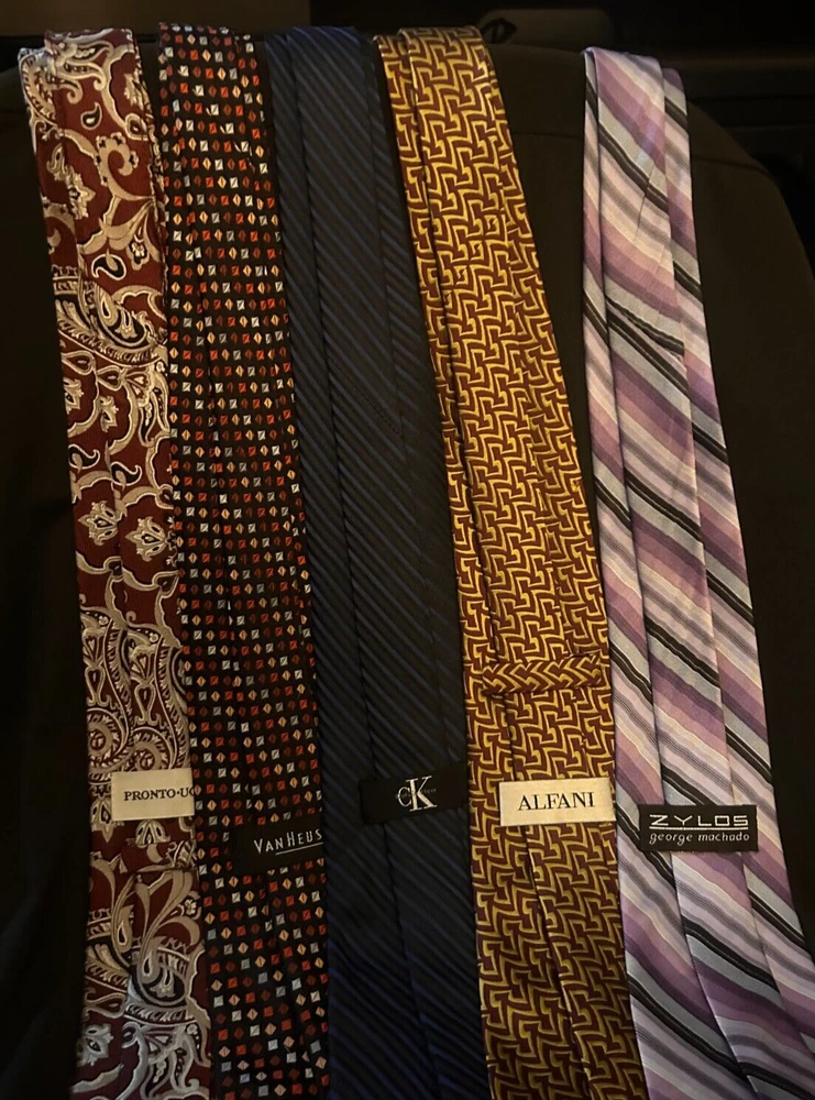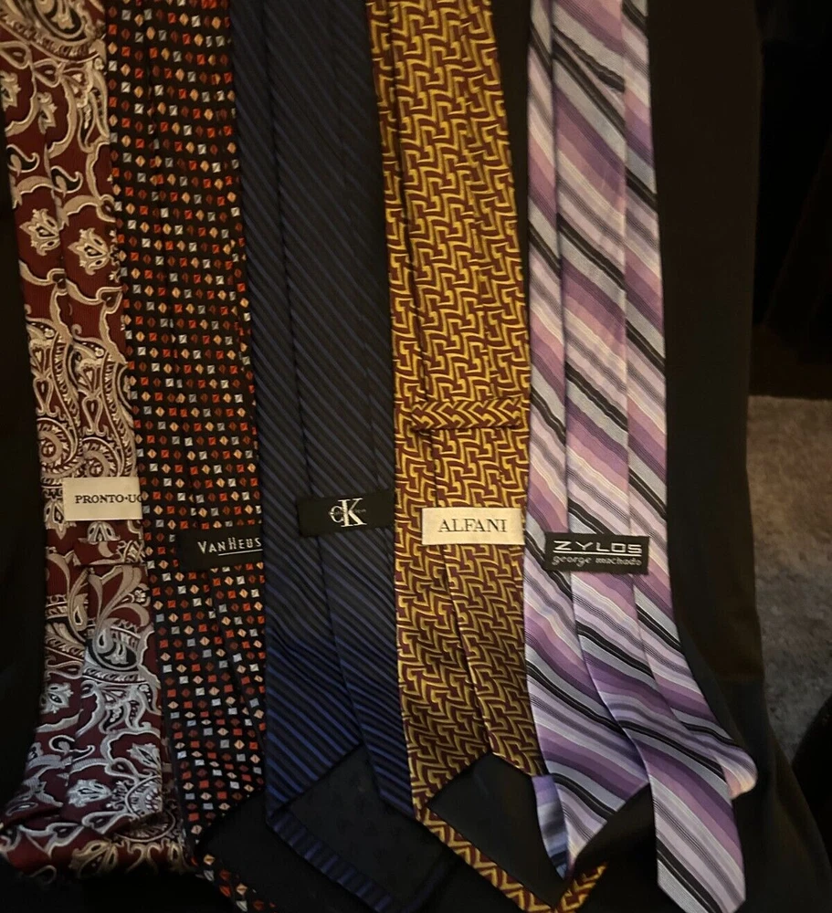 The product is a set of 5 assorted ties for men from various brands such as Calvin Klein, Alfani, and Van Heusen. The ties come in a multicolor design, offering a variety of styles to choose from. This collection provides a selection of ties that can complement different outfits and occasions, making it a versatile addition to any wardrobe.