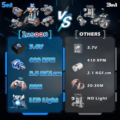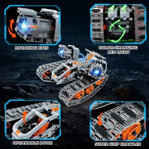 Return Policy Fast Delivery Trusted seller 5-in-1 Building Toys with LED Light, APP & Remote Controll Building Block Set, 604 PCS RC Tech Rechargeable Tank Robot Sleigh Tracked Racer Toy, Gift for Kids Boys Girls Ages 6 7 8 9 10 11 12+ Product Description ✅ 5 IN 1 EDUCATIONAL BUILDING TOY - tech building set offers 5 diverse building options, including racing tank, technology robot, stunt vehicle, tracked car or sledge. It encourages children to explore different designs, fostering their creativity and imagination. This comprehensive learning experience combines science, technology, engineering, and mathematics, providing hands-on activities and challenges to enhance problem-solving skills ✅ POWERFUL SPEED & GRIP - Equipped with a powerful 7.4V motor, this tech vehicle building kit delivers speeds of up to 680 RPM and a torque of up to 2.5 KGf.cm, offering an exhilarating speed experience compared to traditional 3.7V motors. In addition, each track piece features an anti-skid design, ensuring exceptional grip for stable and fast travel on both smooth and rough surfaces ✅ COOL LIGHTTING EFFECT & RECHARGEABLE - Our innovative rc tank provides a glimpse into the future of remote-control building toys. It illuminates with a captivating blue light when turned on, and as it moves, the lights transition between colors like blue, green and purple. Powered by a built-in 300mAh rechargeable lithium battery, optimal run times up to 15-20 min, eliminating the need for frequent battery changes. Immerse yourself in the cool light show gaming experience ✅ APP AND REMOTE CONTROL - This 5 in 1 tank building toy supports dual control with a 2.4GHz remote control and app, and the maximum remote range is 30-50m. It offers 4 modes: path mode, gyro mode, driving mode, and programming mode, allowing the vehicle to move in various directions and ways, providing endless fun for kids. To download the free application, simply scan the code on the product package or image ✅ PERFECT GIFT FOR KIDS - Consisting of 604 pcs building blocks, this funny educational toy set enables kids to explore limitless possibilities. Kids can have fun with friends and family, strengthening parent-child interaction and relationships. Whether for birthdays, Easter, Children's Day, back-to-school, Christmas, Thanksgiving Day, New Year, or other holidays, it makes an excellent gift. Suitable for boys and girls aged 6-12+. Shipping Returns Payment Shipping Shipping is FREE to all addresses other than APO/PO boxes in the lower 48 states. All our stock ships from US-based warehouses. Shipped via USPS or UPS (depending on location and package weight) Unless stated otherwise, all orders will ship within 24-72 hours of your payment being processed. Check our feedback to see the great reviews of FAST shipping we offer. Returns Seller does not accept returns Payment We currently accept payment via eBay managed payments only. Once payment is cleared, we will dispatch your shipment within 1-3 business days. Please refer to the "Shipping" tab for more information regarding shipping speed to your destination.