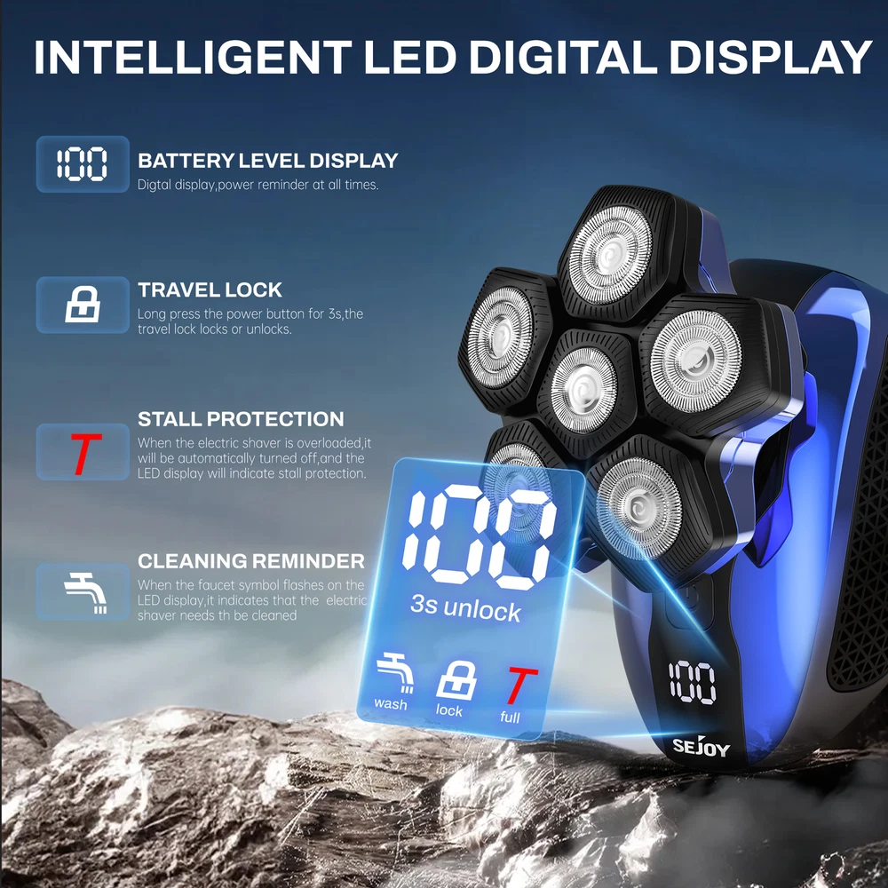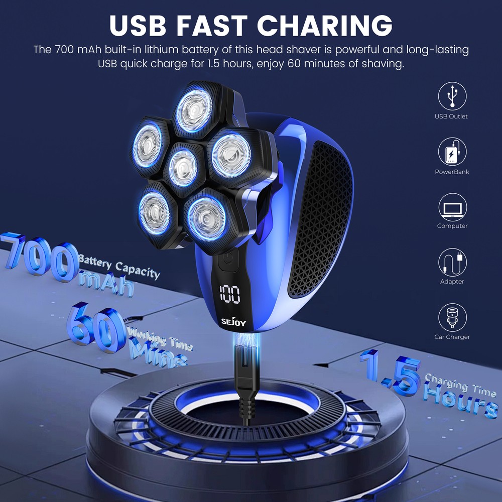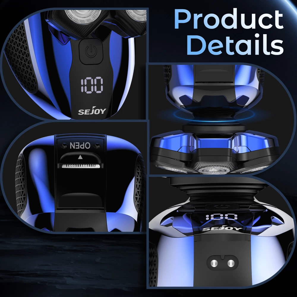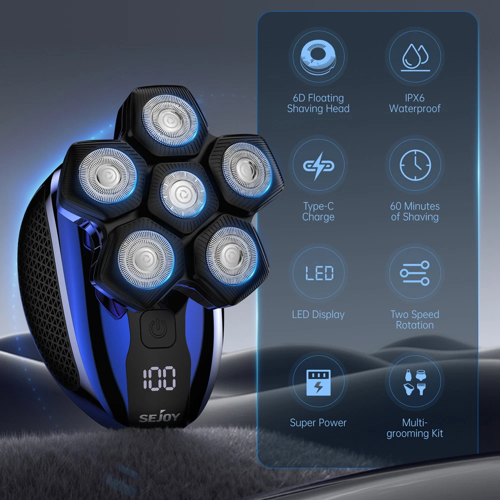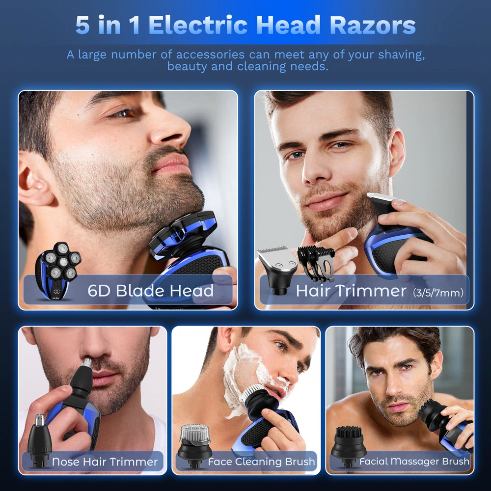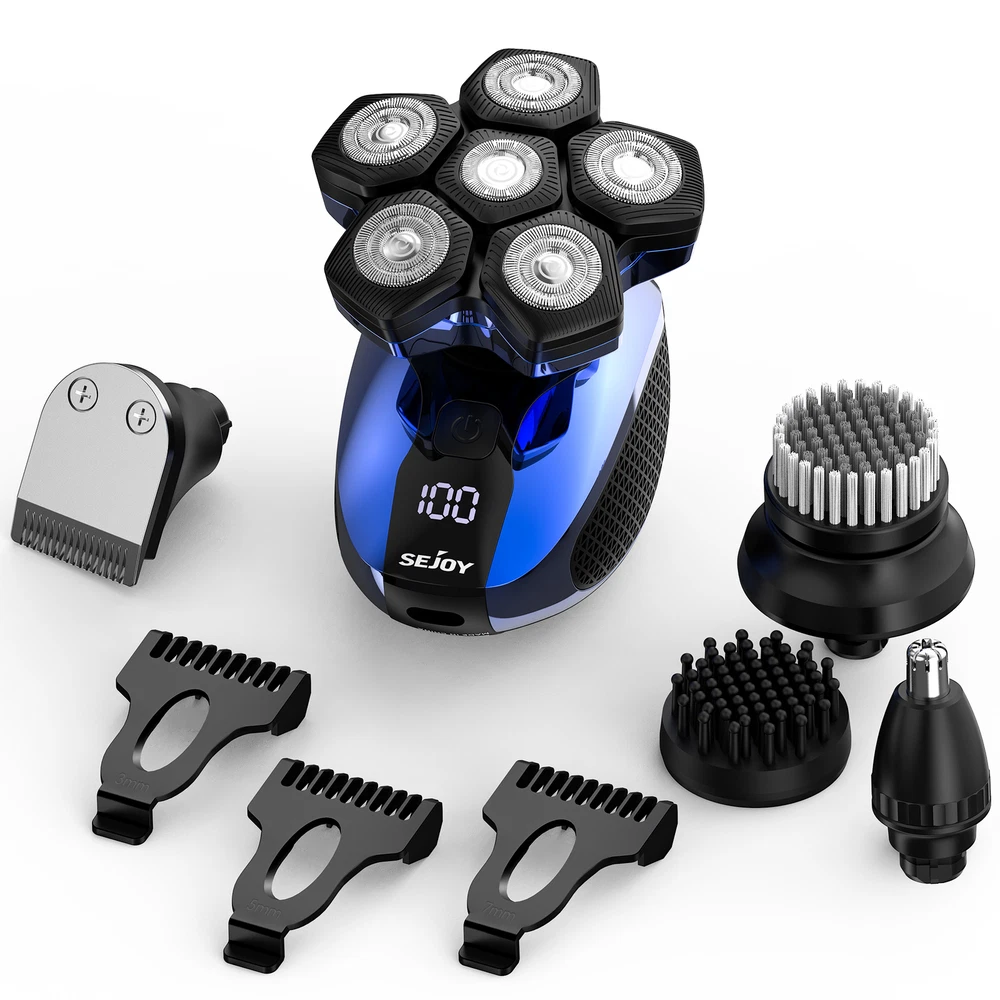 Product Description SEJOY 5-IN-1 Men's Electric Shaver Grooming Set This 5-in-1 Men's Grooming Kit includes a razor, nose hair trimmer, hair trimmer, facial massager, facial cleanser to help you perform a complete facial cleansing, refreshing all day long; 6 floating cutterheads, built to fit the skin perfectly and trim every inch of hair perfectly; Type-C charging, 90-minute charging time, long battery life; LED display, always keep track of the razor's Status; Magnetic head, easy to disassemble, easy to clean; Hair trimmer with limit comb, hair trimming is more convenient and accurate. 5-IN-1 Men's Grooming Kit 6 Floating Heads Type-C Charging 90 Minutes Charging Time LED Display Magnetic Head Qaulity Products For A Healthy Life SEJOY is a high-tech enterprise specializing in the research, development, production, sales and customer service of home electronic medical products. Since its establishment in 2002, SEJOY has developed and produced electronic thermometers, electronic blood pressure meters and blood glucose meters and other series of products. Focusing on medical health and personal protection field. At present, we have established sales channels in many countries around the world and sold tens of thousands of products, making us one of your best choices. Why SEJOY choosen? Premium Quality Lower Price Faster & Safer 30 Days Free Return Key Features 6D Floating Head Shaver The 6-head electric shaver rotates flexibly according to the contours of the face, cutting every inch of hair and trimming the beard more comprehensively without worrying about leaving stubble. 5-IN-1 Cutter Head This men's haircutting set contains five replacement heads; hair trimmer with a limiting comb to trim any length of hair; ear and nose hair trimmer to help you clean ear and nose hairs; 6-head electric razor to trim facial beard and baldness to remove hair; facial cleansing brush and facial massage brush to use together to massage your face, soften stubble, and then clean your face of dirt, five blades are paired to create a new and refreshing The five heads work together to create a new fresh look Floating Razor Head Floating head, adapts to various contours, head/face/neck hair can be cut easily. LED Display The LED display below the switch shows travel lock status, charging status, cleaning tips, and Overload Protection, helping users to keep track of the shaver's usage status and use the shaver with ease. Type-C Charging Purchase this device, a free USB cable, you can charge it anytime, anywhere, 90 minutes fast charging, ultra-long use time Easy To Install Replacing the heads is easy, just pull and tug the heads to install them easily.The 6 head electric shaver is designed with magnetic heads that can be easily removed for cleaning. Specifications Product name :Electric Crooming Set Model:Jk1800 Waterproof:IPX6 Color: Gold Rated power :5W Rated voltage :3.7V Charging time :1.5H Working time :60 Mins Battery capacity:700 mAh Package content 1 x Product Body 1 x 6D Integrated Disassembly Cutter Head 1 x Hair Trimmer 3 x Hair Trimmer Combs (3/5/7mm) 1 x Facial Massager 1 x Face Cleaning Brush 1 x Nose Trimmer 1 x USB Cable 1 x Cleaning Brush 1 x User Nanual SHIPPING ABOUT US PAYMENT RETURNS CONTACT Welcome to our eBay store. As a leading and emerging manufacturer and exporter in the business, we specialize in medical health and personal protection for more than 10 years. We believe that it is our vision and mission to provide innovative products to satisfy you with the best service and competitive prices. Our goal is to ensure that you find exactly what you are looking for and to make it easy for you to place your order. We accept PayPal Payment,PayPal Credit,Credit card or debit card and so on. We will leave a positive feedback immediately after payment is received. We appreciate a positive feedback as much as you do. If for some reason there is any issue with the purchase, please contact us prior to leaving feedback, we will be glad to work together and provide a satisfying solution. Once your payment is successful, we will ship within 1-2 business days. If you pay over the weekend, your order is generally shipped on Monday. The courier will deliver from Monday to Saturday. If you have any request to modify the address, please contact us in time. If you have any problems with your purchase, please don't hesitate to contact me before leaving negative or neutral feedback. If it does not fit well, we are happy to accept return for refund or exchange,. We accept returns within 30 days. If you are satisfied with the purchase, please leave me a positive feedback with 5 star detailed seller ratings. looking forward to doing more business with you in the near future. We can be contacted at any time through eBay messages if you have any questions, comments or product requests. We will respond to you within 24 hours and do our best to help you out! We encourage our customers to contact us with any questions or concerns! We'd like to be sure you are completely satisfied with your purchase. This item comes with 12 months Manufacturer's Warranty from the date of customers purchased it. Special circumstances will be listed clearly in the listing. If your item has been damaged in transit or become faulty in warranty period, please email us with pictures or video to show the problem. Please do check everything carefully after you received the parcel, any the damage except DOA (Dead-On-Arrival) would not be covered if it's your fault. Replacement products are provided with the same warranty as the returned products.