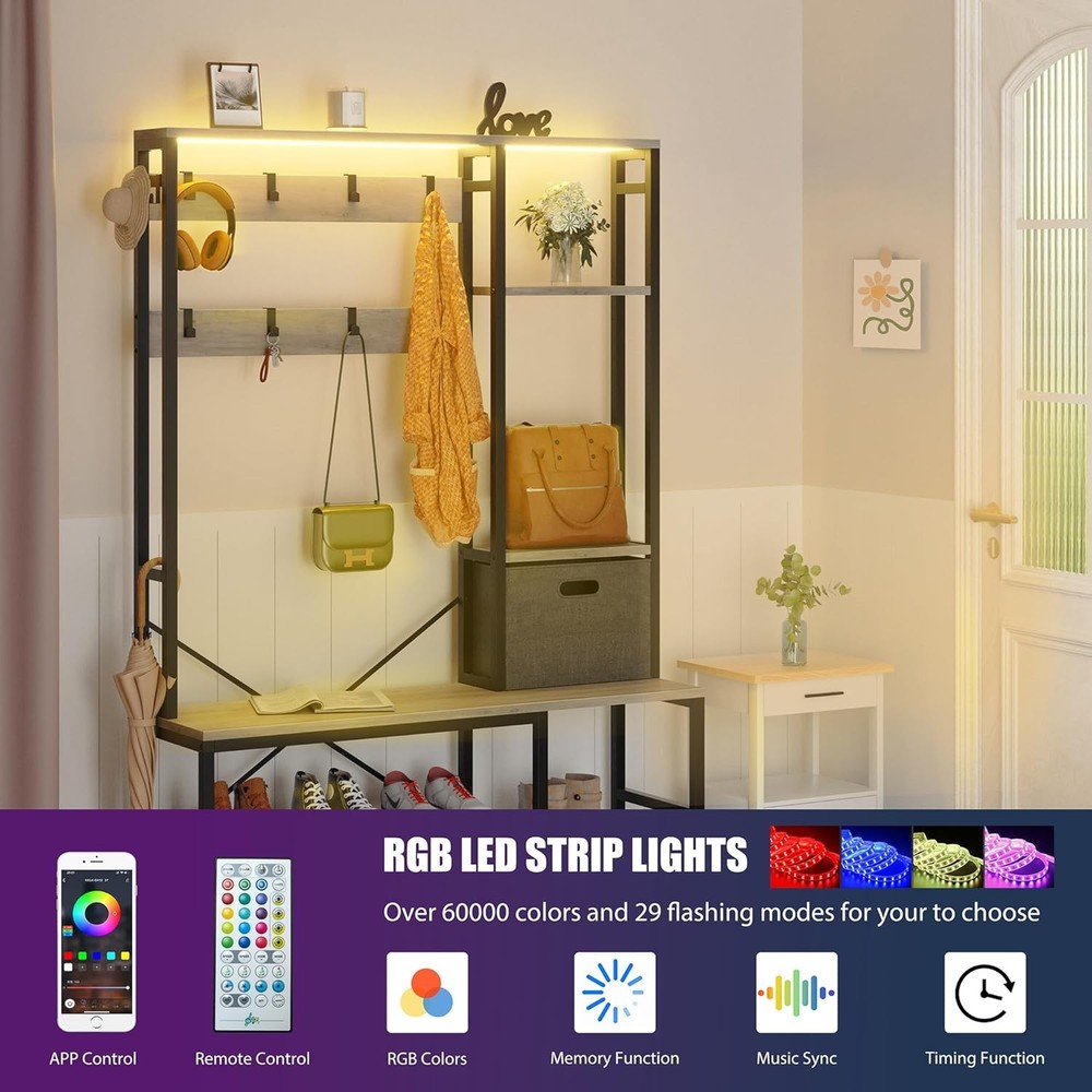 5-in-1 LED Hall Tree Coat Rack with Fabric Storage & Large Organizer