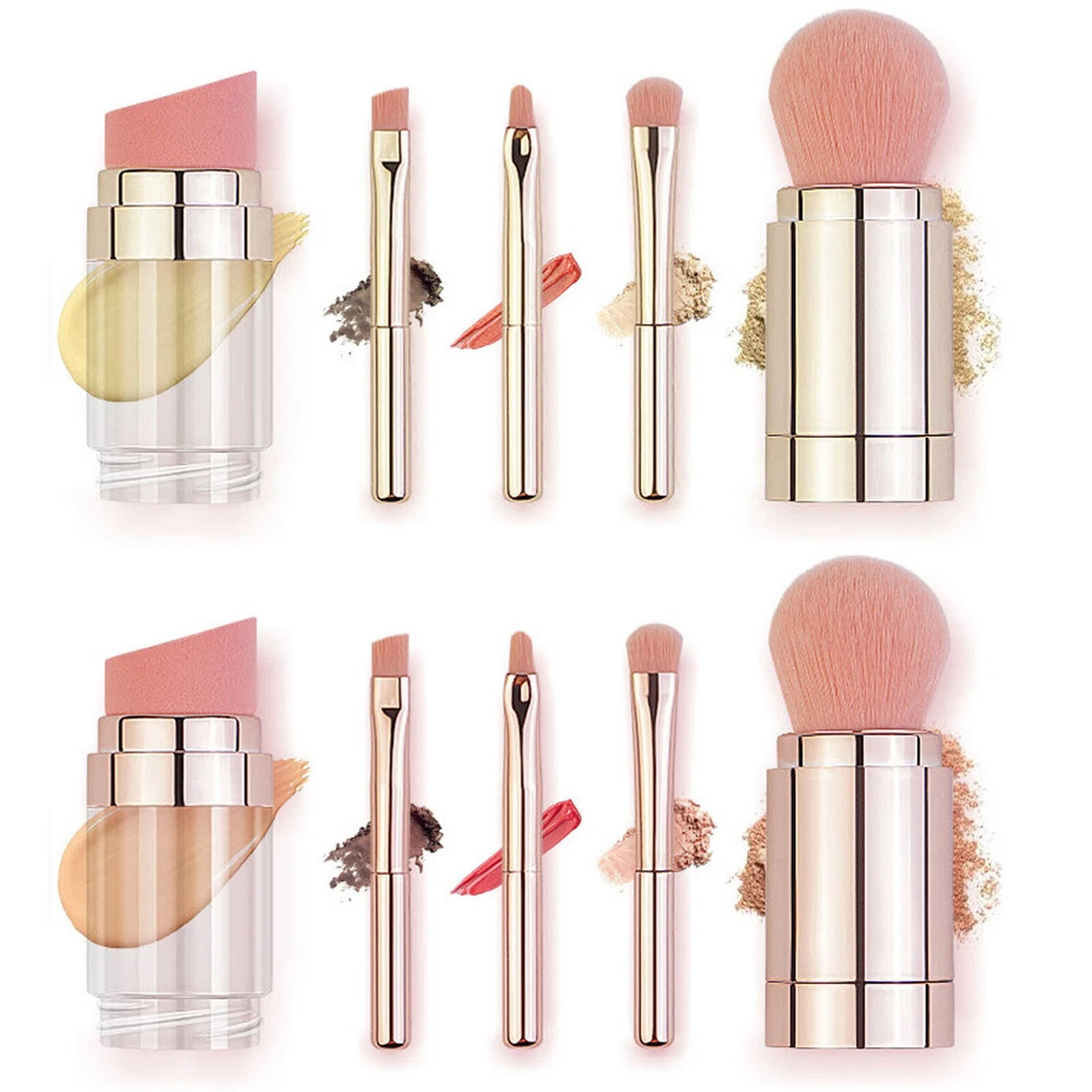 Feature: 1. Multifunctional Brush: 5 in 1 cosmetic brush, which includes foundation brush, loose powder brush, eyeshadow brush, lip brush and eyebrow brush, meet your different needs. 2. Dense Brush Hair: PBT brush hair, soft touch, rich hair, not easy to fall off, strong powder dipping force, and more uniform makeup application, reliable. 3. Retractable Design: Push pull design, easy to store the makeup brush. Designed with a dust cover to provide better protection, ensure that the makeup brush is clean and hygienic. 4. Electroplated Handle: The handle is made of ABS material, adopts electroplating process, not easy to rust, firm and sturdy, stable and durable, comfortable to touch and hold. 5. Portable Design: Light weight and in small size, easy to store and carry, can be easily put into your bag, perfect for office, dating, travel, etc. Specification: Item Type: Makeup Brush Material: Synthetic Fiber, Plastic Package List: 1 x Foundation Brush 1 x Eyebrow Brush 1 x Lip Brush 1 x Eyeshadow Brush 1 x Loose Powder Brush