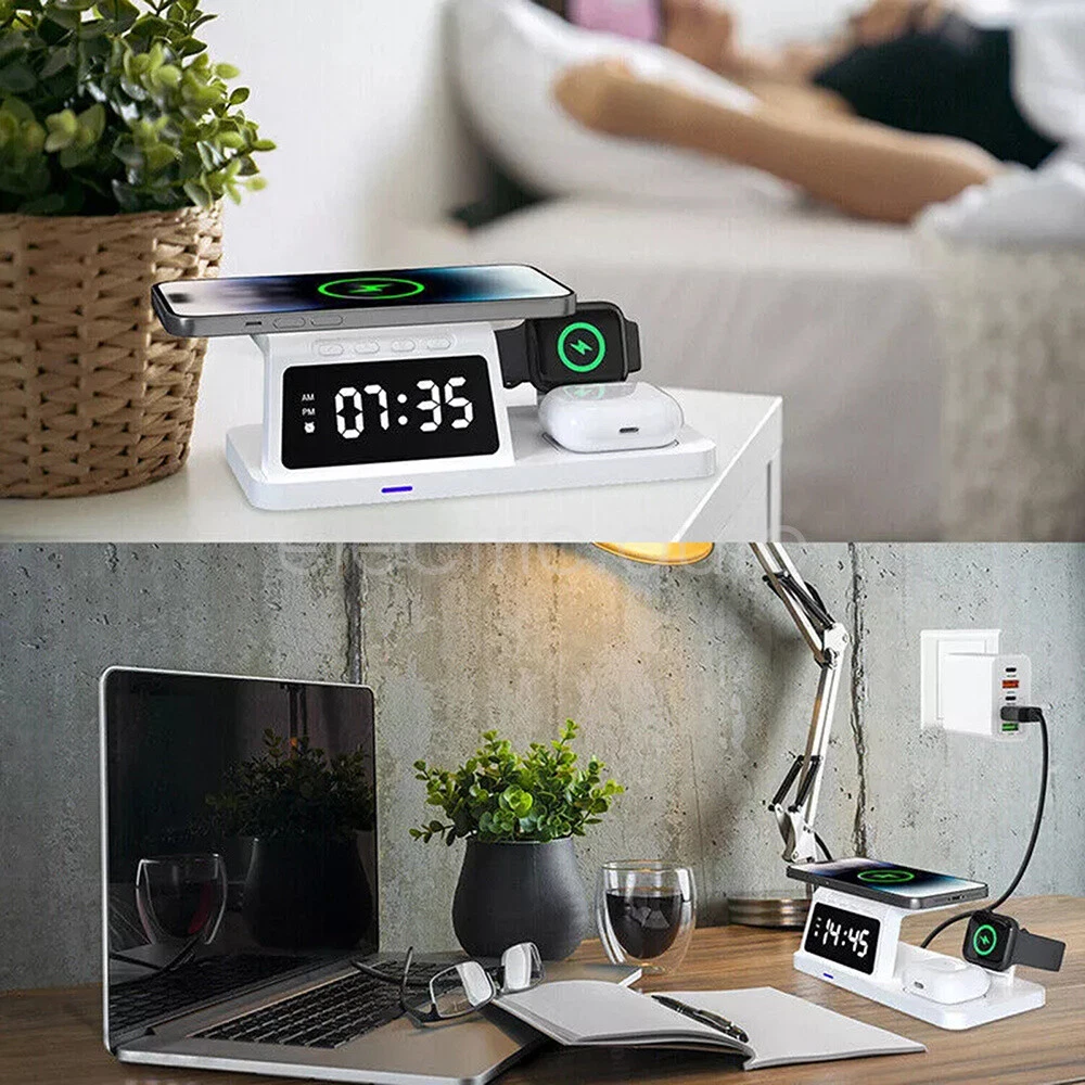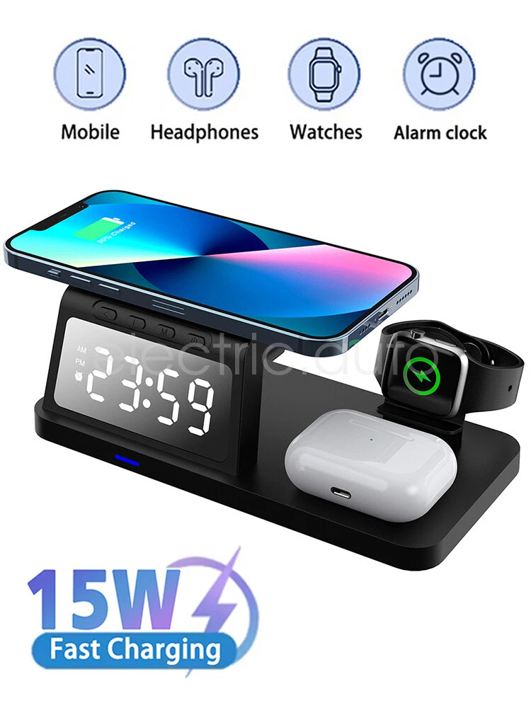 Product View Detail Features: 【 5-in-1 】 :The 5-in-1 wireless charger can wirelessly charge up to 3 devices, you can also connect 1 device for wired charging. It includes night light and alarm clock. 【 LED Clock Display】:Equipped with time display and alarm clock, this charger is very useful to keep on your desk. 【 Widely Used 】 :The 5-in-1 charging cradle can be used in the bedroom, kitchen, office and anywhere you like. 【 5-in-1 Design】: The wireless charging station can charge your phone, Apple Watch, and headphones at the same time, leaving your desk and bedside table tidy and organized without messy cords. For better charging experience, please use QC 3.0 power adapter (QC 3.0 adapter not included). 【Safe Charging】:The cordless phone charger provides temperature control and voltage protection as well as short circuit prevention to ensure safe and stable charging. This wireless charger provides you with a safe experience. Anti-slip silicone pads on the base and bottom protect your device from scratches and slips while charging. 【Universal Compatibility】:Apple charging cradle for most Apple devices. Compatible with iWatch series 8/7/6/SE/5/4/3/2/1; Compatible with AriPods Pro/3/2/1; Compatible with iPhone series. (Not compatible with Samsung watches). Compatible with iPhone 8/X/11/12/13/14 series, Samsung S10/S20/S21/S22; Note8/10/20/21 series; other Samsung series that support wireless charging and all other cell phone brands that support wireless charging. Attention: 1.For a fast charging experience, please use a 9V-3A or 12V-2A power adapter (adapter not included). 2.The watch charger is only for Apple Watch, it can't charge Samsung Watch or other brand watches. Specification: *Product Name: 5-in-1 Wireless Charger *Mobile phone output: 5W/7.5W/10W/15W *Watch output: 2.5W (max) *Headphone output: 3W (max) *Charging distance: 1-8MM *Charging efficiency: ≥75% *Product Material: ABS *Product color: black Package Includes: 1*5-in-1 wireless charger 1*Type-C cable 1*User Manual Attention: 1.Not included not include the power adapter! 2.Item is limited to charger only, not including headphones, watch! 3. Due to manual measurement, please allow a difference of 1 cm error! 4. may vary according to light color or monitor tint! Shipping Policy Payment Method Returns Policy Shipping Policy We only accept your Ebay Address ,Please Make sure it's 100% right. The items you ordered will be shipped out in 1 business day by Hong Kong Air Mail when your payment is clear. The arrival time is 5-20 business days to United States usually. We maintain high standards of excellence and strive for 100% customer satisfaction! Feedback is very important to us. We request that you contact us immediately BEFORE you give us neutralor negative feedback, so that we can satisfactorily address your concerns. Payment Method Returns Policy Copyright © 2017 DataCaciques 5in1 Wireless Charger Station Dock for iPhone Apple Watch Airpods Fast Charging Home Payment Shipping About us Contact us Store Categories Store Categories Consumer Electronics PC&Tablet Accessories Mobile Phone Accessories Sound&Vision Headphones Watches Camera Led Lights Others Auto Car Accessories Lights Others Motorcycle Motor Accessories Lights Others Headlamp&Torch Others Other Product View Detail Features: 【 5-in-1 】 :The 5-in-1 wireless charger can wirelessly charge up to 3 devices, you can also connect 1 device for wired charging. It includes night light and alarm clock. 【 LED Clock Display】:Equipped with time display and alarm clock, this charger is very useful to keep on your desk. 【 Widely Used 】 :The 5-in-1 charging cradle can be used in the bedroom, kitchen, office and anywhere you like. 【 5-in-1 Design】: The wireless charging station can charge your phone, Apple Watch, and headphones at the same time, leaving your desk and bedside table tidy and organized without messy cords. For better charging experience, please use QC 3.0 power adapter (QC 3.0 adapter not included). 【Safe Charging】:The cordless phone charger provides temperature control and voltage protection as well as short circuit prevention to ensure safe and stable charging. This wireless charger provides you with a safe experience. Anti-slip silicone pads on the base and bottom protect your device from scratches and slips while charging. 【Universal Compatibility】:Apple charging cradle for most Apple devices. Compatible with iWatch series 8/7/6/SE/5/4/3/2/1; Compatible with AriPods Pro/3/2/1; Compatible with iPhone series. (Not compatible with Samsung watches). Compatible with iPhone 8/X/11/12/13/14 series, Samsung S10/S20/S21/S22; Note8/10/20/21 series; other Samsung series that support wireless charging and all other cell phone brands that support wireless charging. Attention: 1.For a fast charging experience, please use a 9V-3A or 12V-2A power adapter (adapter not included). 2.The watch charger is only for Apple Watch, it can't charge Samsung Watch or other brand watches. Specification: *Product Name: 5-in-1 Wireless Charger *Mobile phone output: 5W/7.5W/10W/15W *Watch output: 2.5W (max) *Headphone output: 3W (max) *Charging distance: 1-8MM *Charging efficiency: ≥75% *Product Material: ABS *Product color: black Package Includes: 1*5-in-1 wireless charger 1*Type-C cable 1*User Manual Attention: 1.Not included not include the power adapter! 2.Item is limited to charger only, not including headphones, watch! 3. Due to manual measurement, please allow a difference of 1 cm error! 4. may vary according to light color or monitor tint! Shipping Policy Payment Method Returns Policy Shipping Policy We only accept your Ebay Address ,Please Make sure it's 100% right. The items you ordered will be shipped out in 1 business day by Hong Kong Air Mail when your payment is clear. The arrival time is 5-20 business days to United States usually. We maintain high standards of excellence and strive for 100% customer satisfaction! Feedback is very