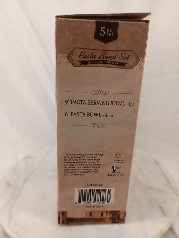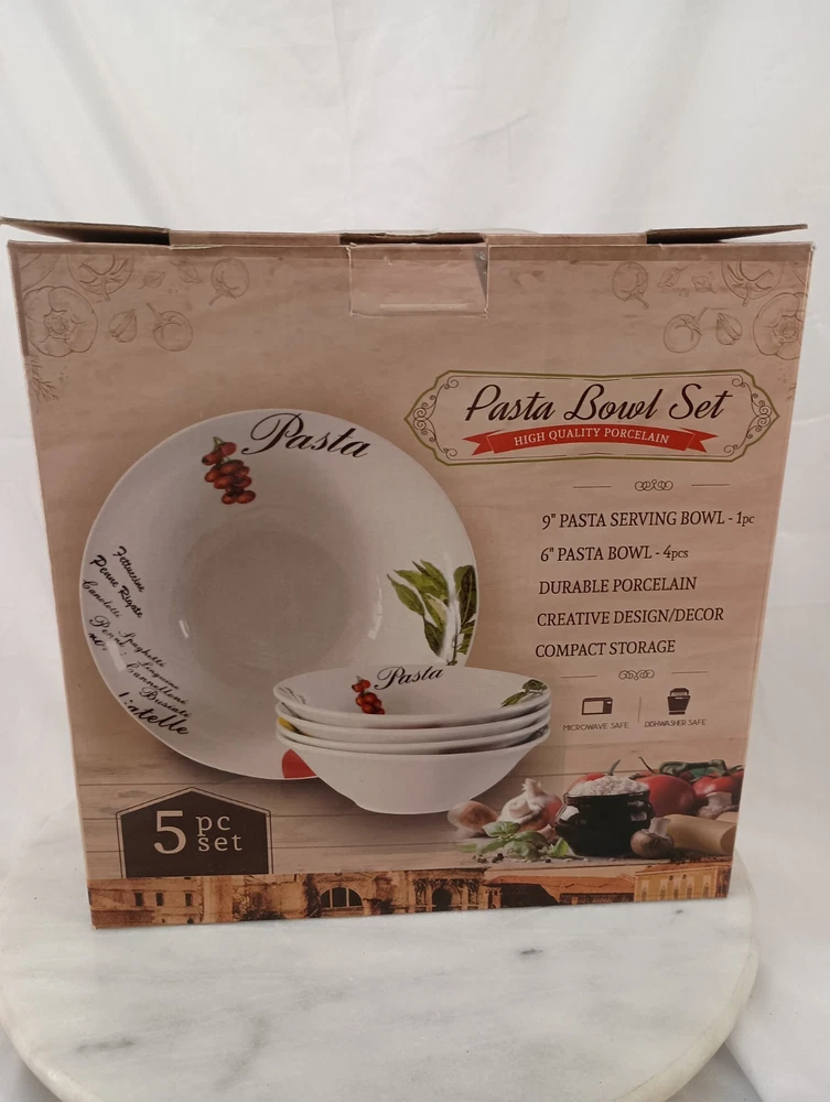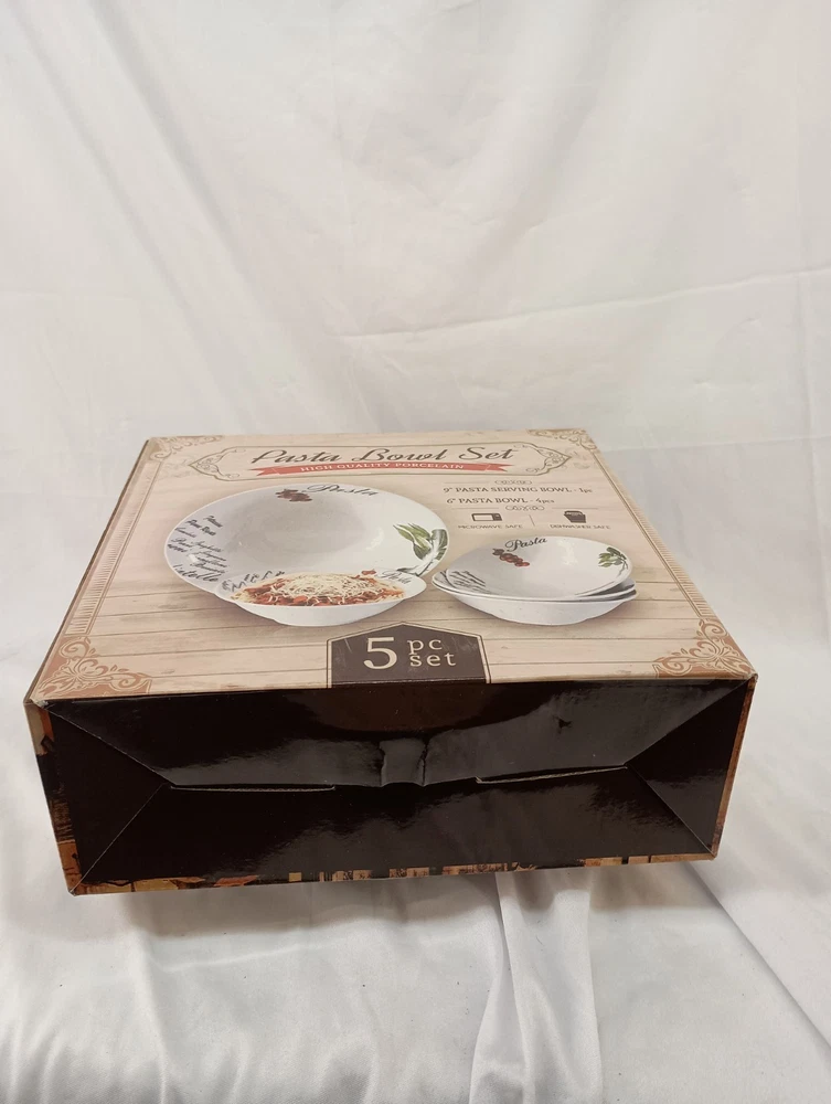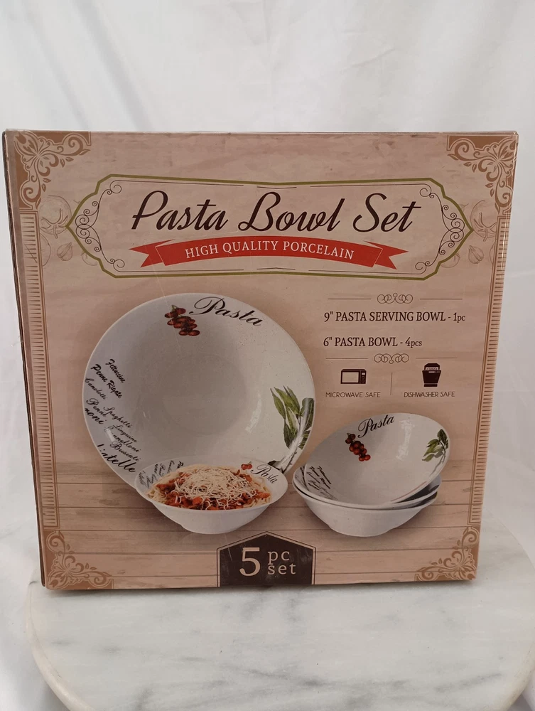 This 5-piece Porcelain Pasta Bowl Set includes one 9" bowl and four 6" bowls, all in a vibrant multicolor design. Made from durable porcelain material, this set is perfect for serving and storing pasta salads or side dishes. Enhance your dining experience with this stylish and practical bowl set that is sure to add a touch of elegance to your table setting. Thank you for visiting my listing today and thank you for your interest in this item! My goal is to have a pleasant transaction resulting in a satisfied customer. I hope any transaction between us leaves you with a feeling of confidence knowing you can trust me and the items I offer here. *Most if not all my listings are set to accept offers. Feel free to send an offer and I will be happy to consider it!! *Please contact me with any questions or concerns and I will be happy to help. *Always examine the photos carefully, and if in doubt, email me with any questions you may have. *Please note that condition statements are offered as a guide only. They will always be somewhat subjective and reflect our opinion, which may not necessarily agree with someone else's opinion. PLEASE READ: I aim to please and I want my buyers to have a positive transaction with me. If you have questions, concerns, or special requests related to any of my items I hope you will contact me so we can work them out to your satisfaction. I sell my items to give you a great item at a decent price while making a little profit at the same time. If you feel the item you are interested in is too pricey do not hesitate to send me a fair offer and I will consider it. My goal is to satisfy your needs and mine so both parties can benefit. SHIPPING: If you prefer a different shipping method or company please contact me and I will do all I can to make that happen. If you have concerns or requests about the packaging of your item contact me and I will do all I can to accommodate them. Shipping costs are based on location in each state or country, the costs always differ. After I have received your payment I will ship your item out within 3 business days or less excluding weekends and holidays. BEFORE PURCHASING & BIDDING: **Please see all the pictures. I do not have great photography skills but I try to get the most accurate photos I can. If you are unsure about something you see in a photo contact me so I can do what I am able to answer your concern about the item. **I cannot stress enough that if you have any questions or concerns please contact me before purchasing and bidding. Communication can solve so much. **As a customer myself, I understand the meaning of customer satisfaction and my goal is to have nothing but satisfied customers. If you are not unsatisfied with your purchase I ask that you please contact me so I can take care of your issue. My goal is for you to be 100% satisfied. INTERNATIONAL BUYERS WELCOMED - PLEASE NOTE: I welcome International buyers! Please be aware that any custom/duties/taxes that the parcel might incur once it is out of the USA are the responsibility of the buyer. Please check with your country's customs office to determine what these additional costs will be prior to bidding or buying. Please refer to the eBay Site Map for more information if needed.