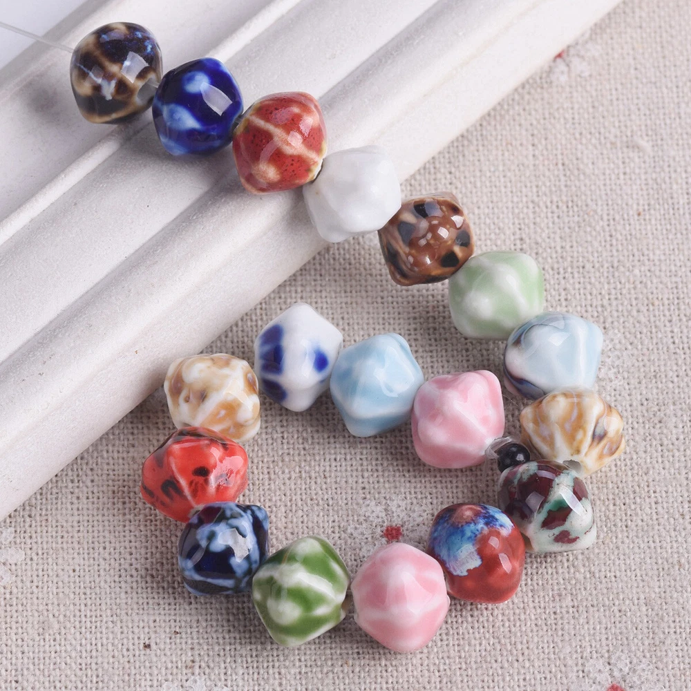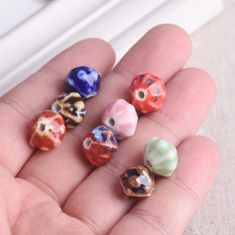 5pcs 12mm Bicone Shape Handmade Flambed Ceramic Porcelain Loose Beads Lot