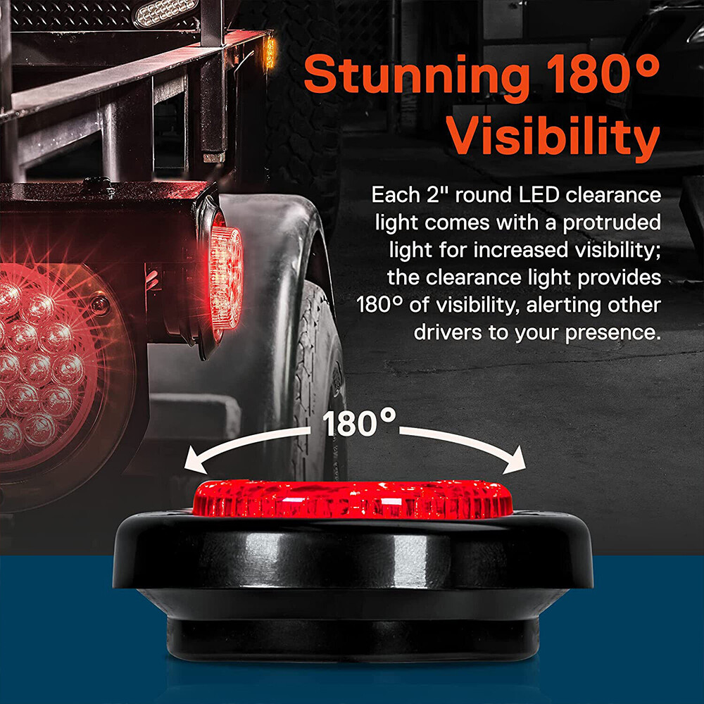 Store Categories Store Categories Lights Projector Lights License Plate Lights Interior Lights Warning Lights Others Sun Shades Organizers Gear Shift Steering Wheels Seats Tools Stickers Decors Other 5pcs 2" Inch DOT Red Round Trailer 9 LED Marker Lights w/ Grommet for Truck RV Features: Depending on the size of your vehicle, federal regulations mandate the use of both reflectors and side marker lights. Luckily, the red 2" clearance light allows you to satisfy both requirements. The 2" clearance light comes with 9 high powered LEDS as well as polycarbonate reflectors that reflect direct light to make your tractor or trailer more visible and the road safer for everyone. This clearance light is also IP67 rated , meaning that it can not only handle water, but is also submersible as well. Ultra-Bright 9 LEDS and Easy Installation The clearance light comes with a rubber grommet so you never need to mess around with screws. Simply use a preexisting hole, or cut out a new one for the grommet. Reverse polarity protection helps protect your clearance light from damage in the event that you miswire your light. HIGH QUALITY COMPONENTS - Each 2.8" round LED clearance light uses high quality components, and is reverse polarity protected, meaning that plugging it in the wrong way will not damage the unit itself. Specification: 180° Viewing Angle 9 High Powered LEDs Reflective Polycarbonate Design Rubber Grommet Package content: 5 x 2" Round 9 LED Clearance Side Marker Light - RED 5 x 2.8" Round Black Grommet 5 x 2-Pin 90° Plugs connector Specifications: Voltage: 10-26V DC Connector Type: Pigtail, Lens Cover Color: Red Lens Cover Material: Plastic Mounting Type: Flush-Mount, Mounting Hardware: Grommet, Housing Material: Plastic, (rubber grommet) 5 Year Warranty Application: Universally fit any vehicles with DC 12V-24V Such as Semi Truck & Trailer, Service Truck, Bus, Service Van, Utility Truck, Parade Float, Horse Trailer, Utility Trailer, Pick Up Truck, UTE, UTV. Payment We can accept payment of Paypal only. Payment should be made within 7 days after purchasing. (No payment orders eBay system will automatically open unpaid dispute, and this is not good to your account.) Shipping Item will be shipped out within 48 hours upon receipt of your cleared payment. We can not ship on Sundays and other public holidays. International Buyers Please Note: 1, Import duties, taxes and charges are not included in the item price or shipping charges. These charges are the buyer's responsibility. 2, Please check with your countrys customs office to determine what these additional costs will be prior to bidding/buying. Please make sure your address in paypal is correct. we will only follow your address listed in the Paypal payment for the shipment. Combine shipment is not allowed. If you want to combine all the items together, you should still pay for all of the shipping, insurance and handling fee! Returns We offer you 30 days return. The buyer is responsible for return shipping including a result of customer error or wrong item bought: 1) If you received an incorrect, damaged, defective, or item not as described, contact us for a partial/full refund or replacement on our cost. 2) If you want to return the item, please contact us within 60 days after package received. Return products must also be in its original condition: including box, packaging and all other accessories. Feedback 1.We are appreciated your business and to improve our customer service and our commitment to quality. 2.We will leave a positive feedback immediately after payment is received. We appreciate a positive feedback as much as you do. 3.If for some reason there is any issue with the purchase, please contact us prior to leaving feedback, and we will be glad to work with you to have it resolved. Contact Us We do appreciate your purchase from our store. If you are satisfied with the item as well as our service, please kindly leave us a Positive Feedback to help develop our business. Thank you in advance. Our office hours are MONDAY - FRIDAY 9:00PM - 18:00PM PST , we do not answer any E-mails or eBay messages on weekend. All E-mail or eBay message take us around 24 hours to respond. Thanks a lot. Store Categories Store Categories Car Sunshade Organizers Gear Shift Steering Wheels Seats Tools Stickers For BENZ For BMW Car Door Lights License Plate Light Other 5pcs 2" Inch DOT Red Round Trailer 9 LED Marker Lights w/ Grommet for Truck RV Features: Depending on the size of your vehicle, federal regulations mandate the use of both reflectors and side marker lights. Luckily, the red 2" clearance light allows you to satisfy both requirements. The 2" clearance light comes with 9 high powered LEDS as well as polycarbonate reflectors that reflect direct light to make your tractor or trailer more visible and the road safer for everyone. This clearance light is also IP67 rated , meaning that it can not only handle water, but is also submersible as well. Ultra-Bright 9 LEDS and Easy Installation The clearance light comes with a rubber grommet so you never need to mess around with screws. Simply use a preexisting hole, or cut out a new one for the grommet. Reverse polarity protection helps protect your clearance light from damage in the event that you miswire your light. HIGH QUALITY COMPONENTS - Each 2.8" round LED clearance light uses high quality components, and is reverse polarity protected, meaning that plugging it in the wrong way will not damage the unit itself. Specification: 180° Viewing Angle 9 High Powered LEDs Reflective Polycarbonate Design Rubber Grommet Package content: 5 x 2" Round 9 LED Clearance Side Marker Light - RED 5 x 2.8" Round Black Grommet 5 x 2-Pin 90° Plugs connector Specifications: Voltage: 10-26V DC Connector Type: Pigtail, Lens Cover Color: Red Lens Cover Material: Plastic Mounting Type: Flush-Mount, Mounting Hardware: Grommet, Housing Material: Plastic, (rubber grommet) 5 Year Warranty Application: Universally fit any vehicles 