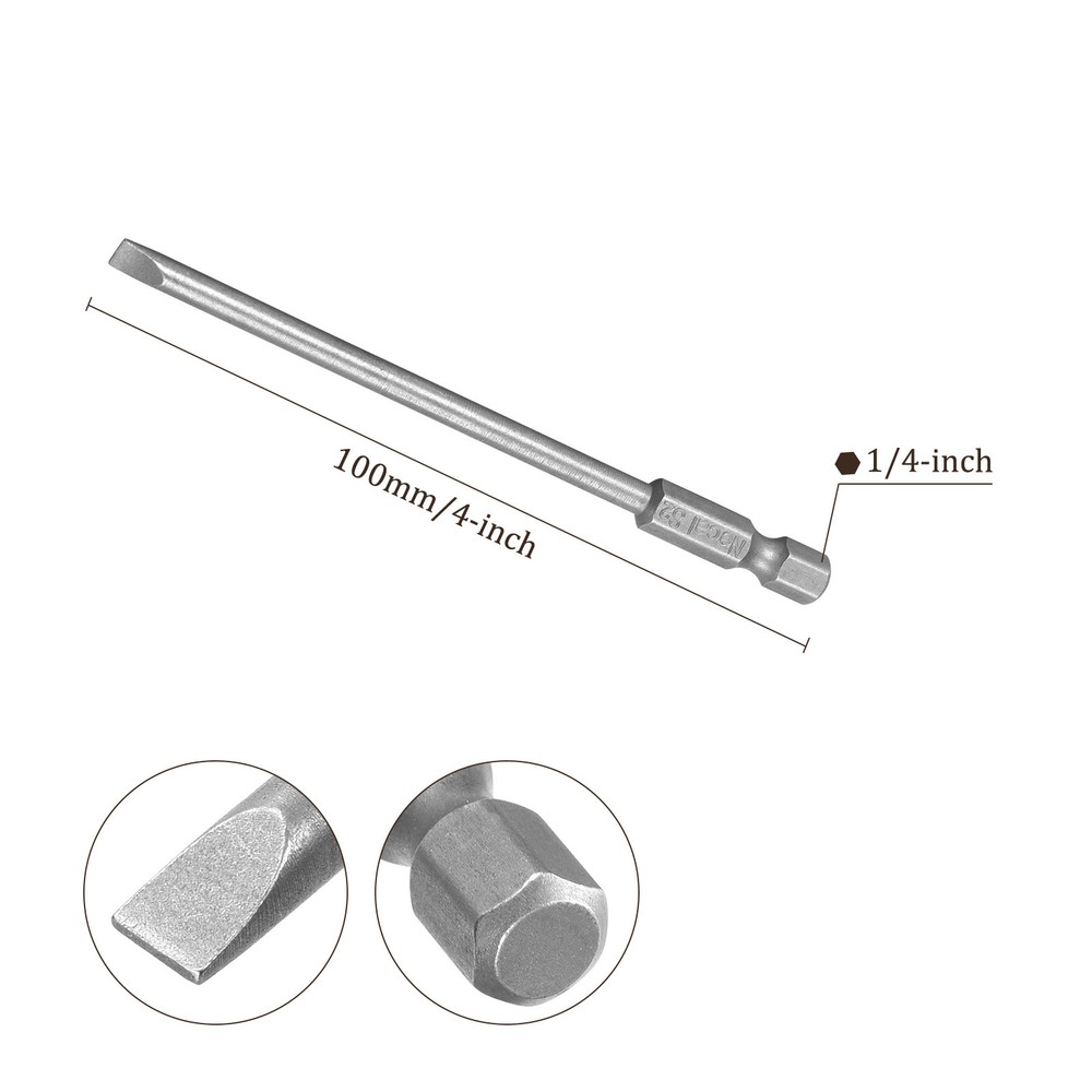 5pcs 4-Inch Magnetic Slotted Screwdriver Bits H1/4 SL4 for Power Tools