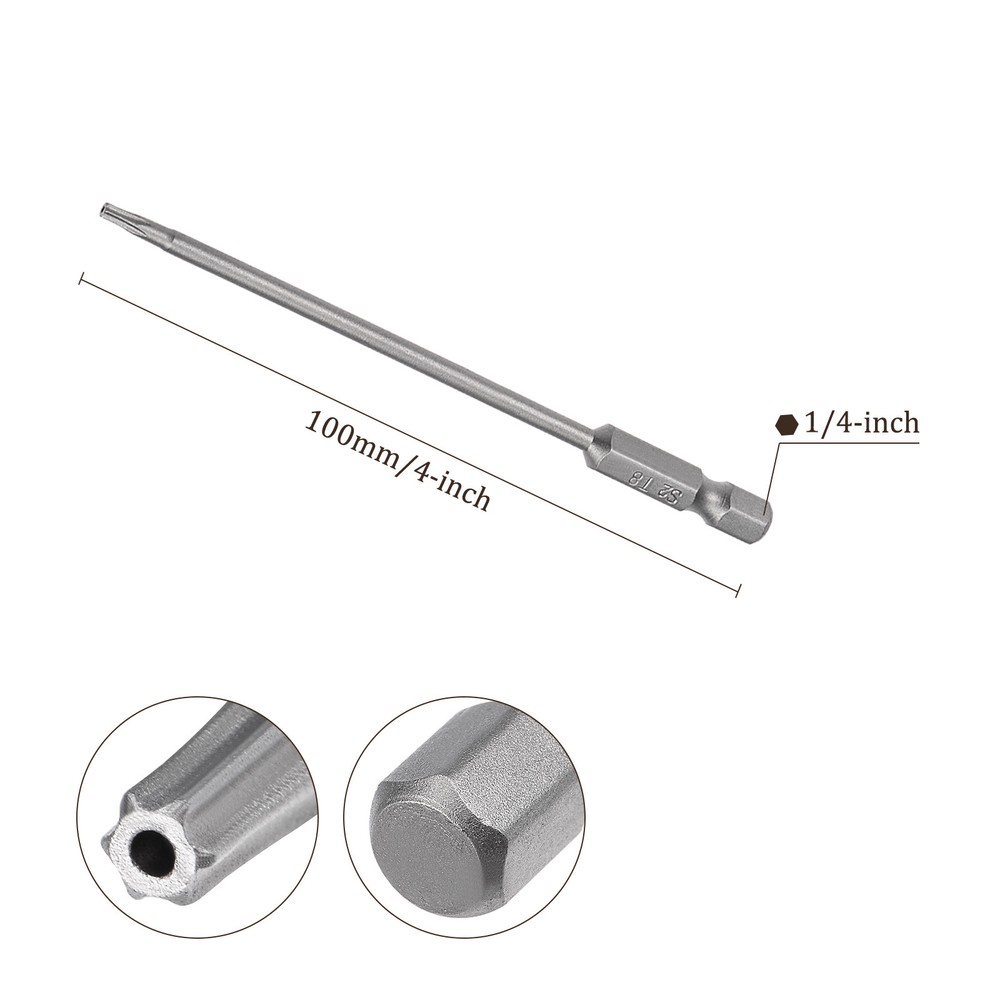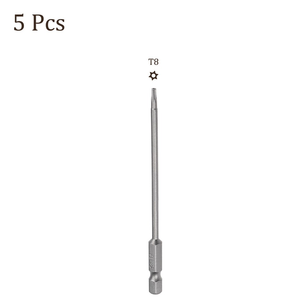 5pcs 4-Inch Magnetic T8 Torx Screwdriver Bits for Power Tools