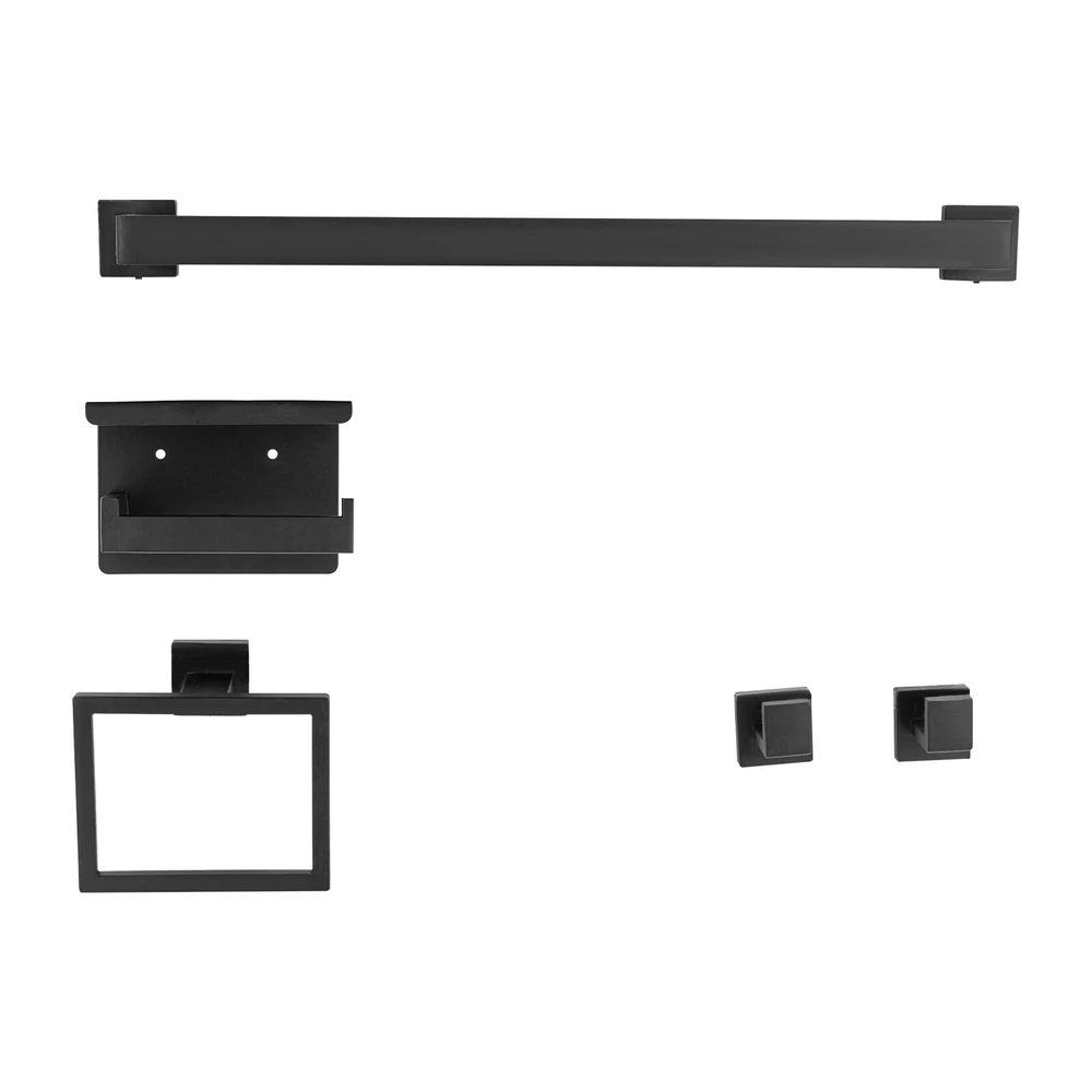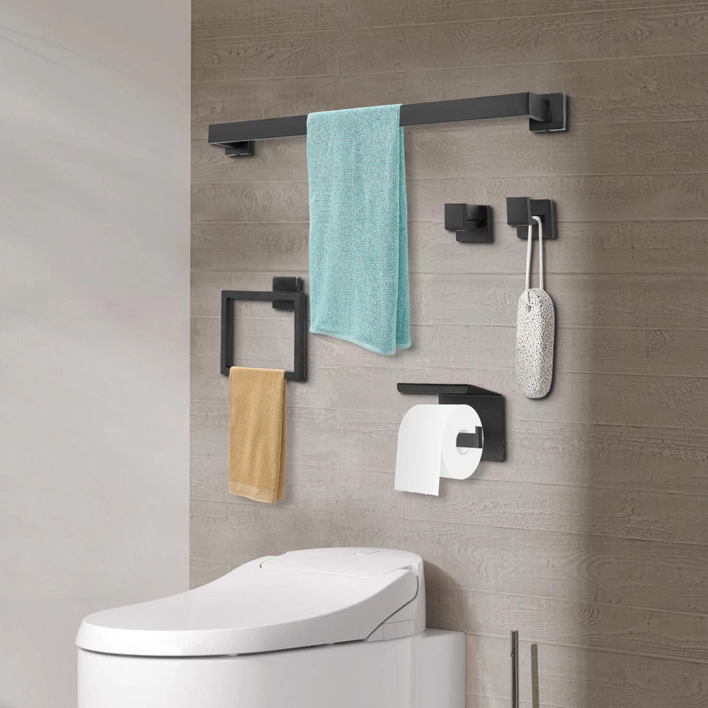5pcs Bathroom Hardware Accessories Set Towel Bar Set Stainless Steel Black New Description Our bathroom towel bar set is made of high-quality 201 stainless steel for durability. The product is a five-piece set, which can help you store towels, toilet paper, and other items in the bathroom and fully meet your needs. The simple structure and modern appearance can blend with most home decor styles and add a splash of color to your bathroom decor. It will become your ideal choice. Key Features Made to Last: This product is made of high-quality 201 stainless steel by a paint spraying process, strong and wear-resistant , not easy to corrode and rust, and can be used for a long time without frequent replacement. Complete Set: This set includes 5 pieces of racks, including a towel bar, towel ring, two hooks, and a toilet paper holder with a shelf, which can fully meet your different needs. You don't need to buy them separately, saving your cost and effort. Modern Appearance: The black exterior, simple geometric style, and smooth lines add a touch of modern design to your bathroom and can be better integrated into contemporary home decor. Simple Installation: Simple construction, complete accessories, and a detailed installation diagram allow you to quickly install and experience the joy of installation. Excellent Function: They can be used not only to hang towels and paper but also to hang clothes and organize toiletries, which is functional and space-saving. Effortless Cleaning: It has a smooth surface and a simple structure, so you only need to wipe the dust or residue with a towel. Ideal Gift: With good performance and a modern appearance, it can be used as an ideal housewarming gift for parents, friends, and lovers so that they can also enjoy a more convenient life. Protective Package: To prevent the product from being damaged during transportation, we packed it with a sponge to protect your products to the maximum extent possible. Good Customer Service: We aim to provide quality products and services. If you have problems, please feel free to contact us. We will reply and solve the problem for you as soon as possible. Details Rounded Corners: They prevent you from scratching your hands and skin during installation and use. Pre-drilled Holes: They can facilitate the installation of your product, saving time and effort. Application This product is suitable for the bathroom, kitchen, bedroom, and laundry room. The bathroom towel bar can be used to hang towels and clothes; the hooks can be used to hang bath balls, combs, bathing suits, keys, pants, kitchen utensils, and more. How to Install Clean the wall. Mark the mounting holes with a colored pen (not included). Use a drill (not included) to make holes. Nail the expansion pellets into the holes. Screw on the screw to complete the installation. Specification Material: 201 Stainless Steel Color: Black Process: Paint Spraying Style: Modern Installation Required: Yes Number of Items: 5 Mounting Type: Wall Mount Towel Bar Length: 60cm/23.62in Package Size: 64*20.5*11cm/25.2*8.07*4.33in Gross Weight: 1.5kg/3.31lbs Net Weight: 1.2kg/2.65lbs Package Included 1* Towel Bar 1* Towel Ring 1* Toilet Paper Holder 2* Towel Hooks 1* English Installation Diagram Other Accessories for Assembly Notes Please install this product according to the diagram. Towels, rolls of paper, and other products shown in the pictures are not included in the packaging. Please allow the slight color difference caused by the shooting light and 1-3cm error due to manual measurement, and make sure you do not mind before ordering. Payment Delivery details Terms of sales About us Contact us Payment We accept ebay payment 。 Fees such as import duties, taxes are not included in the item price or shipping costs. These charges are the buyer's responsibility. Delivery details Shipping: 2-9 working days to: USA Terms of sales We maintain high standards of excellence and strive for hundred percent customer satisfaction. Feedback is very important to us. We hope that you contact us immediately before you give neutral or negative feedback, so that we can address your concerns. It is impossible to address issues if we do not know about them! About us Your satis faction is our ultimate goal. We work hard to earn your trust and future business. Our certified technicians have tested each item before shipping. The unit comes with 1 year limited warranty on all manufacturing defects. a) If you receive a defective item, you may return it or ask for a discount. Please contact us within 14 days after you receive the package. b) What you returned must be intact and in its original packaging as re? u. Customer is responsible for shipping costs of the returned item. c) We will cover the cost of shipping back t with the shipping rate indicated in the registration page. We will send you a new unit or refund the full payment you paid. Thank you. Contact us Business Hour Business Hour: Monday To Friday: 8:30 AM to 5:00 PM (Beijing China time) Due to time zones, our reply to your questions may not be immediately. But within above working time, we will reply your email within 24 hours. If it's non-workdays, please kindly be patient and wait till Monday. Please contact us with ebay message. Please feel free to contact us if you have any questions. Monday To Friday: 8:30 AM to 5:00 PM (Beijing China time) Due to time zones, our reply to your questions may not be immediately. But within above working time, we will reply your email within 24 hours. If it's non-workdays, please kindly be patient and wait till Monday. Please contact us with ebay message. Please feel free to contact us if you have any questions. Brand Unbranded Color Black Material 201 Stainless Steel Room Bathroom Set Includes N/A Type Accessory Set Department Adults Capacity N/A Product Line N/A Mounting Wall Mount Installation Wall Mount