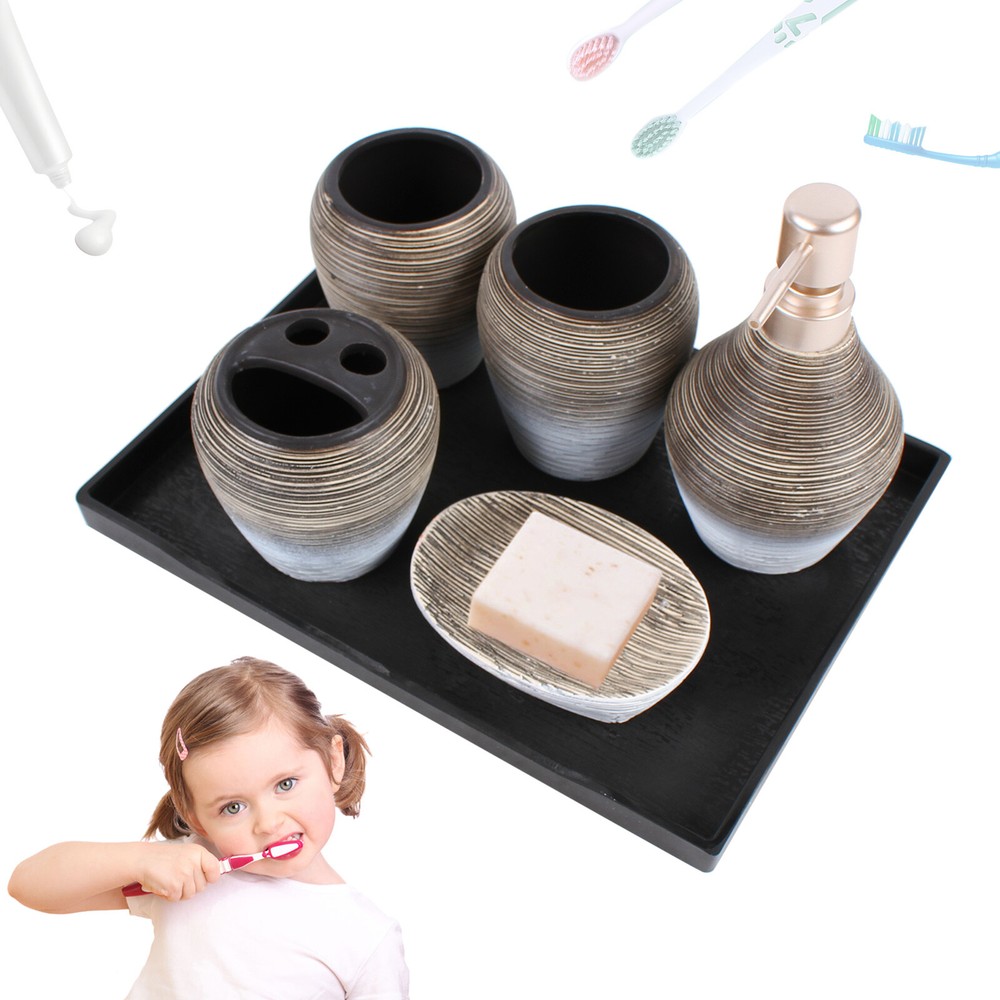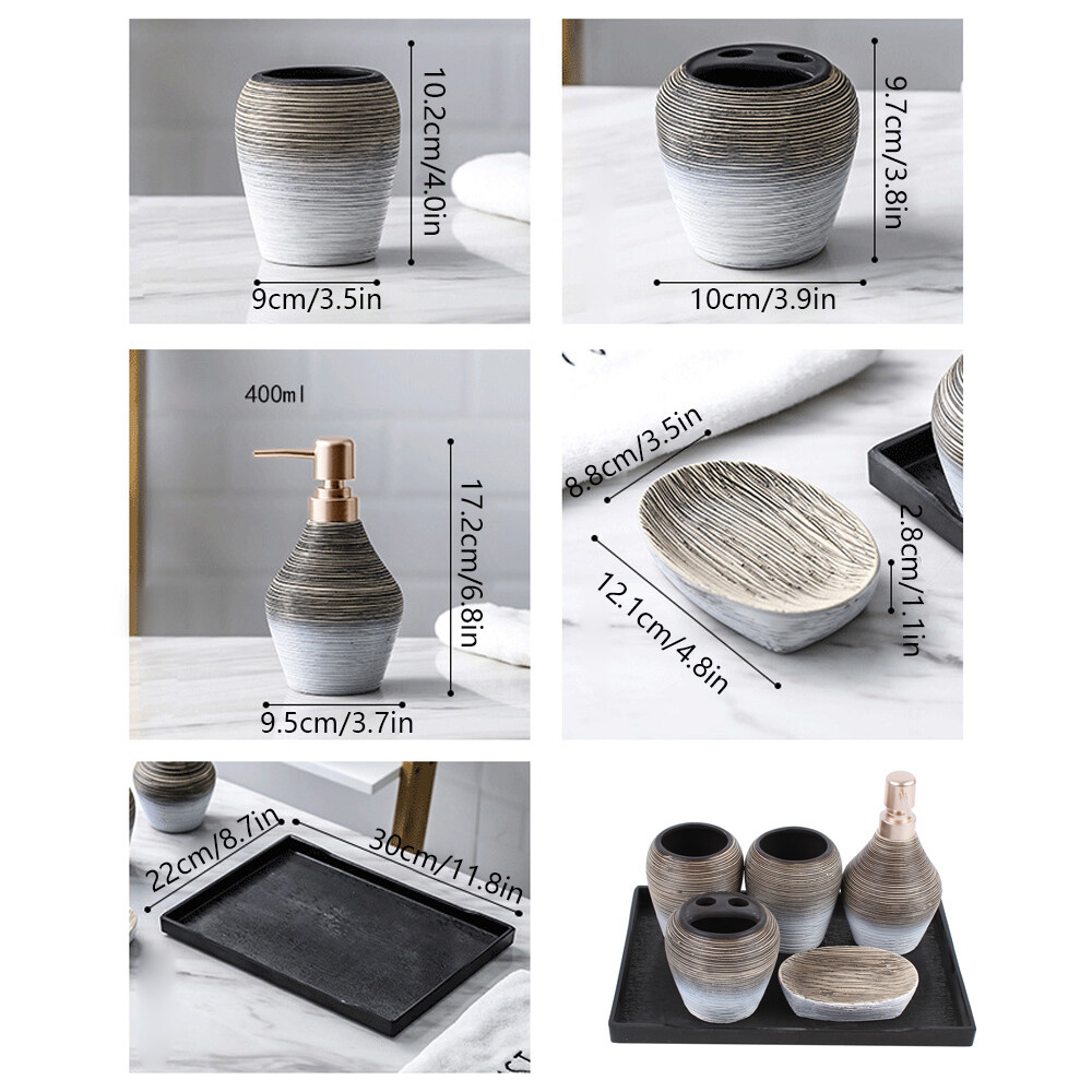 Features: Exquisite 6 Piecs Set: Includes 1 lotion dispenser, 1 soap dish, 1 toothbrush holder, 2 gargle cup, 1 tray. One set fits your daily washing need. Decorative Storage: Retro modern style adds a luxurious and exquisite feeling. Perfect Space Organizer: Organize and enhance your bathroom space, fits well in large or smaller bathrooms. Quality Material: Made of ceramics material, safe to use and easy to clean. A perfect bathroom decoration, can also be a warm gift. Also ideal for hotel, bathroom, hostel, etc. 5pcs Bathroom Accessories Set Lotion Dispenser Holder Ceramic Hotel Bathroom 5PCS Bathroom Accessories Set Lotion Dispenser Holder Ceramic hotel bathroom 1.Description Exquisite 6 Piecs Set: Includes 1 lotion dispenser, 1 soap dish, 1 toothbrush holder, 2 gargle cup, 1 tray. One set fits your daily washing need. 2.What's Included? 1 x Lotion Dispenser 1 x Soap Dish 1 x Toothbrush Holder 2 x Gargle Cup 1 x Tray 3.Features&Highlights Decorative Storage: Retro modern style adds a luxurious and exquisite feeling. Perfect Space Organizer: Organize and enhance your bathroom space, fits well in large or smaller bathrooms. Quality Material: Made of ceramics material, safe to use and easy to clean. A perfect bathroom decoration, can also be a warm gift. Also ideal for hotel, bathroom, hostel, etc. 4.Weights&Dimensions Material: Ceramics, Melamine Board(tray) Color: see pictures Pattern:5Pcs With Tray Lotion Dispenser/Cup Capacity: 400ml(13.53oz) Net weight: About 1.45kg 5.Specifications Lotion Dispenser: 9.5 x 17.2cm / 3.74 x 6.77in(approx.) Soap Dish: 12.1 x 8.8 x 2.8cm / 4.76 x 3.46 x 1.10in(approx.) Toothbrush Holder: 10 x 9.7cm / 3.94 x 3.82in(approx.) Gargle Cup: 10.2 x 9cm / 4.02 x 3.54in(approx.) Tray: 30 x 22cm / 11.81 x 8.66in(approx.) Payment Delivery details Terms of sales About us Contact us Payment We accept ebay payment 。 Fees such as import duties, taxes are not included in the item price or shipping costs. These charges are the buyer's responsibility. Delivery details Shipping: 2-9 working days to: USA Terms of sales We maintain high standards of excellence and strive for hundred percent customer satisfaction. Feedback is very important to us. We hope that you contact us immediately before you give neutral or negative feedback, so that we can address your concerns. It is impossible to address issues if we do not know about them! About us Your satis faction is our ultimate goal. We work hard to earn your trust and future business. Our certified technicians have tested each item before shipping. The unit comes with 1 year limited warranty on all manufacturing defects. a) If you receive a defective item, you may return it or ask for a discount. Please contact us within 14 days after you receive the package. b) What you returned must be intact and in its original packaging as re? u. Customer is responsible for shipping costs of the returned item. c) We will cover the cost of shipping back t with the shipping rate indicated in the registration page. We will send you a new unit or refund the full payment you paid. Thank you. Contact us Business Hour Business Hour: Monday To Friday: 8:30 AM to 5:00 PM (Beijing China time) Due to time zones, our reply to your questions may not be immediately. But within above working time, we will reply your email within 24 hours. If it's non-workdays, please kindly be patient and wait till Monday. Please contact us with ebay message. Please feel free to contact us if you have any questions. Monday To Friday: 8:30 AM to 5:00 PM (Beijing China time) Due to time zones, our reply to your questions may not be immediately. But within above working time, we will reply your email within 24 hours. If it's non-workdays, please kindly be patient and wait till Monday. Please contact us with ebay message. Please feel free to contact us if you have any questions. On Jul 7, 2025 at 19:41:52 PDT, seller added the following information: