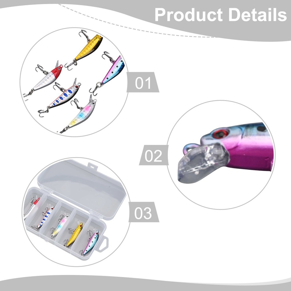 Number in Pack:5pcs/bagMaterial:Metal+PlasticBuoyancy:sinkingBait Type:artificial hard baitMPN:Does Not ApplyCountry of Origin:Chinagtin13:Does not applyFish Species:army fish, horsemouth, troutBrand:UnbrandedModel:5pcs Fishing LuresUPC:Does not applyColor:as the picture showsFishing Type:both fresh water and sea waterItem Weight:2.5g