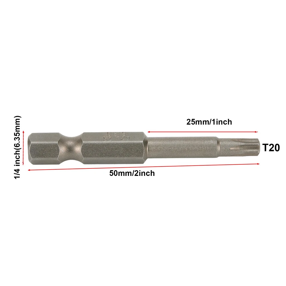 Beschreibung Features: *Made of high quality material, and practical to use *These drill bits are magnetic and can be fixed on a screwdriver, suitable for electric screwdrivers, manual screwdrivers, electric tools Exercises, air drills, etc. *Those Hex Head Screwdriver Bits are made of alloy steel which is a commonly used material in hardware with high hardness. *Magnetic bits are firmly fixed on screwdrivers. *These for Torx Screwdriver Bits are with a little magnetic design Specifications: Color: Silver (As Pictures Show) Model: for T20 Shank Type: 1/4 Hex shank Length: 50mm Quantily: 5pcs Package Contents: 5pcs* Screwdriver Bit Note: 1. The real color of the item may be slightly different from the pictures shown on website caused by many factors such as brightness of your monitor and light brightness. 2. Please allow slight manual measurement deviation for the data. POLICES Shipping Payment WARRANTY We only ship to confirmed ebay Order addresses. Please comfirm that your Order address is in line with your shipping address. Please kindly note that the c ombined shipping is not provided because the shipping fee is calculated by weight. Also, the each additional item means exactly the the same color and size. It takes about 7 -15 working days to US; about 10-30 working days to other countries. Transit time may be a little delayed because of the bad weather and customs inspection . If you do not receive your item within 30 working days since payment finished, please contact us immediately for further assistance. Payment must be completed within 5 days. If you have any problems about payment, please contact us via ebay message. We strive for 100% customer satisfaction! Positive Feedback is very important to us. If you have any questions, p lease feel free to contact us via "Ask seller a question" . We will reply your email within 24 working hours.