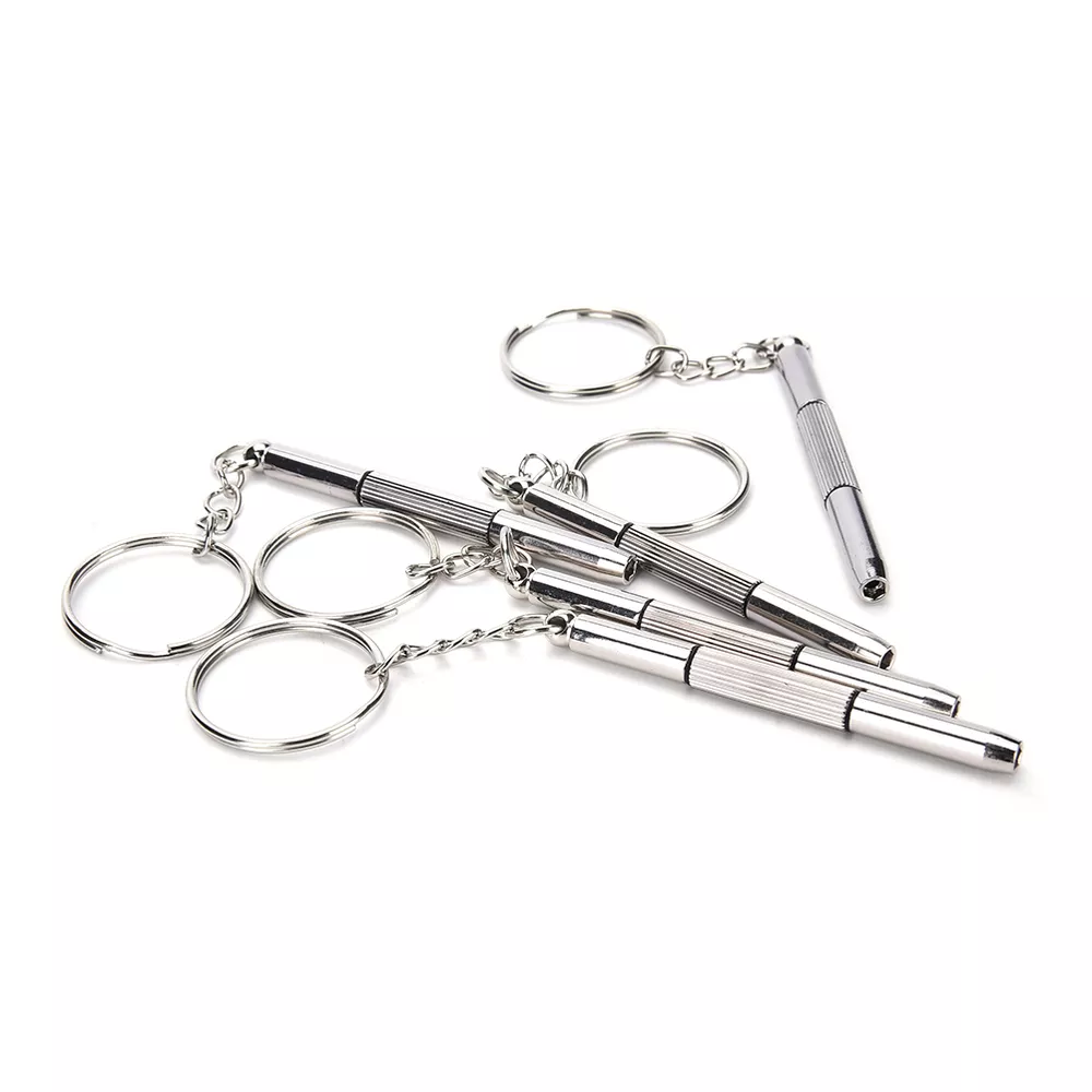 Description: 100% Brand new and high quality This multifunctional screwdriver is applied for repairing glasses and watch widely. The repair tool include: Flat head screwdriver / Phillips screwdriver / Star nut driver Can be used to repair or screw up screws for eyeglasses, sunglasses, watches, cellphones and other precise devices With a keychain, portable and easy to hang Material: Aluminum steel Total length (without Keychain): Approx. 6cm Keychain diameter: Approx. 2.3cm Included: 5 x Eyeglass Screwdriver Repair Kit Preview: