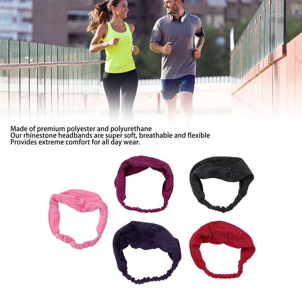 Feature: 1. Premium Material: Sport rhinestone hairbands are made of premium polyester and polyurethane, our rhinestone headbands are soft, breathable and stretchy, providing the extreme comfort for all day wear. 2. 5pcs: This set of 5 elastic rhinestone headsbands for women includes a variety of vibrant colors such as red, pink, dark purple and dark grey, which can be matched with different outfits or activities. 3. Wide Applications: Suitable for a variety of situations and activities, our women's elastic rhinestone headbands are great for shopping, yoga, running, hiking, biking, or any other sports, ensuring a snug fit and sweat wicking performance. 4. Exquisite Rhinestones: These women sport stretch headbands come with exquisite rhinestones to add a touch of sparkle to your look while securing your hair during strenuous workouts or daily outings. 5. Exquisite Gift: Our rhinestone sports headbands are beautifully stylish and add sophistication while being practical, making them an ideal gift choice for a sports loving lady or girlfriend. Specification: Item Type: Wide Bandana Headbands Material: Plastic, Rhinestones, Polyester, Polyurethane Product Flat Size: Width Approx. 17cm/ 6.69in Length Approx. 26cm /10.24in Colors: Red, Rose Red, Pink, Deep Purple, Deep Gray Package List: 5 x Headband