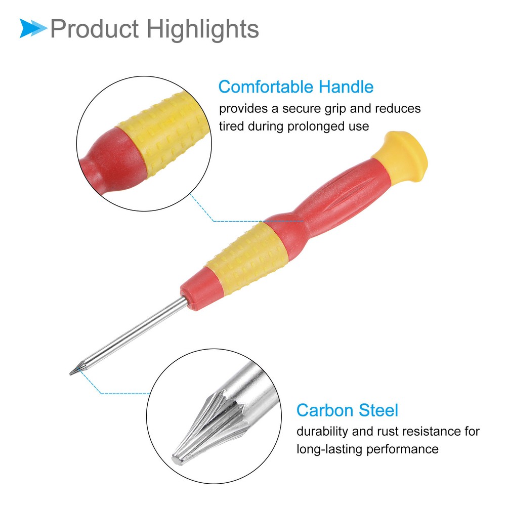 Document Attributes:* Size: T2* Total Length: 120mm / 3.15-inch* Shaft Material: Carbon SteelWhat Is Included:* 5 Pieces x Micro ScrewdriversApplications & Features:--- This screwdriver is a multifunctional tool suitable for a variety of electronic devices and appliances and can be used on laptops, computers, game consoles, pocket knives, doorbells, dishwashers, routers, and more.--- The screwdriver features a comfortable handle that provides a secure grip and reduces tired during prolonged use--- The screwdriver is made from carbon steel material ensuring strength, durability and rust resistance for long-lasting performance.Useful Tips:--- Please confirm the screwdriver size before buying. 5pcsSmall Torx Screwdriver T2 120mm 6 Point Screwdriver W Anti-slip Handle Attributes: * Size: T2 * Total Length: 120mm / 3.15-inch * Shaft Material: Carbon Steel What Is Included: * 5 Pieces x Micro Screwdrivers Applications & Features: --- This screwdriver is a multifunctional tool suitable for a variety of electronic devices and appliances and can be used on laptops, computers, game consoles, pocket knives, doorbells, dishwashers, routers, and more. --- The screwdriver features a comfortable handle that provides a secure grip and reduces tired during prolonged use --- The screwdriver is made from carbon steel material ensuring strength, durability and rust resistance for long-lasting performance. Useful Tips: --- Please confirm the screwdriver size before buying. Hot Item Payment 1.We accept eBay payment . 2.Payment must be received within 7 business days of auction closing. Shipping 1.We ship to your eBay or Paypal address. Please make sure your eBay and Paypal address is correct before you pay. 2.Items will be shipped within 1-3 business day when we received payment. 3.Delivery time depends on destination and other factors. Description Policy 5pcsSmall Torx Screwdriver T2 120mm 6 Point Screwdriver W Anti-slip Handle Attributes: * Size: T2 * Total Length: 120mm / 3.15-inch * Shaft Material: Carbon Steel What Is Included: * 5 Pieces x Micro Screwdrivers Applications & Features: --- This screwdriver is a multifunctional tool suitable for a variety of electronic devices and appliances and can be used on laptops, computers, game consoles, pocket knives, doorbells, dishwashers, routers, and more. --- The screwdriver features a comfortable handle that provides a secure grip and reduces tired during prolonged use --- The screwdriver is made from carbon steel material ensuring strength, durability and rust resistance for long-lasting performance. Useful Tips: --- Please confirm the screwdriver size before buying. Hot Item Payment 1.We accept eBay payment . 2.Payment must be received within 7 business days of auction closing. Shipping 1.We ship to your eBay or Paypal address. Please make sure your eBay and Paypal address is correct before you pay. 2.Items will be shipped within 1-3 business day when we received payment. 3.Delivery time depends on destination and other factors.