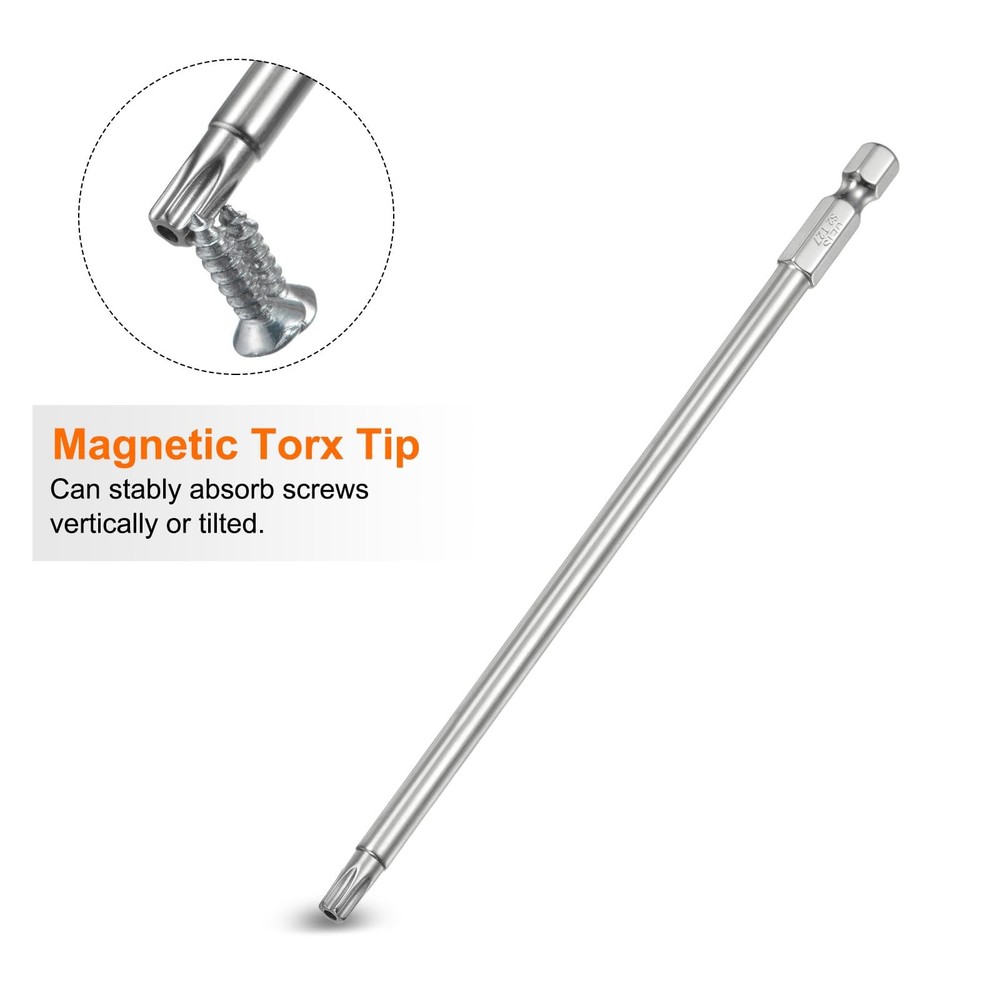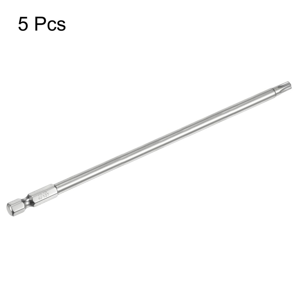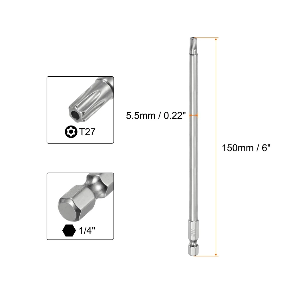 5pcs T27 Security Torx Bit 1/4" Hex Shank 6" Long Tamper Resistant Star Bits Size - Tamper-proof torx bit size: T27, hex shank size: 1/4", total length: 150mm / 6", rod dia.: 5.5mm / 0.22", hardness: HRC58-60, style: torx head with hole. Each hex screwdriver bit is clearly engraved with size number for easy identification. Material - The torx head drill bit is made of heat-treated S2 steel, with high strength and wear resistance, anti-bending, anti-breaking, not easy to deform, and durable. The chrome-plated surface is bright and shiny, effectively preventing metal oxidation and corrosion, enhancing hardness and wear resistance for better scratch resistance. Feature - The tamper resistant screwdriver bit adopts a magnetism design and can absorb screws vertically or tilted. The head is a hexagonal plum blossom shape with a hole, which can make close contact with the screw, making disassembly and installation more stable and less likely to slip. Application - Magnetic star bit has higher torque making it easier to remove and install screws in a small space. It is suitable for furniture assembly, mechanical equipment installation, automobile maintenance, home DIY projects, homemade furniture, woodworking, etc. Note - Widely used in manual electric screwdrivers, drills, and electric drills. Check whether it is firmly installed on the power tool before use. Keep it away from high magnetic and high-temperature environments when storing it to avoid affecting the magnetic effect. 1. The tamper-resistant star bit is made of heat-treated S2 steel, hardness up to HRC58-60, with high strength and wear resistance, anti-bending, anti-breaking, not easy to deform, and durable. 2. The tamper-proof Torx drill bit adopts a magnetism design and can absorb screws vertically or tilted. The head is a hexagonal plum blossom shape with a hole, which can make close contact with the screw, making disassembly and installation more stable and less likely to slip. 3. The chrome-plated surface is bright and shiny, effectively preventing metal oxidation and corrosion, enhancing hardness and wear resistance for better scratch resistance. Each tamper-resistant screwdriver bit is clearly engraved with the model for easy identification. 4. Magnetic star bit head has higher torque and is magnetic, making it easier to remove and install screws in a small space. It is suitable for furniture assembly, mechanical equipment installation, automobile maintenance, home DIY projects, homemade furniture, architectural woodworking structures, etc. Widely used in manual electric screwdrivers, drills, and electric drills. 5. Check whether it is firmly installed on the power tool before use. Keep it away from high magnetic and high-temperature environments when storing it to avoid affecting the magnetic effect. Shipping We offer FREE shipping on all orders! We ship within Three business days of payment, usually sooner. We use a selection of shipping services such as UPS, FedEx, USPS etc. We only ship to the lower 48 states, no APO/FPO addresses or PO Boxes allowed. Local pickups and combined shipping options are not provided at this time. Return You can return a product for up to 30 days from the date you purchased it. Any product you return must be in the same condition you received it and in the original packaging. Please keep the receipt. Payment We accept payment by any of the following methods: PayPal Please pay as soon as possible after winning an auction, as that will allow us to post your item to you sooner! Feedback Customer satisfaction is very important to us. If you have any problem with your order, please contact us and we will do our best to make you satisfied. Contact Us If you have any queries, please contact us via ebay. We usually respond within 24 hours on weekdays. Please visit our eBay store to check out other items for sale! Thank you for shopping at our store.