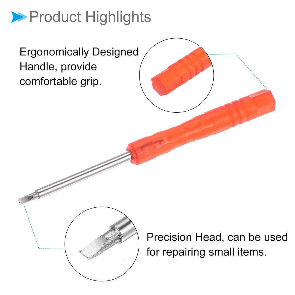 Document Attributes:* Slotted Size: 1.5mm* Shaft Size: 3mm x 35mm / 0.12" x 1.38" (D*L)* Total Length: 85mm / 3.35"What Is Included:* 5 Pieces x Mini Slotted ScrewdriverApplications & Features:--- Suitable for Eyeglasses, watches, laptops, cameras, children's toys, smoke detectors, ventilation, etc.--- The handle is made of TPR and PP material which is non-skid with flexible cap, easy and pretty comfortable to grip in hand and convenient to use for different kinds of repairs--- The precision screwdriver tips are made of good S2 steel, specially hardened with heat treatment which is more precise and sturdy than those CRV bits for long time use.Useful Tips:--- When using, do not use a screwdriver as a pry bar or chisel. 5pcs Tiny Slotted Screwdriver 2mm Flat Head Screw Driver W Non-Slip Red Grip Attributes: * Slotted Size: 1.5mm * Shaft Size: 3mm x 35mm / 0.12" x 1.38" (D*L) * Total Length: 85mm / 3.35" What Is Included: * 5 Pieces x Mini Slotted Screwdriver Applications & Features: --- Suitable for Eyeglasses, watches, laptops, cameras, children's toys, smoke detectors, ventilation, etc. --- The handle is made of TPR and PP material which is non-skid with flexible cap, easy and pretty comfortable to grip in hand and convenient to use for different kinds of repairs --- The precision screwdriver tips are made of good S2 steel, specially hardened with heat treatment which is more precise and sturdy than those CRV bits for long time use. Useful Tips: --- When using, do not use a screwdriver as a pry bar or chisel. Hot Item Payment 1.We accept eBay payment . 2.Payment must be received within 7 business days of auction closing. Shipping 1.We ship to your eBay or Paypal address. Please make sure your eBay and Paypal address is correct before you pay. 2.Items will be shipped within 1-3 business day when we received payment. 3.Delivery time depends on destination and other factors. Description Policy 5pcs Tiny Slotted Screwdriver 2mm Flat Head Screw Driver W Non-Slip Red Grip Attributes: * Slotted Size: 1.5mm * Shaft Size: 3mm x 35mm / 0.12" x 1.38" (D*L) * Total Length: 85mm / 3.35" What Is Included: * 5 Pieces x Mini Slotted Screwdriver Applications & Features: --- Suitable for Eyeglasses, watches, laptops, cameras, children's toys, smoke detectors, ventilation, etc. --- The handle is made of TPR and PP material which is non-skid with flexible cap, easy and pretty comfortable to grip in hand and convenient to use for different kinds of repairs --- The precision screwdriver tips are made of good S2 steel, specially hardened with heat treatment which is more precise and sturdy than those CRV bits for long time use. Useful Tips: --- When using, do not use a screwdriver as a pry bar or chisel. Hot Item Payment 1.We accept eBay payment . 2.Payment must be received within 7 business days of auction closing. Shipping 1.We ship to your eBay or Paypal address. Please make sure your eBay and Paypal address is correct before you pay. 2.Items will be shipped within 1-3 business day when we received payment. 3.Delivery time depends on destination and other factors.