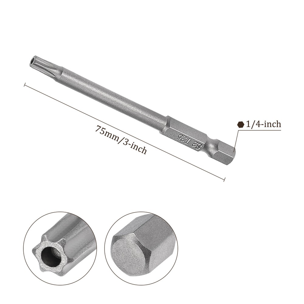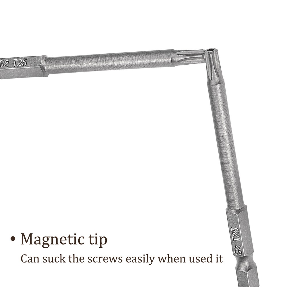 Document APPLICATION- Fit for electric screwdriver, manual screwdriver, power drill and other pneumatic or power tools with 1/4" hex holder. Widely used in cars, trucks, engines, motorcycles, computers, cable boxes and other applications.ABOUT THIS PRODUCT- Made of S2 alloy steel, which is a commonly used material in hardware with high hardness.- Sandblasting surface, corrosion resistance and durability.- Magnetic tip, can suck the screws easily when used it.- The hole in the center of each bit causes it to be tamper resistant, designed to prevent Cam-Out the hex bits clicks onto most standard sockets, screwdrivers, drill/driver kits & Power tools attachments.- Exquisite workmanship, each edge can be accurately locked screws, no damage to the screw, and the screwdriver head.SPECIFICATIONBit Type: T15 Shank: 1/4“ Hex ShankLength: 75mm / 3”Material: S2 Alloy SteelFinish: SandblastingPackage: 5 packs of Tamper Proof Torx Screwdriver BitTAKE NOTICE OF- Do not turn the screws with mismatched size to avoid damage to both the screw and the drill. 5pcs Torx Screwdriver Bit 3 Inch x H1/4 x T25 Magnetic for Power Tool Use APPLICATION - Fit for electric screwdriver, manual screwdriver, power drill and other pneumatic or power tools with 1/4" hex holder. Widely used in cars, trucks, engines, motorcycles, computers, cable boxes and other applications. ABOUT THIS PRODUCT - Made of S2 alloy steel, which is a commonly used material in hardware with high hardness. - Sandblasting surface, corrosion resistance and durability. - Magnetic tip, can suck the screws easily when used it. - The hole in the center of each bit causes it to be tamper resistant, designed to prevent Cam-Out the hex bits clicks onto most standard sockets, screwdrivers, drill/driver kits & Power tools attachments. - Exquisite workmanship, each edge can be accurately locked screws, no damage to the screw, and the screwdriver head. SPECIFICATION Bit Type: T15 Shank: 1/4“ Hex Shank Length: 75mm / 3” Material: S2 Alloy Steel Finish: Sandblasting Package: 5 packs of Tamper Proof Torx Screwdriver Bit TAKE NOTICE OF - Do not turn the screws with mismatched size to avoid damage to both the screw and the drill. Hot Item Payment 1.We accept eBay payment . 2.Payment must be received within 7 business days of auction closing. Shipping 1.We ship to your eBay or Paypal address. Please make sure your eBay and Paypal address is correct before you pay. 2.Items will be shipped within 1-3 business day when we received payment. 3.Delivery time depends on destination and other factors. Description Policy 5pcs Torx Screwdriver Bit 3 Inch x H1/4 x T25 Magnetic for Power Tool Use APPLICATION - Fit for electric screwdriver, manual screwdriver, power drill and other pneumatic or power tools with 1/4" hex holder. Widely used in cars, trucks, engines, motorcycles, computers, cable boxes and other applications. ABOUT THIS PRODUCT - Made of S2 alloy steel, which is a commonly used material in hardware with high hardness. - Sandblasting surface, corrosion resistance and durability. - Magnetic tip, can suck the screws easily when used it. - The hole in the center of each bit causes it to be tamper resistant, designed to prevent Cam-Out the hex bits clicks onto most standard sockets, screwdrivers, drill/driver kits & Power tools attachments. - Exquisite workmanship, each edge can be accurately locked screws, no damage to the screw, and the screwdriver head. SPECIFICATION Bit Type: T15 Shank: 1/4“ Hex Shank Length: 75mm / 3” Material: S2 Alloy Steel Finish: Sandblasting Package: 5 packs of Tamper Proof Torx Screwdriver Bit TAKE NOTICE OF - Do not turn the screws with mismatched size to avoid damage to both the screw and the drill. Hot Item Payment 1.We accept eBay payment . 2.Payment must be received within 7 business days of auction closing. Shipping 1.We ship to your eBay or Paypal address. Please make sure your eBay and Paypal address is correct before you pay. 2.Items will be shipped within 1-3 business day when we received payment. 3.Delivery time depends on destination and other factors.