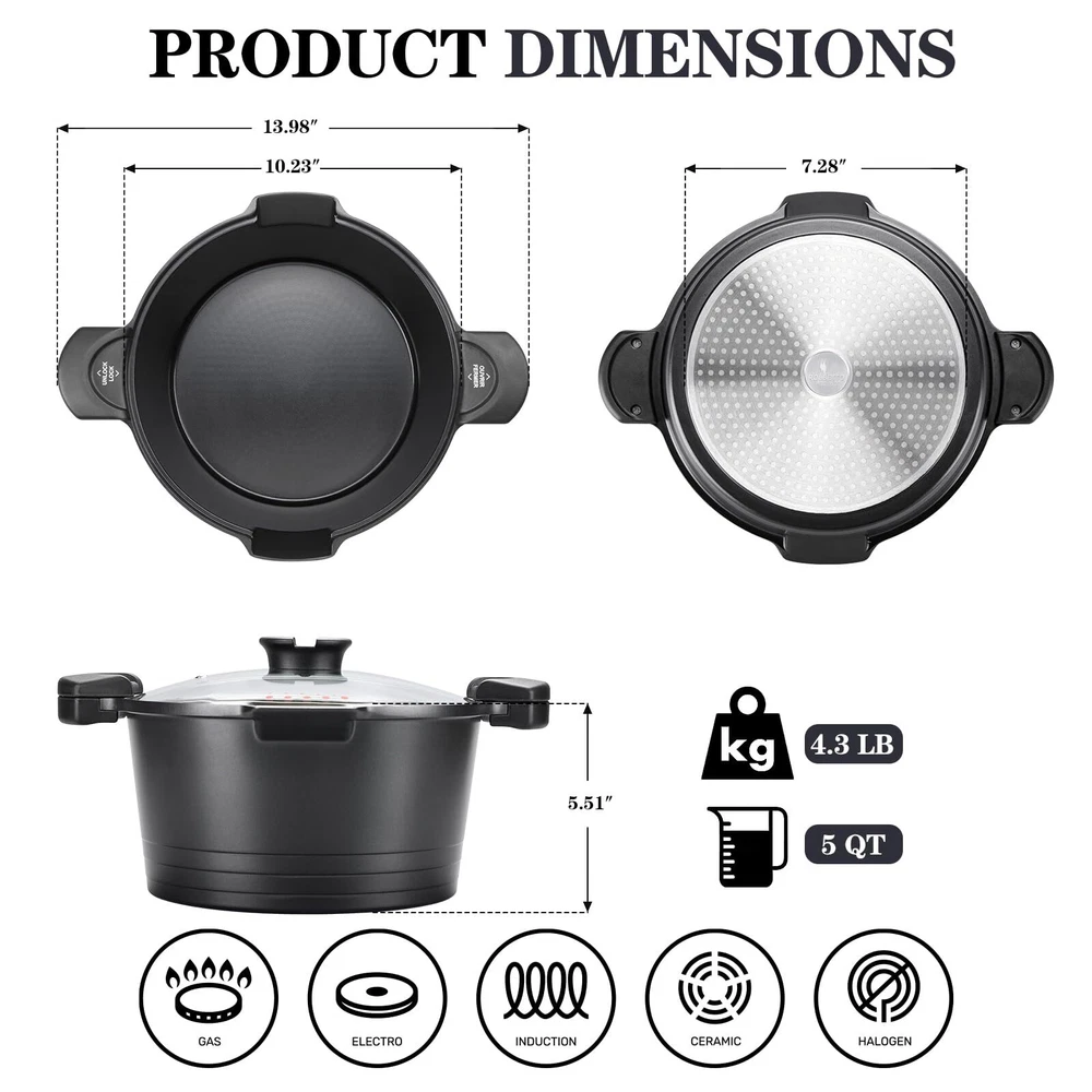 Safe & Healthy: 's pasta pot is made from German ceramic paint, which is guaranteed to be free of PFOA, PFOS, lead and cadmium for an environmentally friendly and healthy cooking experience. Multi-Purpose Cooking: Except boiling pasta, the Multipurpose Pot accommodates a diverse range of cooking tasks, from simmering soups to steaming vegetables and braising meats. Easy Lock Handles with Pour Souts: Strainer Lid comes in 2 straining sizes and simply turns the handle to drain out the water. No more colander! Easy to Clean: The ceramic-coated nonstick surface is easy to clean, which means less scrubbing and soaking. And dishwasher safe, saving you time and energy in the kitchen. Bakelite Handle: The Bakelite handle is ergonomically designed, staying cool throughout the cooking process, and providing a comfortable, secure grip. Tempered Glass Lid: The glass lid allows you to monitor the cooking progress without having to lift the lid, which helps retain heat and moisture, thereby improving cooking efficiency. to All Stovetops: Our spaghetti pot is with all stovetops including gas, , induction and ceramic cookers, etc. Kitchen Metal Utensil Safety: Our coatings come from GREBLON in Germany and can withstand metal utensils, spatulas, spoons, stirrers and even mixers. Ceramic coating is applied to both the inside & outside of the pot.