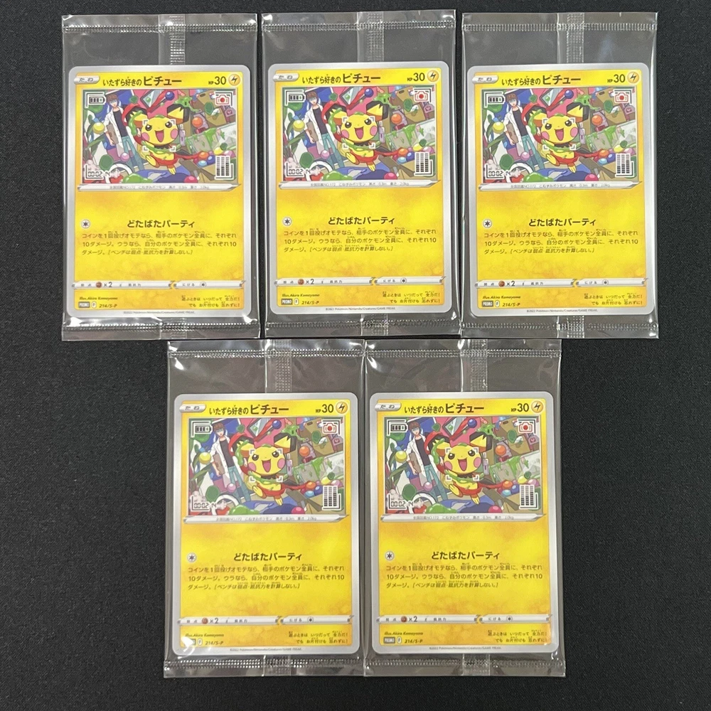 ◆PRODUCTS◆ 5set SEALED Mischievous Pichu Promo 214/S-P Hajime Syacho Pokemon Card Japanese ◆PAYMENTS◆ We accept PayPal and all major Debit / Credit Cards. We can only ship your item after your payment clears. We ship within 48hours of payment. ◆CHECKOUT◆ Please check your address before paying because we can only ship to addresses that are entered before placing the order. We cannot change an address after the order has already been placed. ◆SHIPPING◆ Packages:Box or envelope and Bubble wrap Packages usually leave our warehouse within 48 hours of payment. Weekend orders will ship on Monday or Tuesday. We provide valid Tracking Numbers for all orders. We can ship this item together with other items you purchase. In this case, we can offer a discounted shipping fee. Please feel free to contact us for more details. ◆CUSTOMER SERVICE◆ If you have any questions or issues, we are at your service. You can email us anytime through eBay messages. ◆Customs duty◆ Import duties, taxes, and charges are not included in the item price or shipping cost. These charges are the buyer's responsibility. Please check with your country's customs office to determine what these additional costs will be prior to bidding or buying. We will reply to your question or invoice within 3 days. We can't not reply gifts or unreasonable requests such as declared amount.