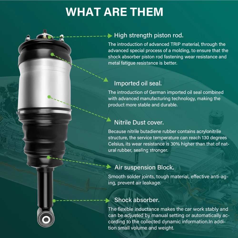*Compatibility Chart 1, You can distinguish specific model of an automobile by VIN(Vehicle Identification Number). 2, VIN(Vehicle Identification Number) consists of total 17 English letters and arabic digits. 3, VIN does not include the letters I (i), O (o), and Q (q) (to avoid confusion with numerals 1 and 0). Range Rover Sport Excludes VDS Model With Electrical Plug on Mounting Base 2010-2014 5x Air Suspension Struts + Compressor Fits Range Rover Sport, Land Rover LR4 LR3 *Compatibility Chart 1, You can distinguish specific model of an automobile by VIN(Vehicle Identification Number). 2, VIN(Vehicle Identification Number) consists of total 17 English letters and arabic digits. 3, VIN does not include the letters I (i), O (o), and Q (q) (to avoid confusion with numerals 1 and 0). Range Rover Sport Excludes VDS Model With Electrical Plug on Mounting Base 2010-2014 GT Limited Edition 3 Sport Utility 4-Door 5.0L 2012 GT Limited Edition Sport Utility 4-Door 5.0L 2011 2013 HSE Lux Sport Utility 4-Door 5.0L 2012-2013 HSE Sport Utility 4-Door 4.4L 2006-2009 HSE Sport Utility 4-Door 5.0L 2010-2013 LE Sport Utility 4-Door 4.2L 2008 Supercharged Sport Utility 4-Door 4.2L 2006-2009 Land Rover LR4 Base Sport Utility 4-Door 3.0L 2014-2016 Base Sport Utility 4-Door 5.0L 2011-2013 HSE Lux Sport Utility 4-Door 3.0L 2014-2016 HSE Lux Sport Utility 4-Door 5.0L 2012-2013 HSE Sport Utility 4-Door 3.0L 2014-2016 HSE Sport Utility 4-Door 5.0L 2010-2013 SE Sport Utility 4-Door 5.0L 2010-2013 V8 Sport Utility 4-Door 5.0L 2010 Land Rover LR3 Base Sport Utility 4-Door 4.0L 2006 HSE Lux Sport Utility 4-Door 4.4L 2009 HSE Sport Utility 4-Door 4.4L 2005-2009 SE Sport Utility 4-Door 4.0L 2005-2009 SE Sport Utility 4-Door 4.4L 2005-2009 *Air Suspension Structure: 1 Front Rh Air Spring Damper Module 2 Front Rh Height Sensor 3 Air Suspension Control Module 4 Air Suspension Control Switch 5 Rear Rh Height Sensor 6 Rear Rh Air Spring Damper Module 7 Air Supply Unit Silencer 8 Rear Lh Air Spring Damper Module 9 Air Fitter 10 Rear Valve Block 11 Rear Lh Height Sensor 12 Upper Acoustic Cover 13 Lower Acoustic Cover 14 Air Supply Unit 15 Reservoir Valve Block 16 Air Reservoir 17 Front Lh Height Sensor 18 Front Lh Air Spring Damper Module 19 Front Valve Wock * Generation & Evolution: Land Rover Discovery First generation (Project Jay; 1989-1998) Second generation (LR2/L318; 1998-2004) Third generation (LR3/L319; 2004-2009) Fourth generation (LR4/L319; 2009-2016) Fifth generation (L462; 2017-present) Range Rover Sport First generation (L320; 2005-2013) Second generation (L494; 2013-present ) SVR (2015 Pre-Facelift) SVR (2018 Facelift) *Platform Drive Layout : Front Engine-Four Wheel Drive Layout *Air Suspension System: The Discovery LR3 LR4 own fully independent air suspension with cross-linking when off-road and the twin-range transfer gearbox with an electronic infinitely variable locking centre differential. As before, a similar locking rear differential is available. The Terrain Response system remains but with two new features – the 'Sand' mode incorporates a new traction control mode to prevent loss of traction when starting off and stopping in soft sand, and the 'Rock Crawl' mode gains a feature that applies gentle brake pressure at low (less than walking pace) speeds to improve grip and stability on slick rock. Range Rover Sport air suspension system gives the driver the option of three ride height settings including a standard ride height of 172 mm (6.8 in), an off-road height of 227 mm (8.9 in) and a lowered access mode. There is also an extra height available which is accessed by holding the respective button for when the off-road ride height is not enough. When the vehicle bellies out, its control system will sense weight being lessened on the air springs and the ride height is automatically raised to the suspensions greatest articulation. The cross-link aspect of the suspension system, which debuted on the L322 Range Rover in 2002, results in better off-road performance by electronically operating valves in pneumatic lines which link adjacent air springs. In the event of a wheel on one side being raised when travelling off-road, the pneumatic valves are opened and the adjacent wheel is forced down, simulating the action of a live axle setup. *Removal Guideline: Caution: Damage to the vehicle and air suspension system can be incurred if work is carried out in a manner other than specified in the instructions or in a different sequence. 1.To avoid the possibility of short circuits while working with electric components consult your owner's manual on how to disconnect your battery. 2.Consult your vehicle owner's manual, service manual, or car dealer for the correct jacking points on your vehicle and for additional care, safety and maintenance instructions. Under no circumstances should any work be completed underneath the vehicle if it is not adequately supported, as serious injuries and death can occur. 1.Remove rear wheel to expose the rear air strut.(picture 1) 2.Loosen and remove the lower mount nut. Support the air strut and remove the lower mount bolt.(pictures 2,3) 3.Loosen and remove the three(3)top mounting nuts.(picture 4) 4.Carefully lower the air strut to gain access to the air line. Unthread the air fitting.(picture 5) 5.Remove the air strut from the vehicle.(picture 6) 6.Remove the air line fitting from the air hose and discard. To remove the air line fitting,remove the collet and the remaining fitting will slide off of air hose.(picture 7) 7.Removal complete. *Installation Guideline: 1.Place new air strut onto vehicle, oriented in the same position as strut previously removed. 2.Insert the air line into the voss fitting, making sure it is firmly seated and will not pull back out.(picture 8) 3.Install and tighten the three(3)top mounting nuts to manufacturer's specification.(picture 9) 4.Support the air strut and install the lower mount bolt. Re-install and tighten the lower mount nut to manufacturer'