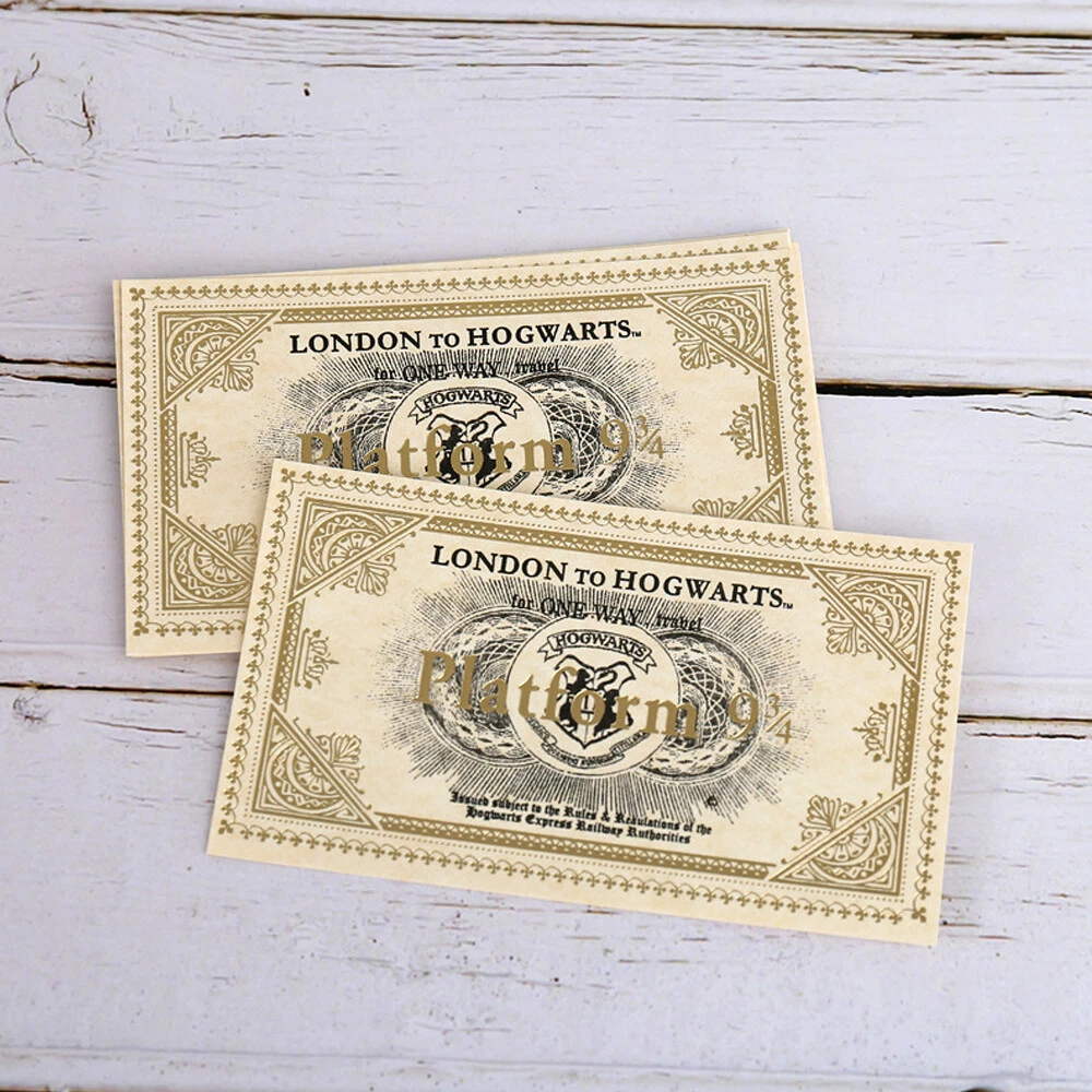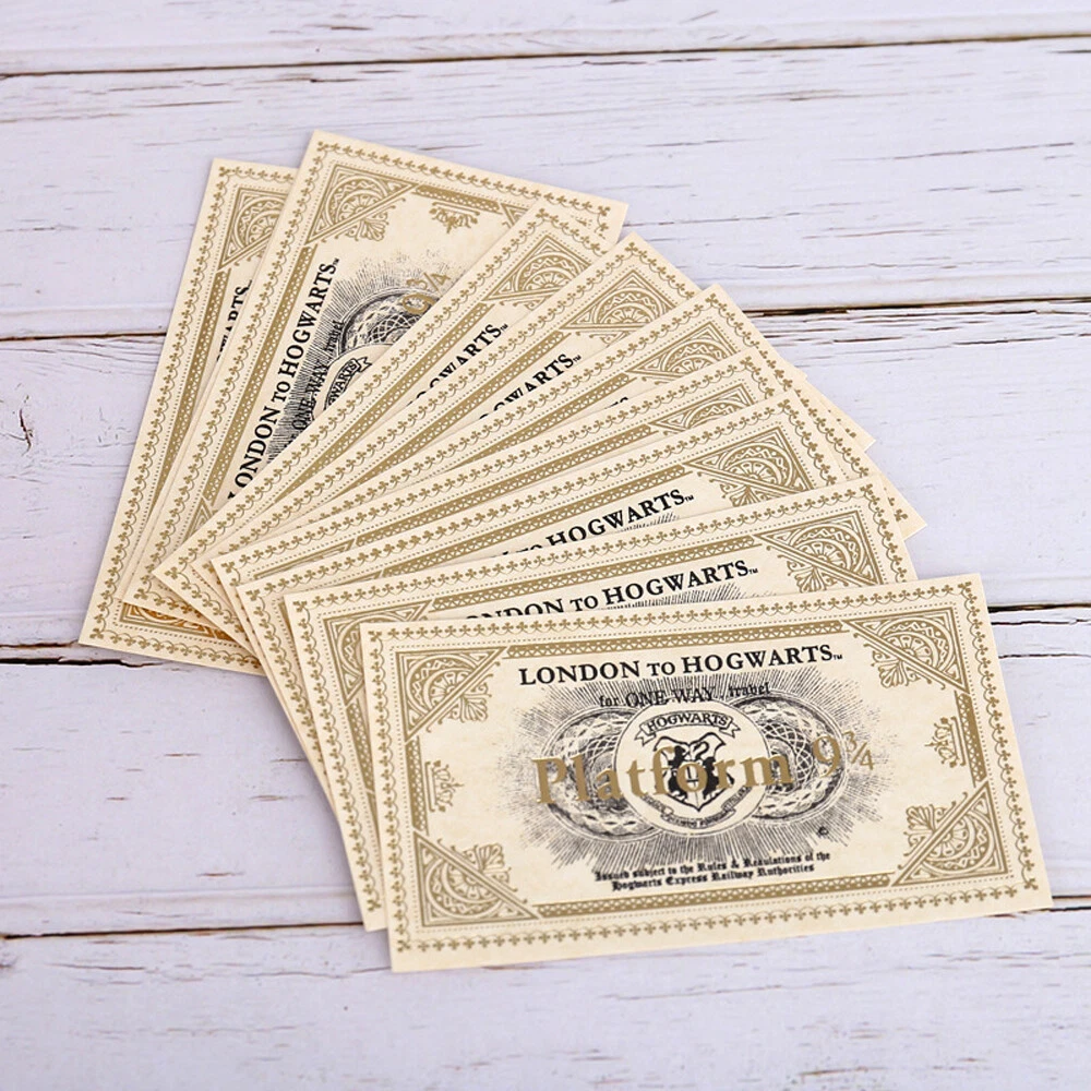 Similar Items Description Descriptions -Beautifully detailed Hogwarts train tickets printed on vintage card with gold foil detailing. -These are perfect as a gift for any Harry Potter movie/book fanatic. They look great framed and displayed in the home. They also make wonderful props for Harry Potter themed parties. Feature -100% Brand New & High Quality -London to Hogwarts Platform 9 3/4 Train Ticket -Size:11.3x6.4cm -Ideal Gifts for HP Fans Package Included 5x HP Tickets Note -Pls allow 1-3cm error due to manual measurement. -Pls allow slightly colour difference due to monitoer different. Detail Image Payment Payment Types: We accept PayPal only! PayPal is the only online payment method we accept. Please make sure you have a valid/confirmed PayPal account prior bidding. All PayPal Payments must be Confirmed ( Shipping and billing addresses must match ) Payment must be made within 48hrs of the auction end time. Non-Paying bidders will be reported. Shipping 1.We ship to your eBay address. Please make sure your eBay address is correct before you pay. 2.Delivery time depends on destination and other factors;it will arrive in 7-20 bussiness days to US,if it didnt arrive in time,please contact us, we will help you asap. Return All the items will be tested before sending out, if you received a broken or defective item, please report to us with "eBay Order Number & Purchase Date" immediately. After getting the returned item, we will refund the customer at the item's price ( excluding the shipping costs to and fro ). Delivery fees will not be refunded. Please understand that shipping and handling fee is not refundable. Buyer is responsible for shipping costs incurred shipping products back. Contact Us If there is any question about our products, please feel free to contact us by ebay message instead of email, we will reply all the ebay messages within 24 hours. (Monday to Friday:9am-6pm)