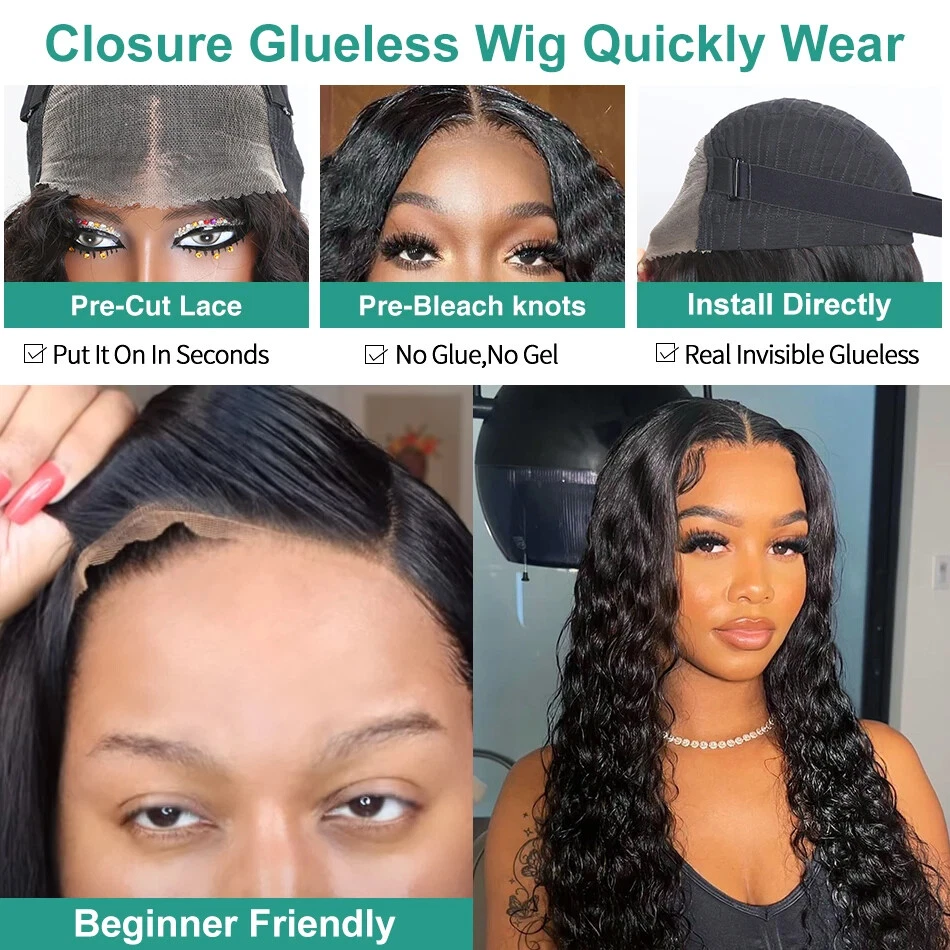 $ 111.2Straight Glueless 6x4 Lace Front Human Hair Wig Pre Plucked Wear and Go