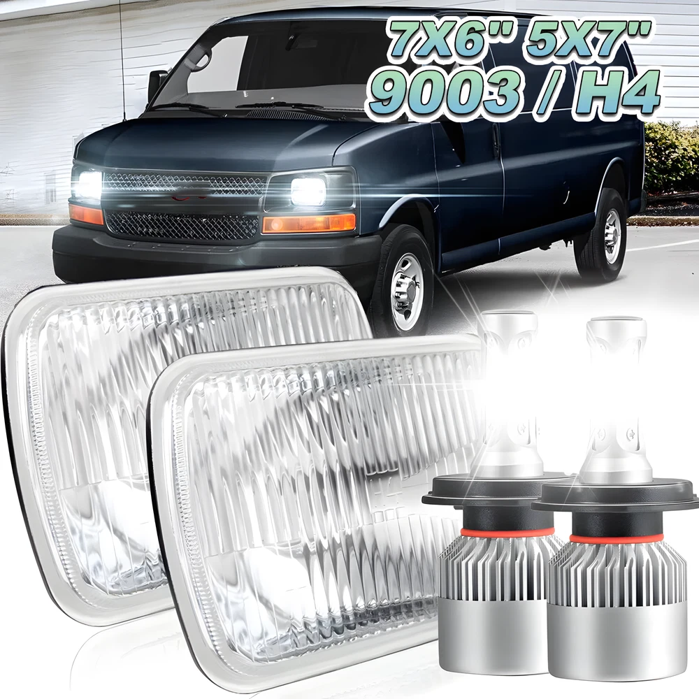 5x7 7X6" LED Headlight Hi/Lo Beam DRL For Chevy Express Cargo Van 1500 2500 3500