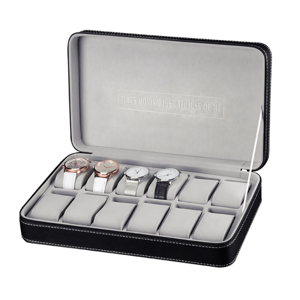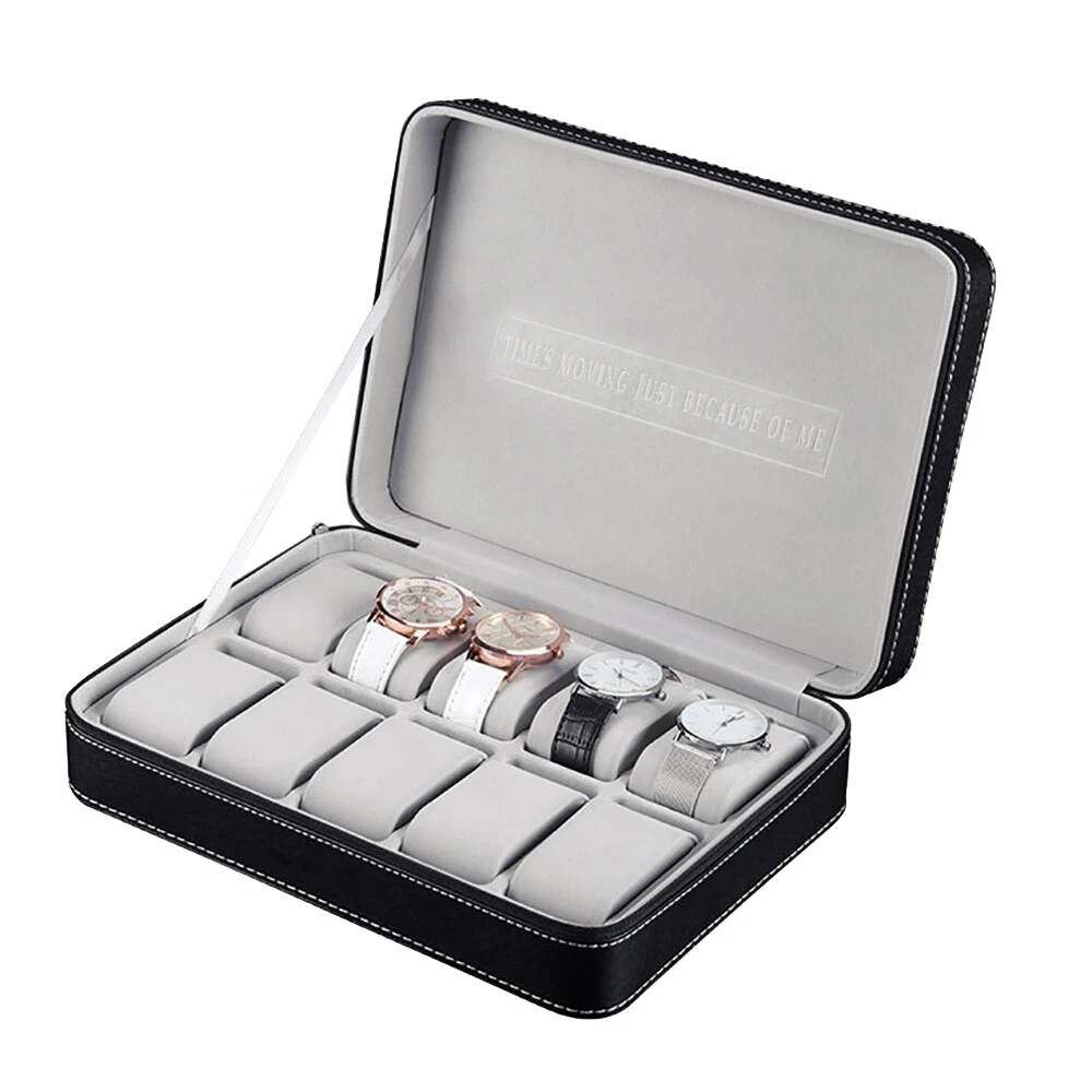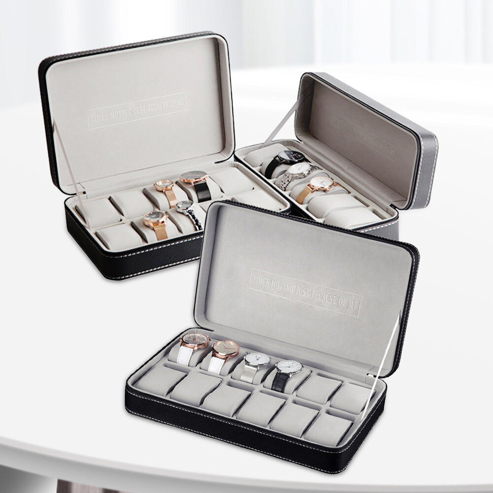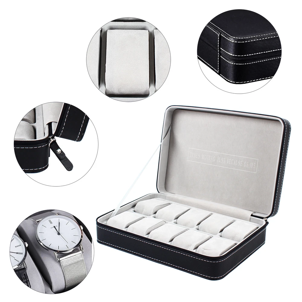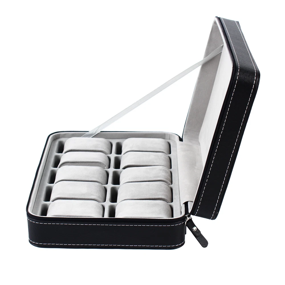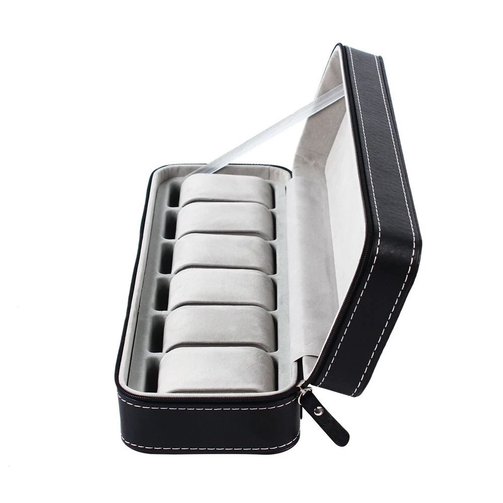 6 10 12 Slot Black Watch Box with Zipper Jewelry Storage Case