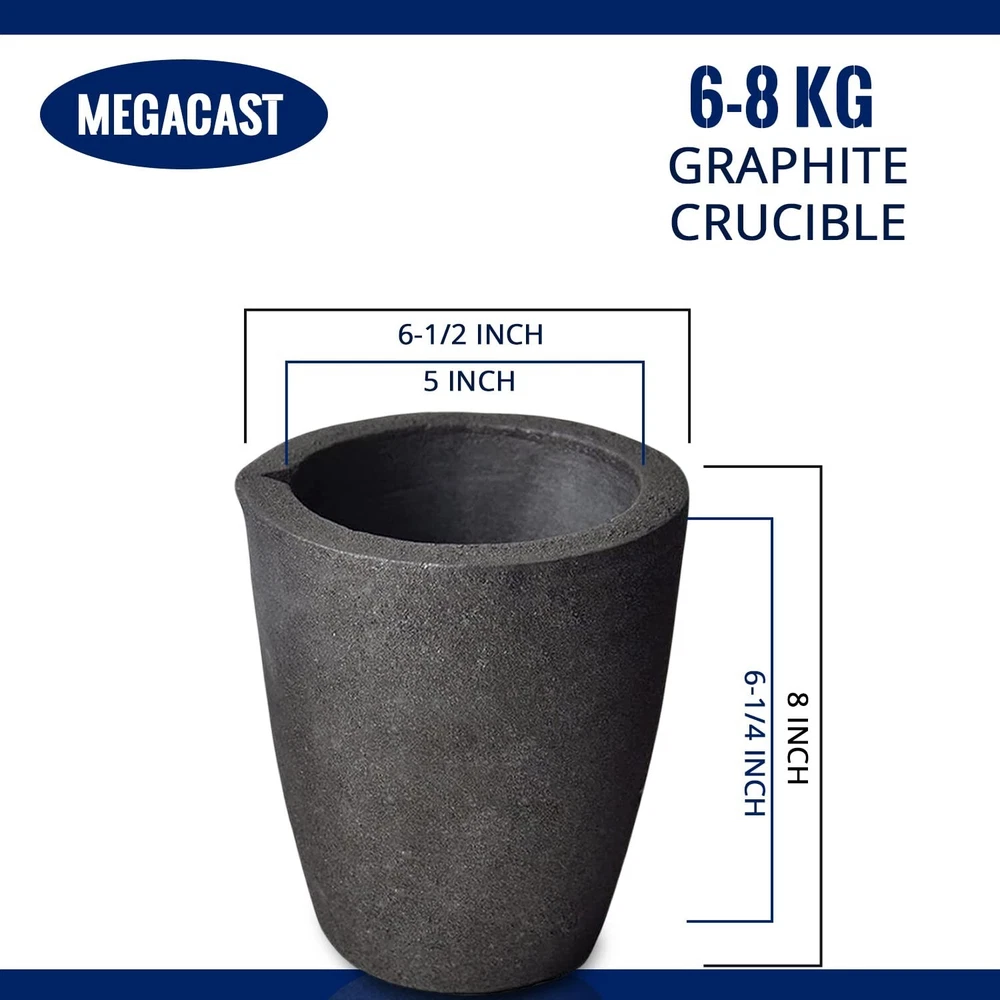 #6 12KG MegaCast, Foundry Clay Graphite Crucibles Black Cup Furnace Torch Melting Casting Refining Gold Silver Copper Brass Aluminum Product Details Brand: MegaCast Age Range (Description): Adult Material: Clay Item Weight: 2 Pounds Number of Items: 1 Included Components: clay Item dimensions L x W x H: 7 x 7 x 9.5 inches UPC Brand: MegaCast Age Range (Description): Adult Material: Clay Item Weight: 2 Pounds Number of Items: 1 Included Components: clay Item dimensions L x W x H: 7 x 7 x 9.5 inches UPC: 039294861813 Product Dimensions: 7 x 7 x 9.5 inches Item Weight: 2 pounds Manufacturer: MegaCast Country of Origin: India Item model number: 222-A36 Is Discontinued By Manufacturer: No Date First Available: August 17, 2017 Designed for Melting Gold, Silver, Copper, Brass, Aluminum and More! Outside Dimensions - 6.5" Dia. x 8" Length - Inside Dimensions - 5.5" Dia. x 7.25" Depth Torch Application - Designed to use with Fuel/Gas and Medium/ High Heat Induction Furnaces and Kilns They can be used with our propane melting furnaces as well as a standard torch method. Not for use in a Coal Foundry Clay Graphite Foundry Crucible, #6 12kg MegaCast Graphite Foundry Crucibles are made from a combination of graphite and clay, and are recommended for melting your precious, or non-precious metals and can handle large batches of material. Their thick inner walls can handle direct heat and open flame foundries. They can be used with our propane melting furnaces as well as a standard torch method. Rated to withstand temperatures up to1560°F - 2912°F - (850°C - 1600°C)..Not for use in a Coal Foundry,.Outside Dimensions - 6.5" Dia. x 8" Length - Inside Dimensions - 5.5" Dia. x 7.25" Depth Heavy Duty Crucible Tongs Available in our Amazon Store.