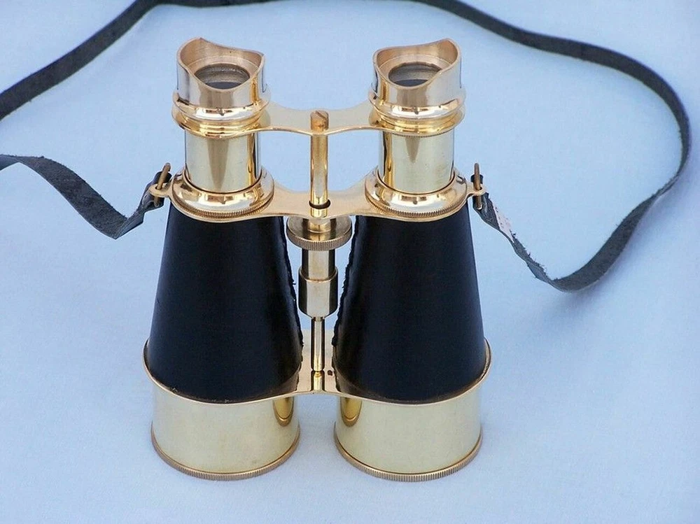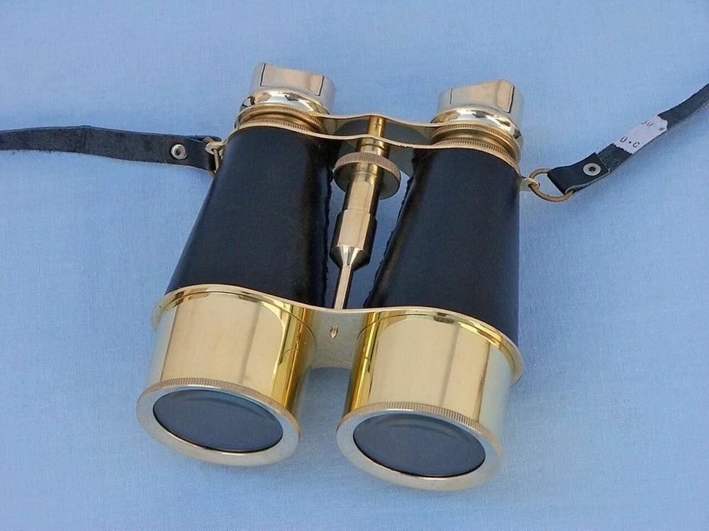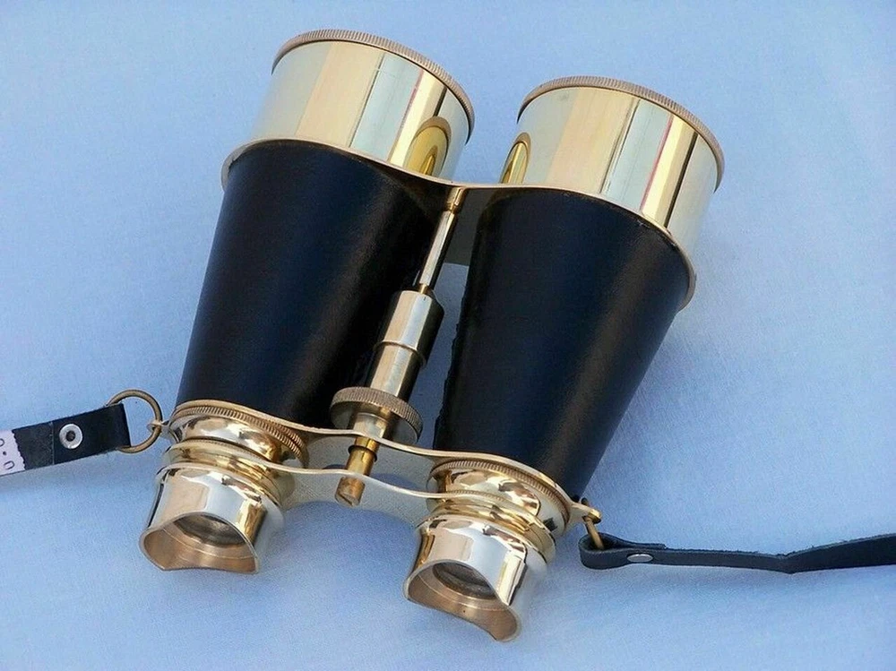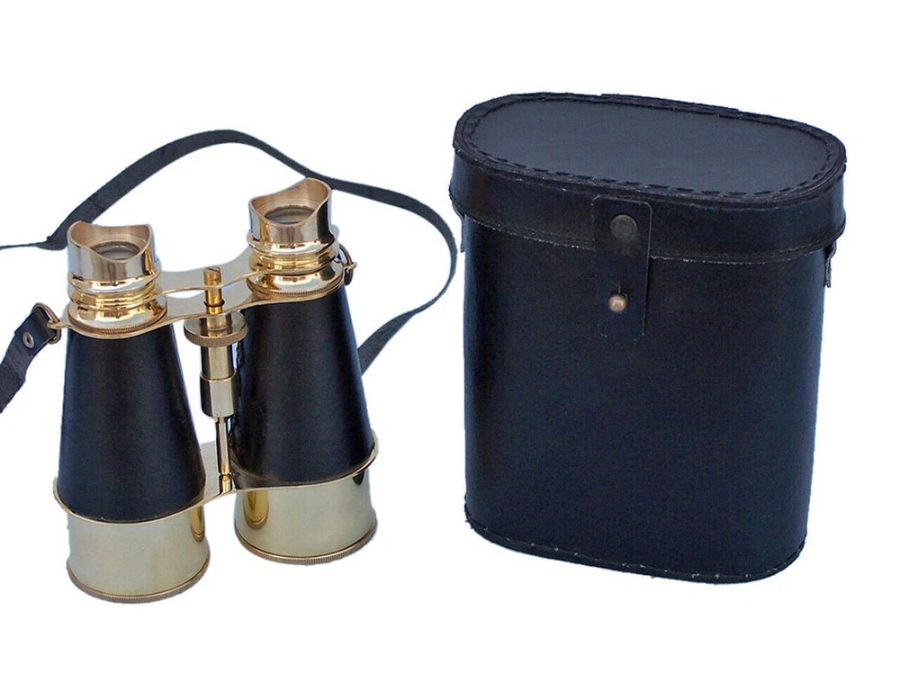6 nches Admiral's Solid Brass Binoculars with Leather Case & Neck Strap ; Binocular's for Adult's & Kids This Wonderful 6 Inches Polished Shiny Brass N autical Binoculars - "Black Leather Wrapped" with Beautiful Black Leather Case are of Shiny Polished Brass Metal and make you feel like a true Navigator when used. Focusing is accomplished using a knurled focusing knob on middle of the binoculars near eye-piece. The B inoculars have a leather strap and comes with a handmade leather case of Black Color. Functional and Decorative N autical Decor Item. 10x magnification. Easy Focusing with Knurled Knob. Made with High Quality Material - Brass ,High Quality Glass Lenses (Not Plastic One) & Leather . Leather Strap and H andmade leather case included for Safe Keeping. Excellent Item to Gift Your Loved Ones !!! We Shipped our Items after Inspecting Quality of Every Item to Our Lovely Buyers & Customers. Business Customers are Most Welcome at Lowest & Affordable Prices