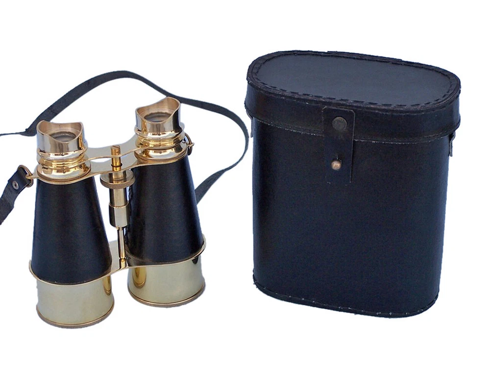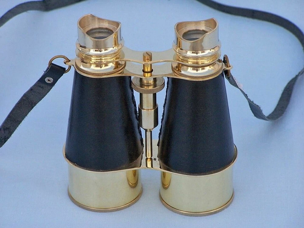 SIFAAT WORLD 6 Inches Admiral's Solid Brass Binoculars with Leather Case & Neck Strap ; Binocular's for Adult's & Kids . This Wonderful Sifaat World 6 Inches Polished Shiny Brass N autical Binoculars - "Black Leather Wrapped" with Beautiful Black Leather Case are of Shiny Polished Brass Metal and make you feel like a true Navigator when used. Focusing is accomplished using a knurled focusing knob on middle of the binoculars near eye-piece. The B inoculars have a leather strap and comes with a handmade leather case of Black Color. Functional and Decorative N autical Decor Item. 10x magnification. Easy Focusing with Knurled Knob. Made with High Quality Material - Brass ,High Quality Glass Lenses (Not Plastic One) & Leather . Leather Strap and H andmade leather case included for Safe Keeping. Excellent Item to Gift Your Loved Ones !!! We Shipped our Items after Inspecting Quality of Every Item to Our Lovely Buyers & Customers. Business Customers are Most Welcome at Lowest & Affordable Prices . Sold & Manufactured By SIFAAT WORLD from INDIA. Shipped Within 2 Days After Clearing Payments.