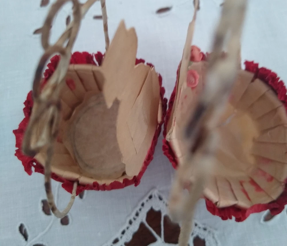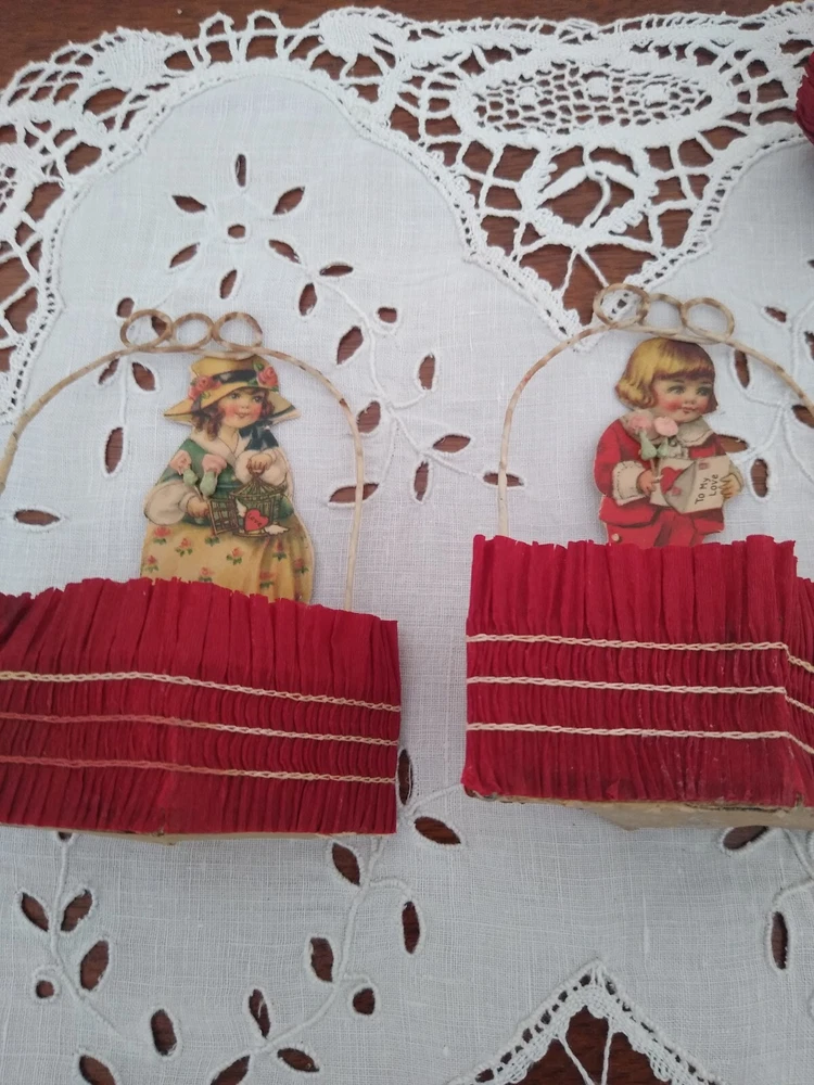 6 Antique Valentine's Day Crepe Paper Party Favors Candy/Nut Cups 1920 Children