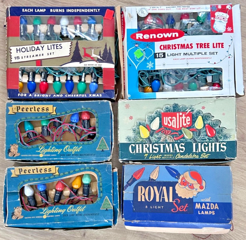 6 Box Lot Vintage 1950-60s Christmas Holiday Lights~Peerless~Royal Mazda~USAlite