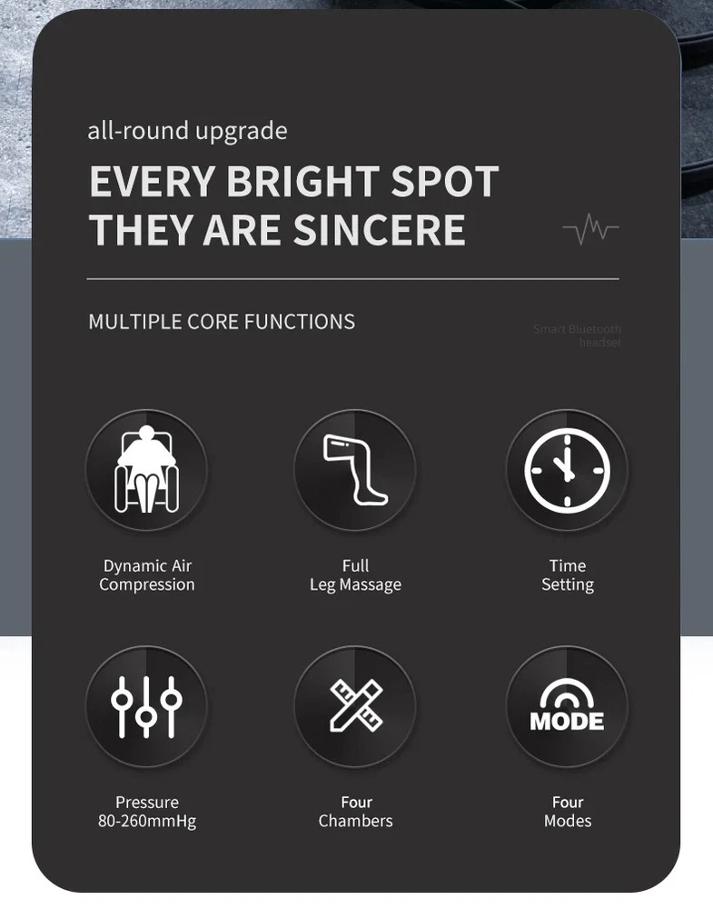 Details Images 1. ODM and OEM service available. 2. Factory direct price , competitive for distributor. 3. Professional pressure therapy apparatus supplier. 4. Quality gurantee: All Items Are Returnable and Exchangeable. 5. The top TPU materail for sleeves. 6. Pump silent operation with extreme low noise. 7. Portable and easy for home use, Mini Massager. 8. Elegant touch panel easy operation and direct view. 9. Factory ISO13485 certified, TUV CE approved. Our Advantages