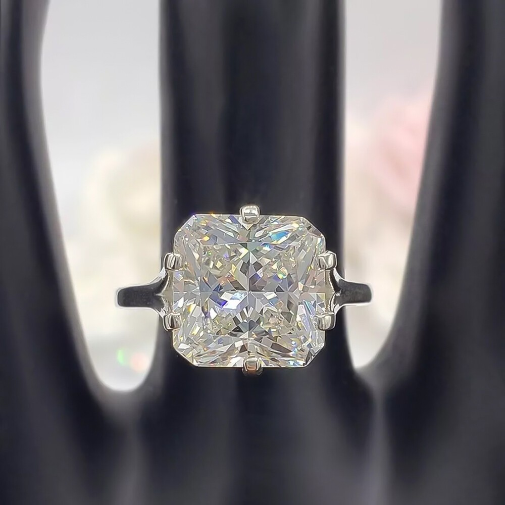 $ 170.547.80Ct Certified Emerald Cut Blue Diamond Solitaire Ring 925 Silver Ring