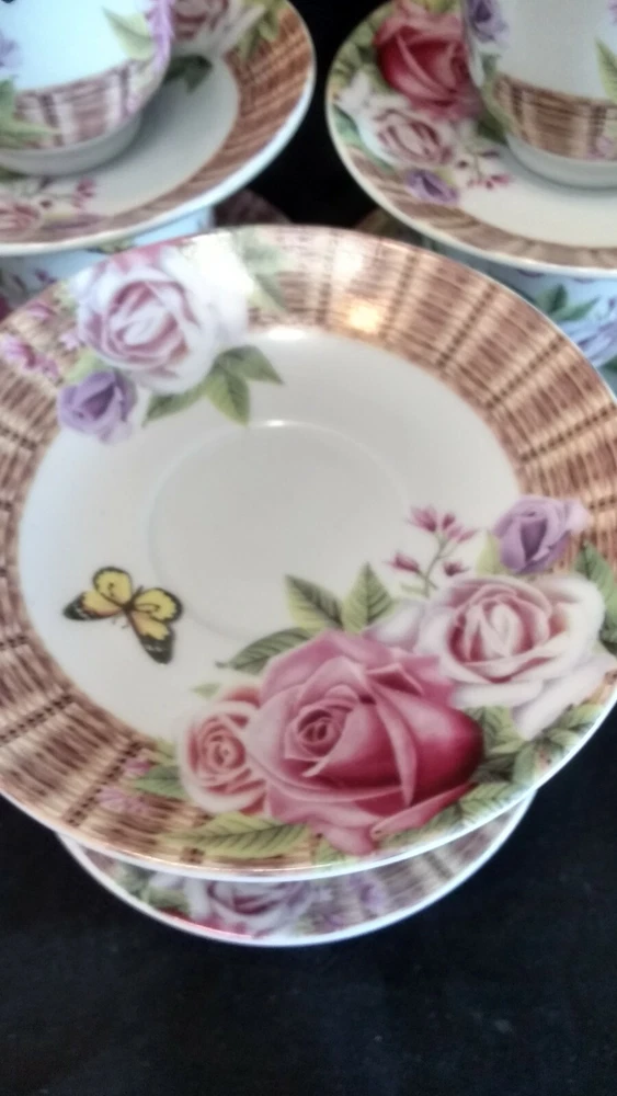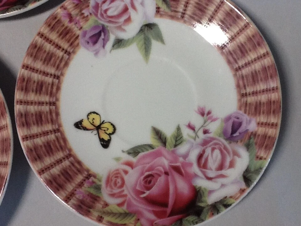 Capacity: 7 oz Service For: 6 Glassware Type: Cup & Saucer Modified Item: No Beverage Type: Hot Country/Region of Manufacture: China Color: RED PINK WHITE Type: Saucer Custom Bundle: No Shape: Round Occasion: All Occasions UPC: Does not apply Pattern: Floral Style: floral Personalized: No MPN: na Features: Dishwasher Safe, Microwave Safe Material: Porcelain Brand: Unbranded Non-Domestic Product: No Number of Items in Set: 12 Set Includes: Cup, Saucer Design: Round gtin13: Does not apply Theme: Butterfly