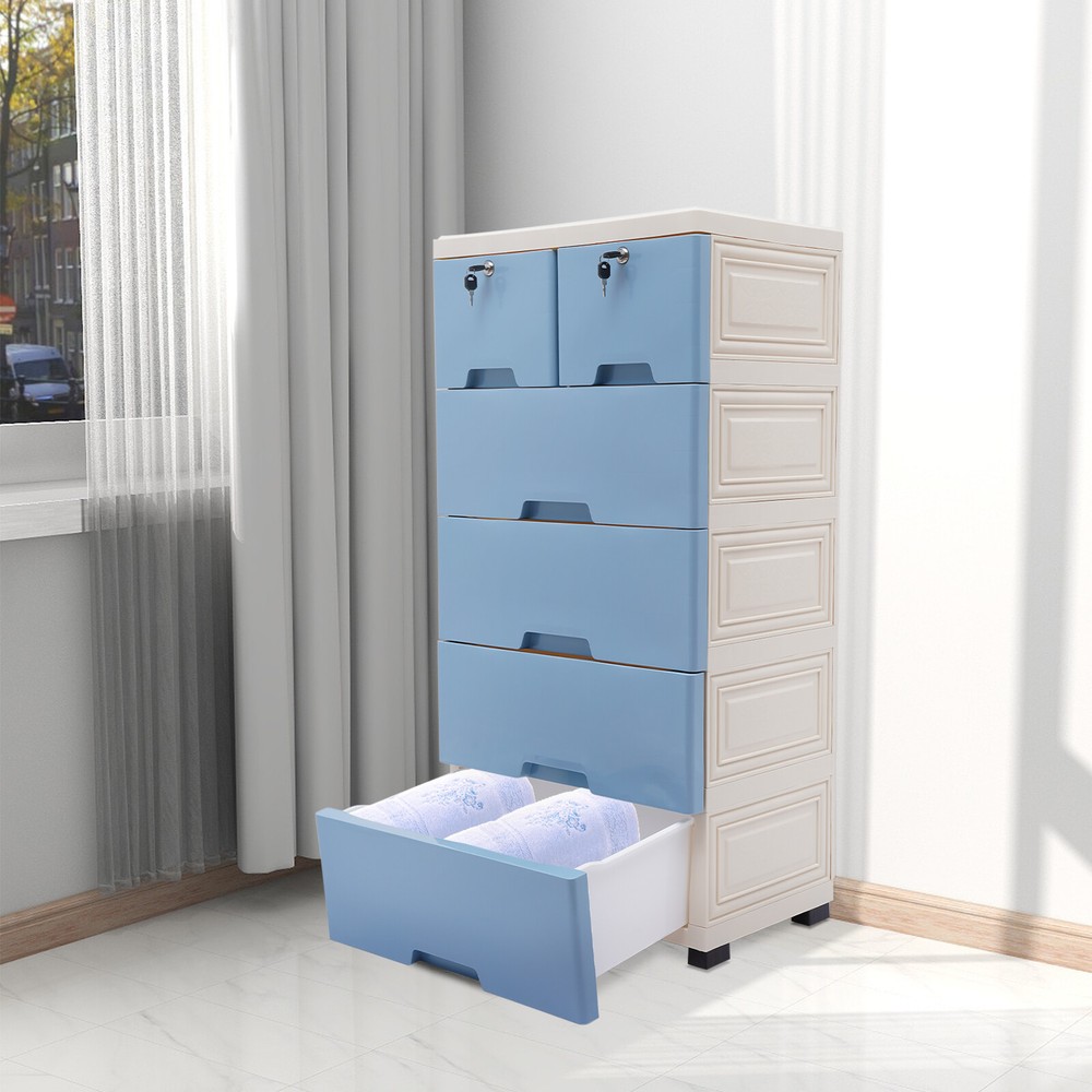 6 Drawers Dresser Plastic Storage Cabinet W/ Lock Closet Organizer 4 wheels Blue