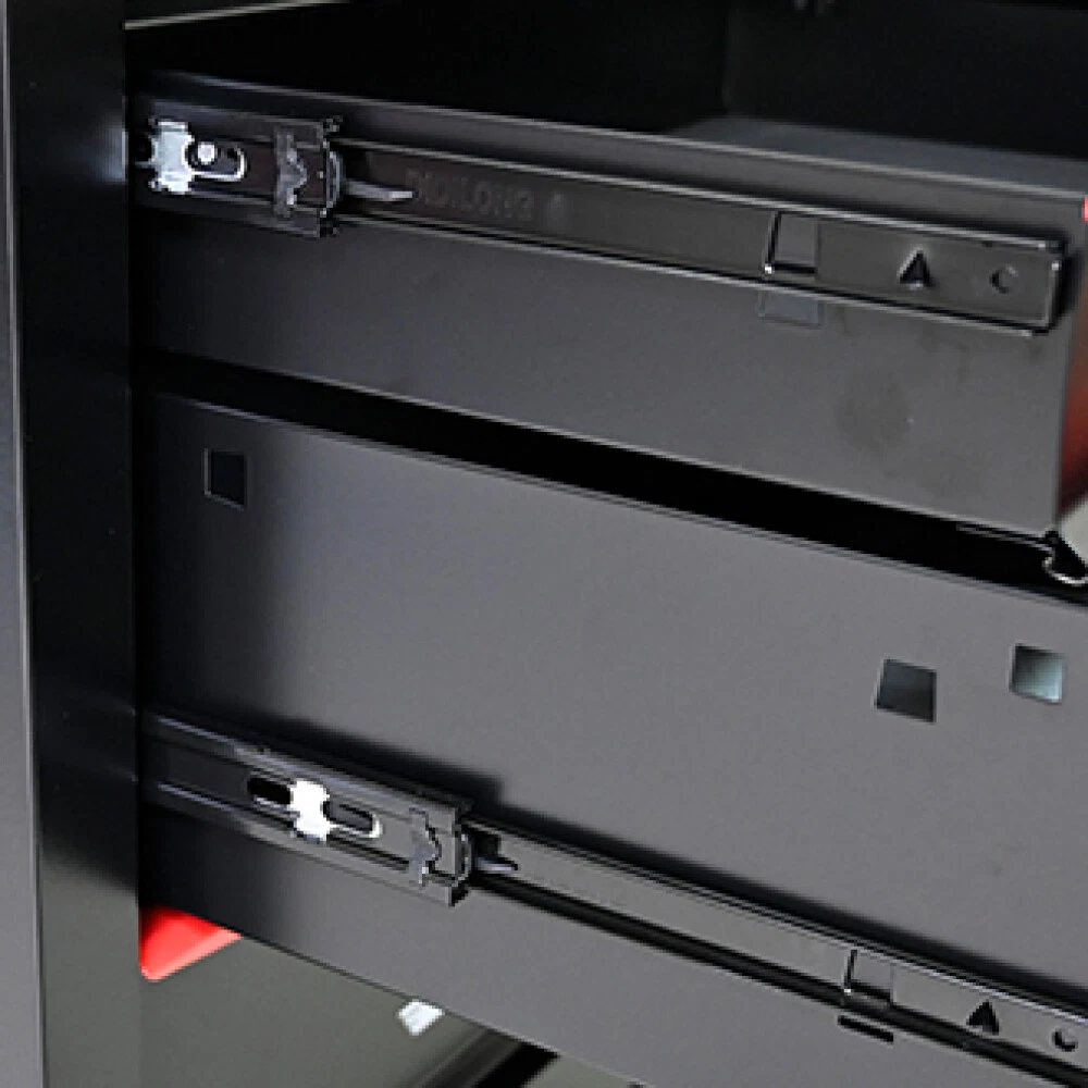 6 drawers with wheels multi-purpose tool car, black and blue color with more durable The tool box is also lockable and can be used as a removable, attachable and mobile case The opening and closing of the drawers of the tool cabinet is very gentle thanks to the ball-bearing drawers The robust and powder-coated steel construction is used for high wear resistance. This assembly trolley has 4 steering wheels, 2 of which with parking brakes, so you can move the trolley freely in the garage, but also stop in one place This is a set of cabinets, can use a round hook at the bottom of the table to connect another tool car, thus forming a combination.Description Smooth steel countertops are cleaner and more durable. 4 Universal Wheels With swivel casters could maneuver easily around work area. The wheels have locking mechanisms to prevent the tool cabinet from moving around on its own while in use. One Side with Pull Handle This product comes with a handle on one side, which not only helps to push and pull it more, but allows you to move it more freely Drawer Slides 15KG loading capacity ball bearing slide With Key Locking Protecting the tools and items stored inside Product Information Proudct Name 6 Drawers Workshop Tool Trolley Material Cold Rolled Steel Surface Finish Powder Coating Powder Coating 4" Casters (2PCS with brake and 2PCS without brake) Product Size (with wheels and countertops) 22.28*13.58*30.71INCH Product Size (without wheels and countertops) 20.63*12.99*25.16INCH Package Size 23.31*15.35*28.66INCH Color Black+Red Net Weight 54.90LBS Gross Weight 59.30LBS On Feb 3, 2025 at 18:57:44 PST, seller added the following information: