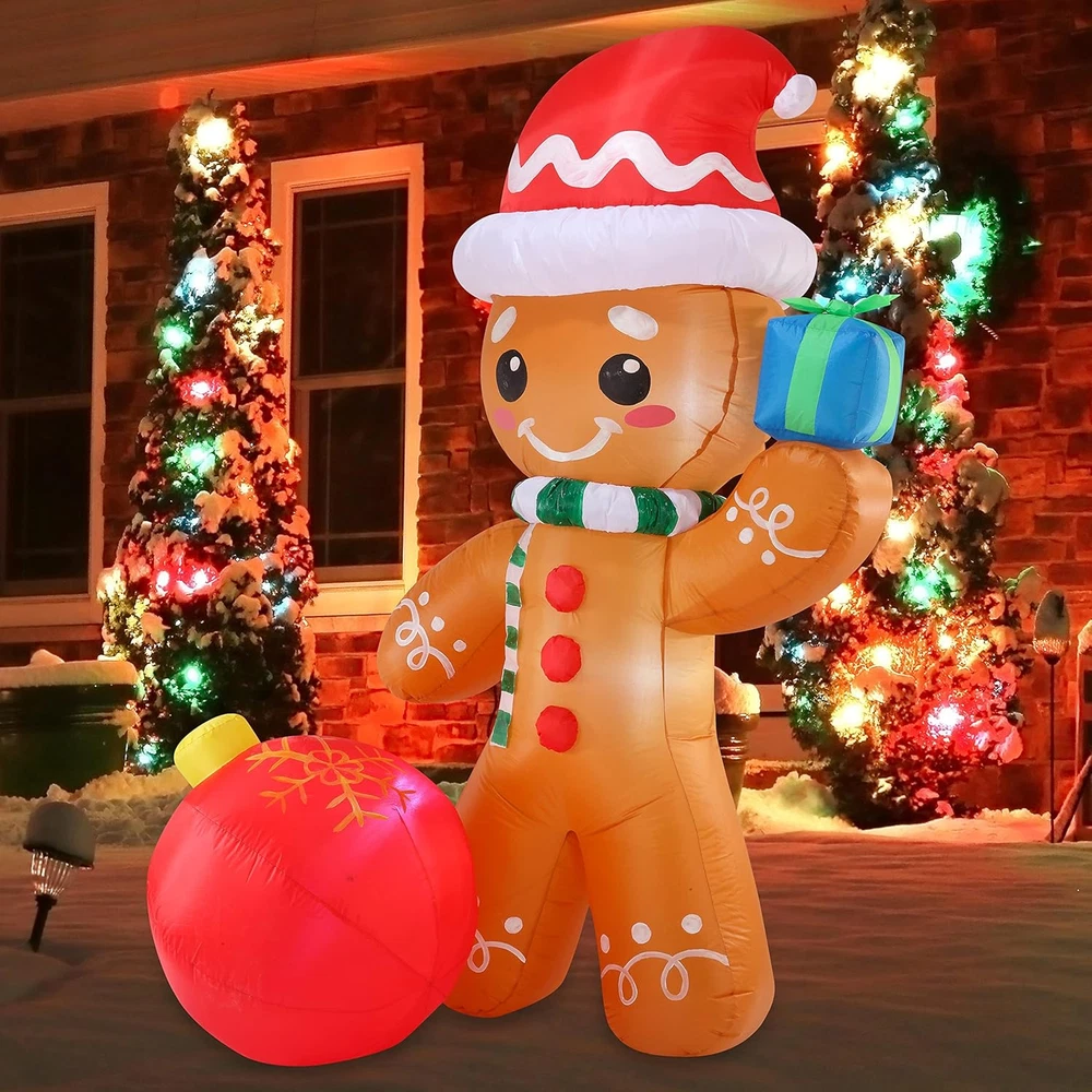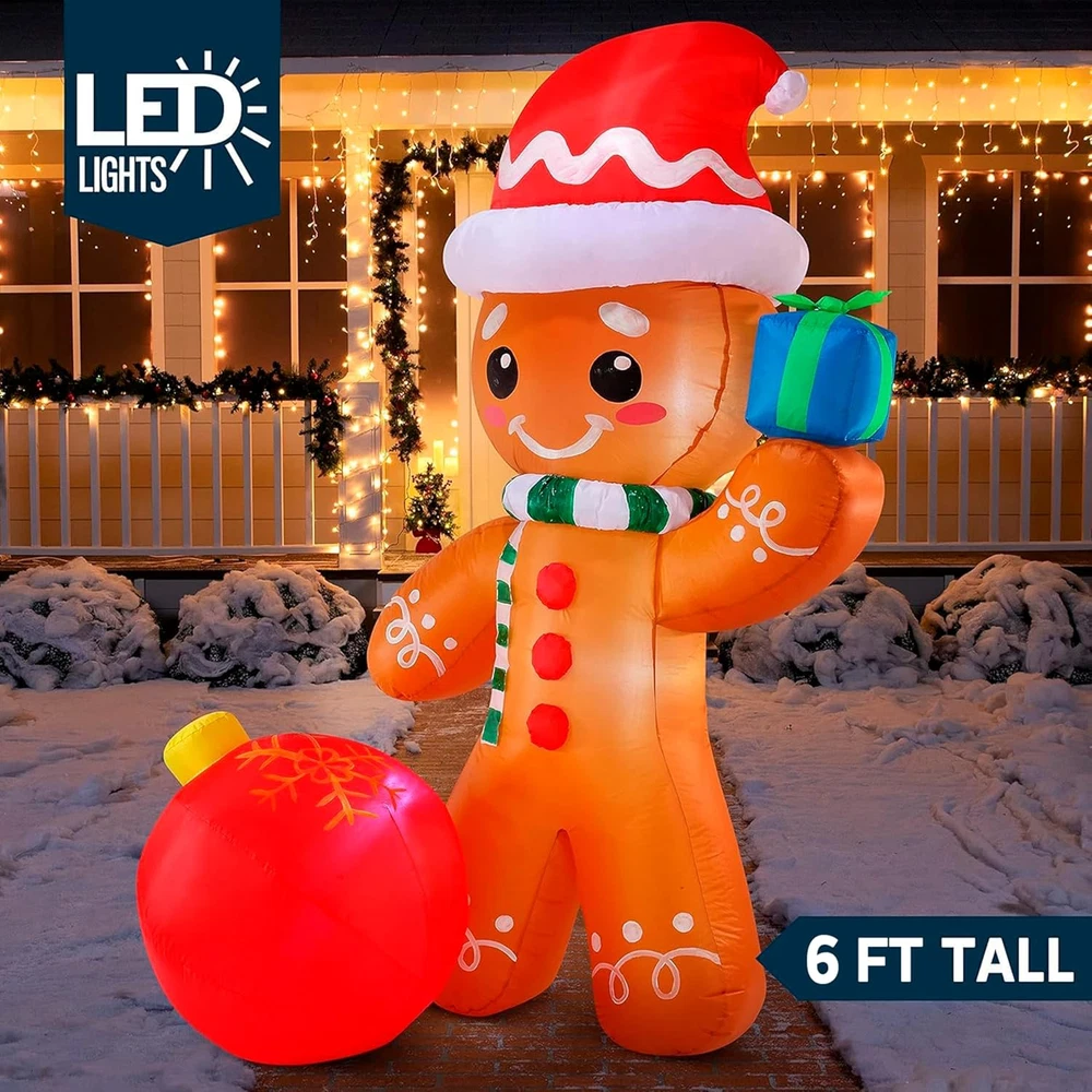 6 FT Christmas Inflatable Gingerbread, Outdoor Decorations Gingerbread with Orna