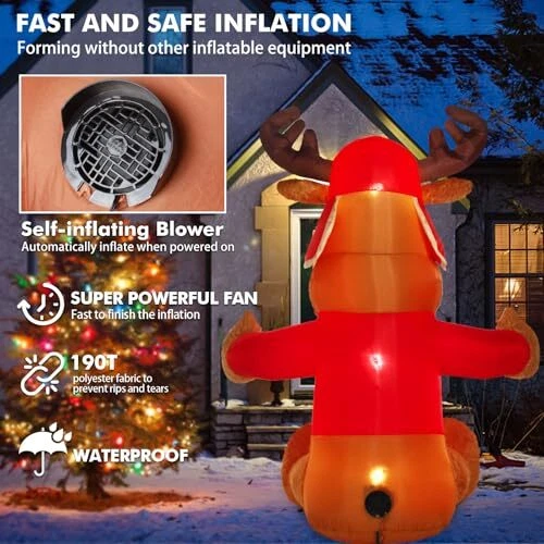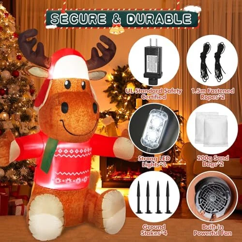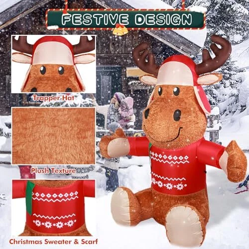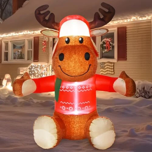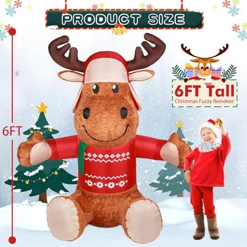 30 Days Return Policy Fast Delivery Trusted seller 6 FT Christmas Inflatable Outdoor Decorations, Inflatables Plush Reindeer Yard Decor with Christmas Hat & Sweater, Built-in LED Lights Blow up Xmas Deer Holiday Decorations for Outside Lawn Garden Product Description SPARKLING MOMENTS OF CHRISTMAS EVE: A 6ft high inflatable reindeer, sitting on the ground with arms wide open, dressed in a red sweater and a green scarf, and wearing a cozy trapper hat. The reindeer is adorned with twinkling LED lights that are both long-lasting and energy-efficient, casting a warm glow throughout the night. This fun and festive illuminated decoration brings the magic of Christmas to your backyard, lighting up every cozy evening. SOFT PLUSH SURFACE: This inflatable reindeer is a special holiday decoration. Unlike other inflatables made with standard polyester fabric, this reindeer is uniquely covered with a soft plush material, giving it a more realistic appearance and a luxuriously smooth texture. Despite its plush exterior, it remains waterproof and can withstand wind and rain. However, to extend its lifespan, we recommend avoiding outdoor use during harsh weather conditions. SUPER STABLE SUPPORT: Comes with 4 ground stakes, 2 ropes, and 2 200g sandbags with rope fixtures to ensure stability during use. Equipped with a 5 ft (1.5M) extension cord, allowing you more flexibility in placing this blow up deer decoration. FAST INFLATION: This inflatable Christmas deer ornament features a powerful built-in fan that fully inflates within 1 minute once plugged in. With its lightweight materials and self-inflating design, anyone in the family can effortlessly set it up and take it down. Before inflating, make sure the zipper is fully closed to ensure proper sealing and optimal inflation. INTERNAL LED LIGHTS: This 6ft Xmas elk outdoor decoration features 3 built-in LED bulbs that emit a bright white light, making it perfect for nighttime displays. At night, this cute Christmas elk will illuminate your yard, drawing everyone's attention and becoming the star attraction of Christmas party night. Neighbors will be captivated by the dazzling lights and charming design, enhancing the festive atmosp and making your yard the standout highlight of the entire neighborhood. Shipping Returns Payment Shipping Shipping is FREE to all addresses other than APO/PO boxes in the lower 48 states. All our stock ships from US-based warehouses. Shipped via USPS or UPS (depending on location and package weight) Unless stated otherwise, all orders will ship within 24-72 hours of your payment being processed. Check our feedback to see the great reviews of FAST shipping we offer. Returns As our valued customer, we will do our best to make sure the product you receive arrives to you on time and as expected. If you are not satisfied with your purchase, please contact us within 30 days of receiving your order to process a return. Payment We currently accept payment via eBay managed payments only. Once payment is cleared, we will dispatch your shipment within 1-3 business days. Please refer to the "Shipping" tab for more information regarding shipping speed to your destination.