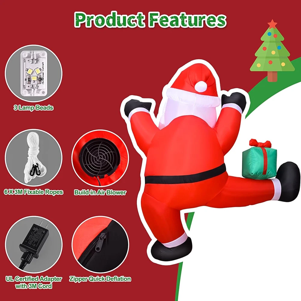 6 FT Christmas Inflatables Outdoor Decorations Climbing Santa Christmas Outdoor
