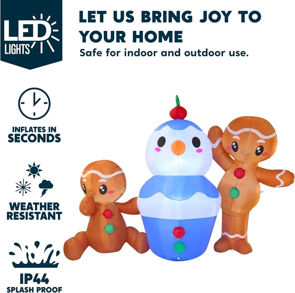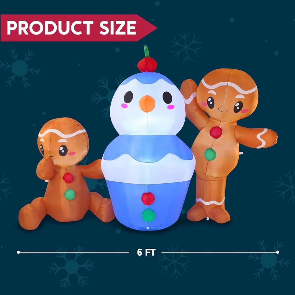 Home6 FT Tall Christmas Inflatable Gingerbreadman Building Ice Cream Snowman
