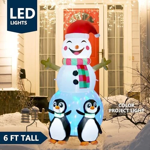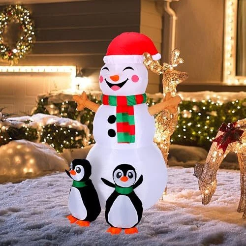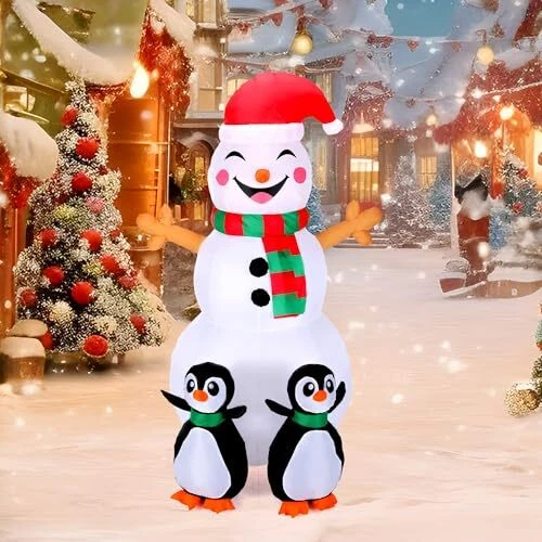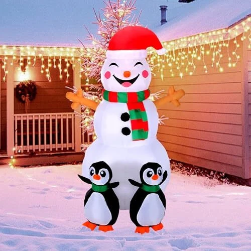 30 Days Return Policy Fast Delivery Trusted seller 6 FT Tall Christmas Inflatables Outdoor Decorations, Blow Up Penguin Branches Christmas Snowman with Built-in LEDs for Christmas Indoor Outdoor Yard Lawn Garden Decorations Product Description 【6 FT Tall Inflatable Christmas Penguin & Snowman 】 The 6-foot tall inflatable Christmas decoration featuring a penguin and branch snowman comes with built-in LED lights, perfect for both indoor and outdoor use. It’s ideal for brightening up your yard, lawn, or garden and creating a festive holiday atmosp. 【Premium Quality 】 Made with a safety-certified adapter meeting CE and UL standards, this inflatable includes a powerful built-in fan and a convenient bottom zipper for quick inflation and deflation. 【Waterproof and Durable 】Constructed from waterproof polyester, this inflatable is equipped with a robust blower, ensuring it operates perfectly in rain and snow. Solid stitch seams protect against rips and tears. 【Easy Setup】Our inflatable comes complete with a waterproof fan, stakes, a built-in sandbag, tie-down ropes, and a storage bag, making installation a breeze. 【Customer Service Guarantee 】 We are committed to providing excellent customer service. If you have any questions or concerns, our support team is always ready to assist you. Shipping Returns Payment Shipping Shipping is FREE to all addresses other than APO/PO boxes in the lower 48 states. All our stock ships from US-based warehouses. Shipped via USPS or UPS (depending on location and package weight) Unless stated otherwise, all orders will ship within 24-72 hours of your payment being processed. Check our feedback to see the great reviews of FAST shipping we offer. Returns As our valued customer, we will do our best to make sure the product you receive arrives to you on time and as expected. If you are not satisfied with your purchase, please contact us within 30 days of receiving your order to process a return. Payment We currently accept payment via eBay managed payments only. Once payment is cleared, we will dispatch your shipment within 1-3 business days. Please refer to the "Shipping" tab for more information regarding shipping speed to your destination.