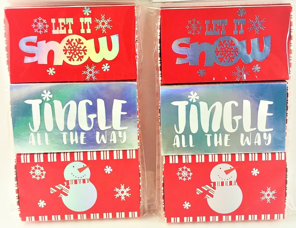 6 Gift Card Box Holders Let It Snow, Jingle All The Way, Snowman, Holiday Time - 6 pc Set Includes (2) each: (2) Let It Snow (2) Jingle All The Way (2) Snowman - Each Measures: 4.33 inches x 2.5 inches x .079 inches (11 cm x 6.4 cm x 2cm) - Each box has silver foil accents - Boxes slide open for easy access - Brand New - There are NO gift cards in these boxes, we are only selling the gift box. You can add the gift card. *** Be sure to see all our Holiday items avail in the " Holiday " section of our store... Check us out on Pinterest... New and Almost New! Copyright 2019 New and Almost New - All Rights Reserved Be sure to sign up for our emails by adding us to your Favorites.... you don't want to miss out on new items!! About Us: Hello & welcome to New and Almost New. We hope you enjoy our wonderful selection of goodies! In 1996, we started our family owned business by sharing our love of finding great products at a great value with our wonderful customers. We continue to gather our items from a variety of local Pennsylvania sources, including: estate sales, flea markets, yard/garage sales, liquidation and direct from manufacturers. We hope you enjoy our selections and will continue to share in our passions!! Be sure to check back often, as we always have unique & wonderful offerings!! Don't hesitate to email us with any questions you may have!! We can always be reached by "contact the seller" on any of our pages. We check email throughout the day and usually up to 9:00 pm EST. We always answer emails with 24 hours! Payment: Pennsylvania residents add 6% sale tax. Some states have passed laws that charge online sales tax. Our pricing does not reflect these taxes. Every state is different. Please be aware of your particular states tax law. Ebay will charge and collect the tax if you live in a state that this applies to. Shipping: We ship 1-2 days after receiving cleared payment. International buyers are welcome!!! You are responsible for knowing you country's Customs Restriction's and Prohibition's for mailing items. All international winners are responsible for Custom &/or Duty fees. It is the buyer's responsibility to pay any and all taxes to border and export agents. Items that are returned to us for "Non Pick Up" will be put back up for sale. Combined shipping is available to help you save on shipping costs and is based on total shipment weight and buyers address. Any items that offer FREE shipping are only on items shipped in the contiguous U.S. only. Terms of Sale: All of our NEW items are Brand New, Never Used. All of our USED item are in "as found" condition from local estate sales, liquidation sales, manufacturers and are sold "as is". We sell a mix of new and vintage items. We will describe the condition of items as accurately as we can and offer any further information you may require via email. No returns accepted unless the item description is completely and significantly not accurate ~ If return is agreed upon, original postage is non-refundable and customer is responsible for return postage. Item(s) must be sent back, within 5 days, in the same condition in which they were originally sent. Feedback & DSR: We strive for 5-Star service with accurate listings, true to life photos, fair prices, and quick and efficient shipping. If you are happy with this transaction please respond with 5 STARS on all of the categories. Once your item has arrived, please post positive feedback and we will know your item has arrived safely and you are a satisfied buyer. If you are not satisfied, please contact us prior (before) leaving negative feedback. Once we receive your feedback, we'll post feedback for you also. Thanks for shopping with us..... Stop back again!!