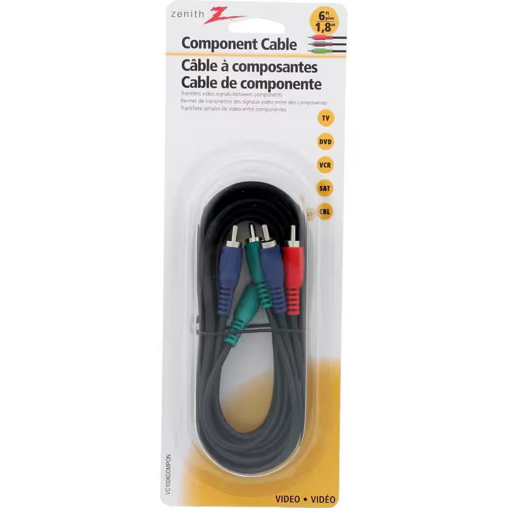 Fast Shipping On All Items 30 Days Money Guarantee Customer Support Excellent Service 100% Satisfaction Satisfaction Guaranteed 6 Ft. Video Component Cable, Black Specification Cable Type Component Video Cables Color Family Black Features No Additional Features Returnable Non-Returnable Manufacturer Warranty 1 Year Limited Warranty Product Length (ft) 6 ft 6.0 ft. Item Description Connects TV to VCR, DVD player, camcorder, or other devices Cable separates signals to provide well-defined videos Molded strain relief offers complete protection of connectors The Zenith Video Component Cable (6 ft.) connects your TV with your DVD player, camcorder, VCR, or other devices with component video jacks. This cable provides the best analog performance possible for high definition or standard television viewing. AmerTac manufacturing brands offer complete lines of distinctive decorative home accent products that include trend-setting wall plates, money-saving LED night lights, innovative under-cabinet lighting, and battery-operated LED lights. We also offer utility product lines including energy-saving timers, dimmers, and lighting controls, as well as an extensive offering of consumer electronics accessories for the home and office. About us We offer the best prices around on high quality products. Our E-store includes media such as books, movies, music and games while offering electronics, toys, sporting apparel, clothing, tools, general home, garden items and more. Shipping We are always working hard to ensure your package arrives as soon as possible. Please understand that some factors like weather, high postal traffic, and the performance of shipping companies are outside of our control. We offer free shipping to the lower 48 states and ship within 2-3 business days of payment, usually sooner. We do not accept P.O. Boxes. Please provide a physical address. For shipping outside of the continental USA, we only use eBay's Global Shipping Program.The item is shipped to KY and then sent to the rest of the world. International customers are responsible for all duties and taxes. Continue to check out to calculate costs for shipping the item to your country. Messages regarding eBay's Global Shipping Program MUST be directed at eBay EXCLUSIVELY. Returns We offer a 30-Day Return Policy on items in which you are not completely satisfied with. You have the option of a full-refund or an exchange of the item. No returns are available on items shipped outside of the USA Satisfaction We try over very best to make sure every customer is completely satisfied. If there's a problem, message us! We're happy to help. Payment Options Shop With Confidence
