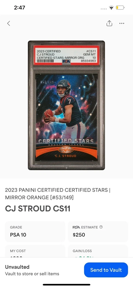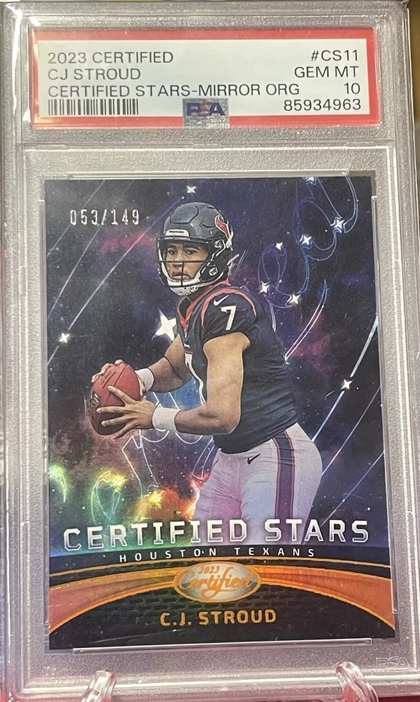 This lot features six high-grade sports trading cards, including some of the most sought-after players in the National Football League. The cards are from Panini and come in standard size. None of the cards are autographed, but they do have features like serial numbered, short print, base set, exclusive, rookie, collector's edition, and insert. The lot includes players like Deshaun Watson, D'Andre Swift, Derrick Henry, and CJ Stroud. The cards are all original. These cards are well-represented, and the lot is perfect for anyone who wants to add some high-quality cards to their collection. Just the Certified Stars card is worth $250+ get your moneys worth by adding 5 more graded cards for dirt cheap. Don’t worry about loosing money on this one!